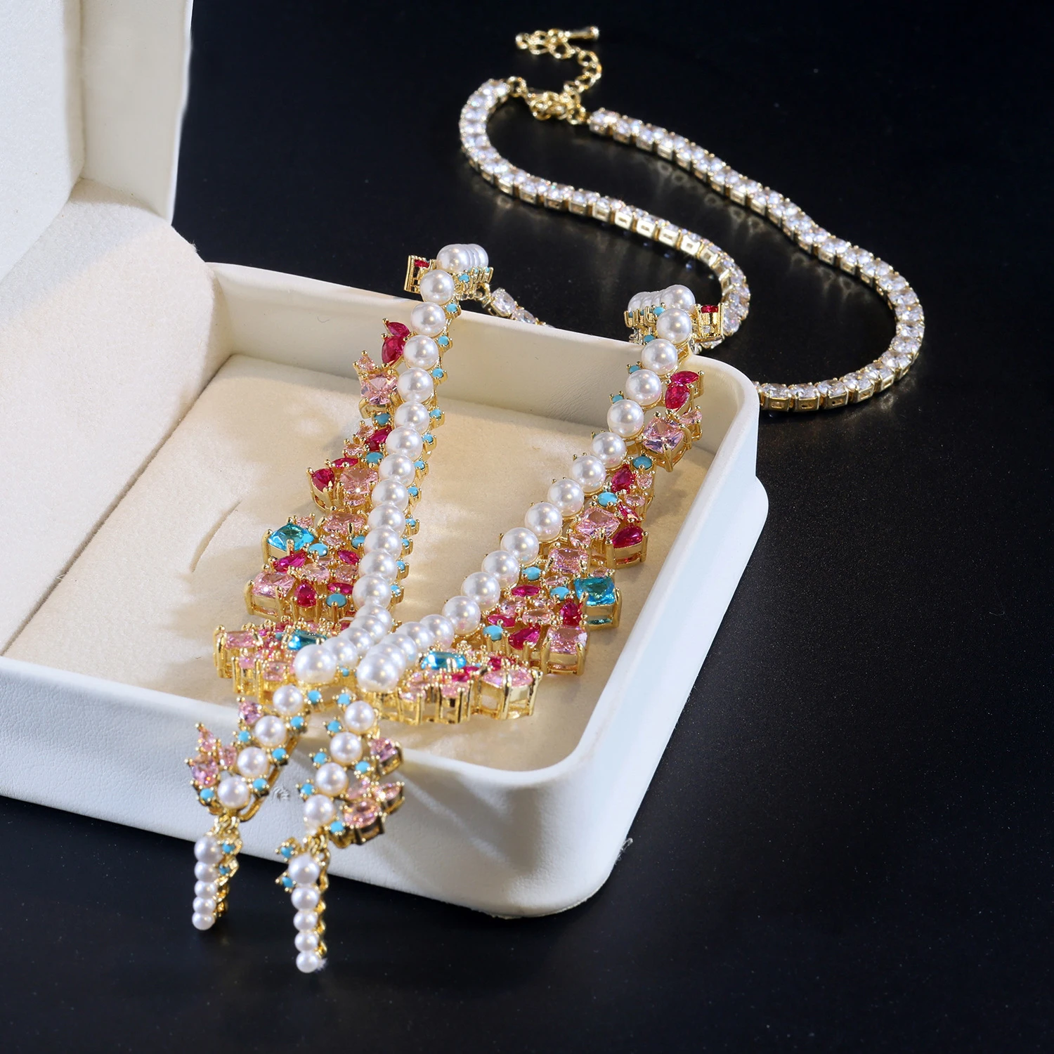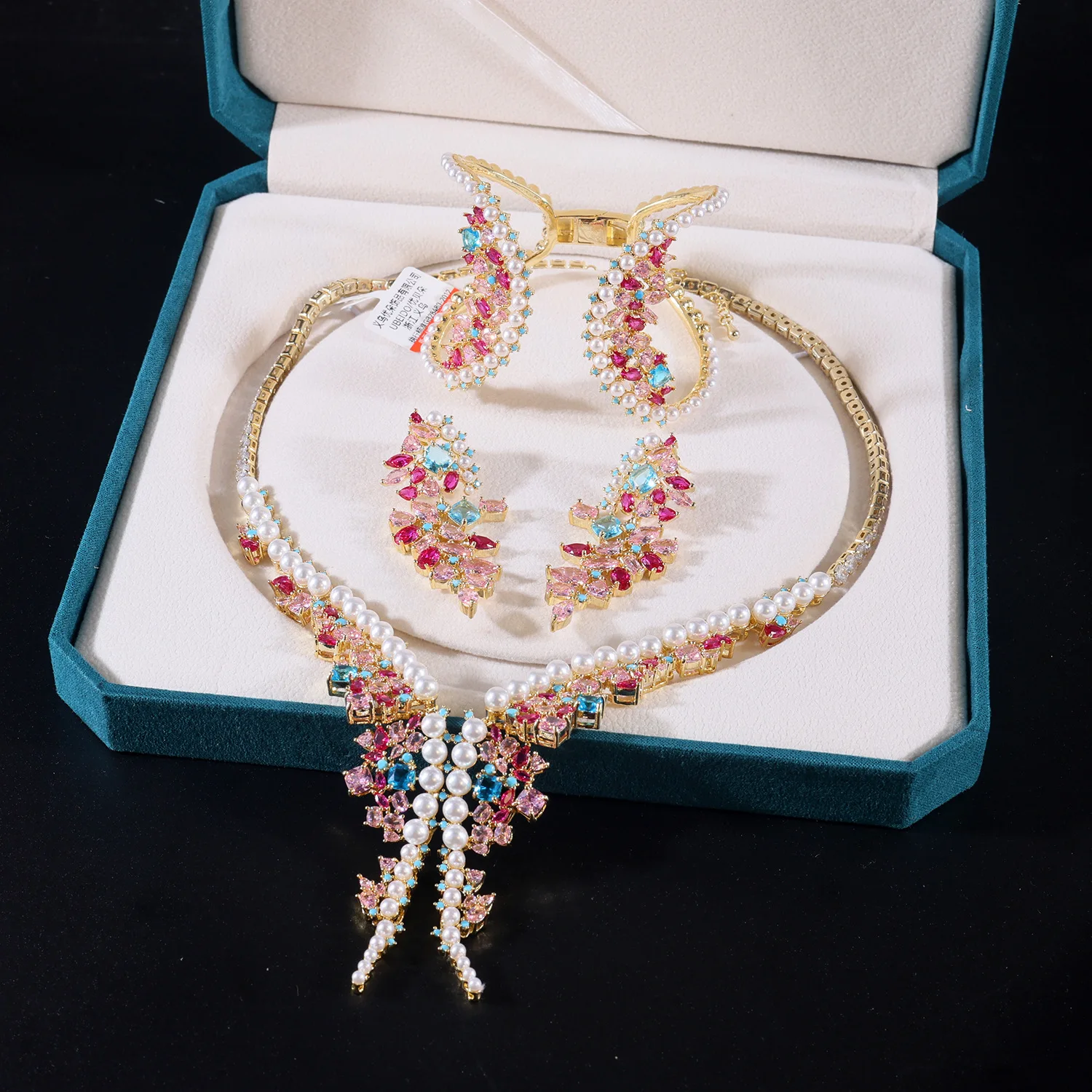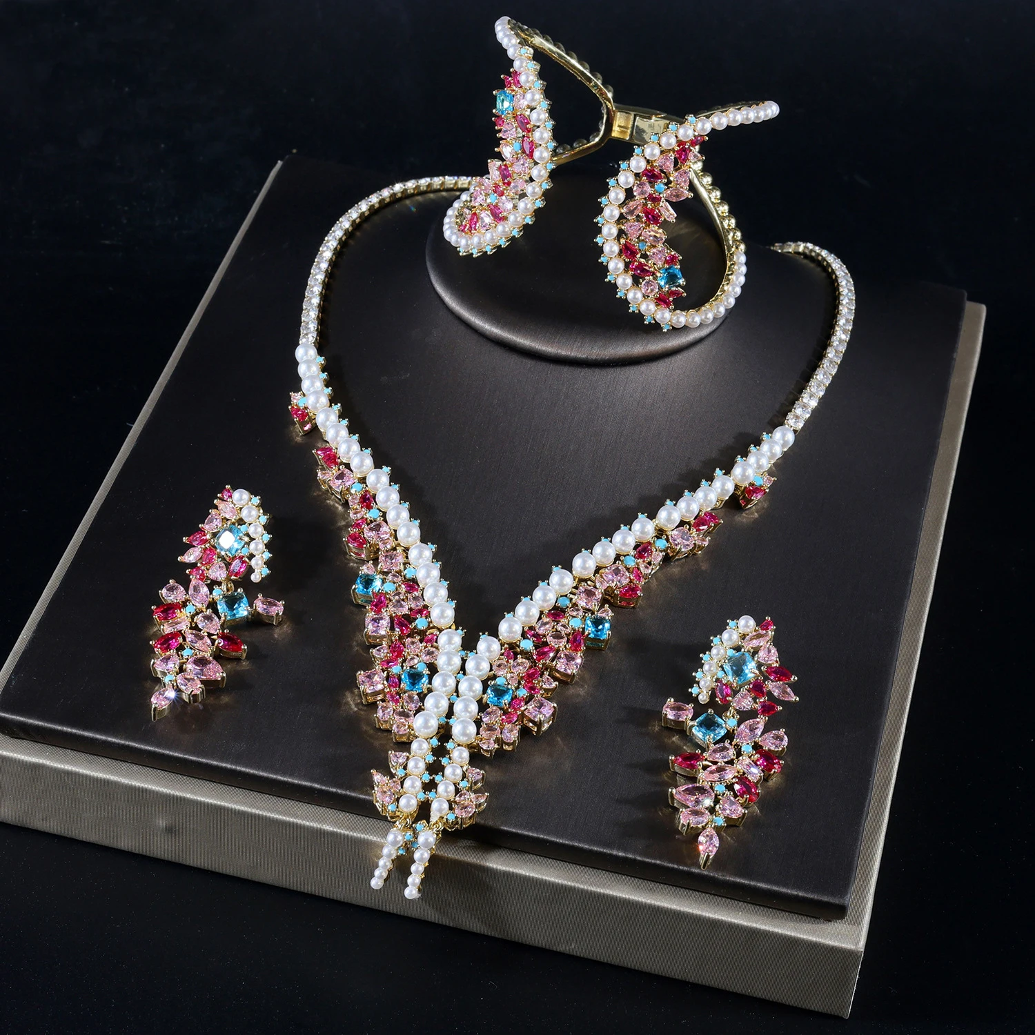 القلائد الملونة أقراط سوار مجموعة المرأة الخفيفة الاكسسوارات الفاخرة حفل زفاف هدية الزفاف