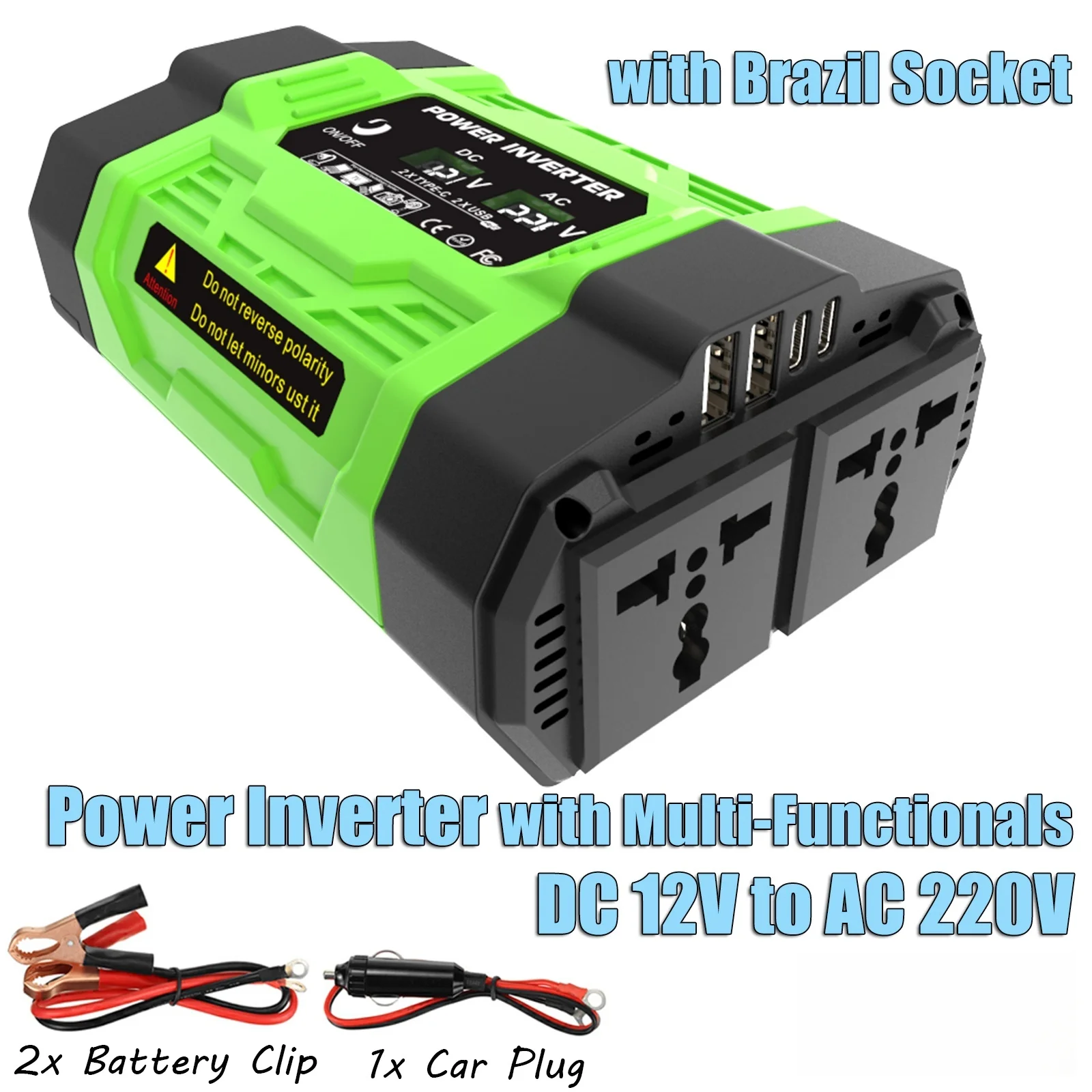 [Power Inverter] CHAOMIN 500W Power inverter 12V DC to 220V/110V AC with 1000W peak power, with 2 USB ports, 2 Type-C, LED voltage display and two AC outlets. The power inverter comes with free cigarette lighter and 2pcs battery clips. (Please make sure that the total rated power of the connected devices is ≤ 500W).