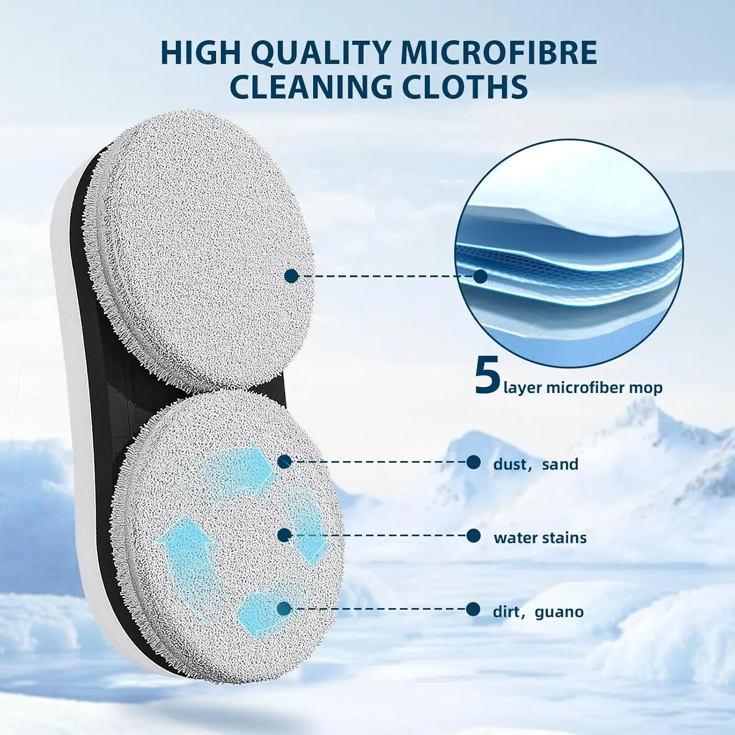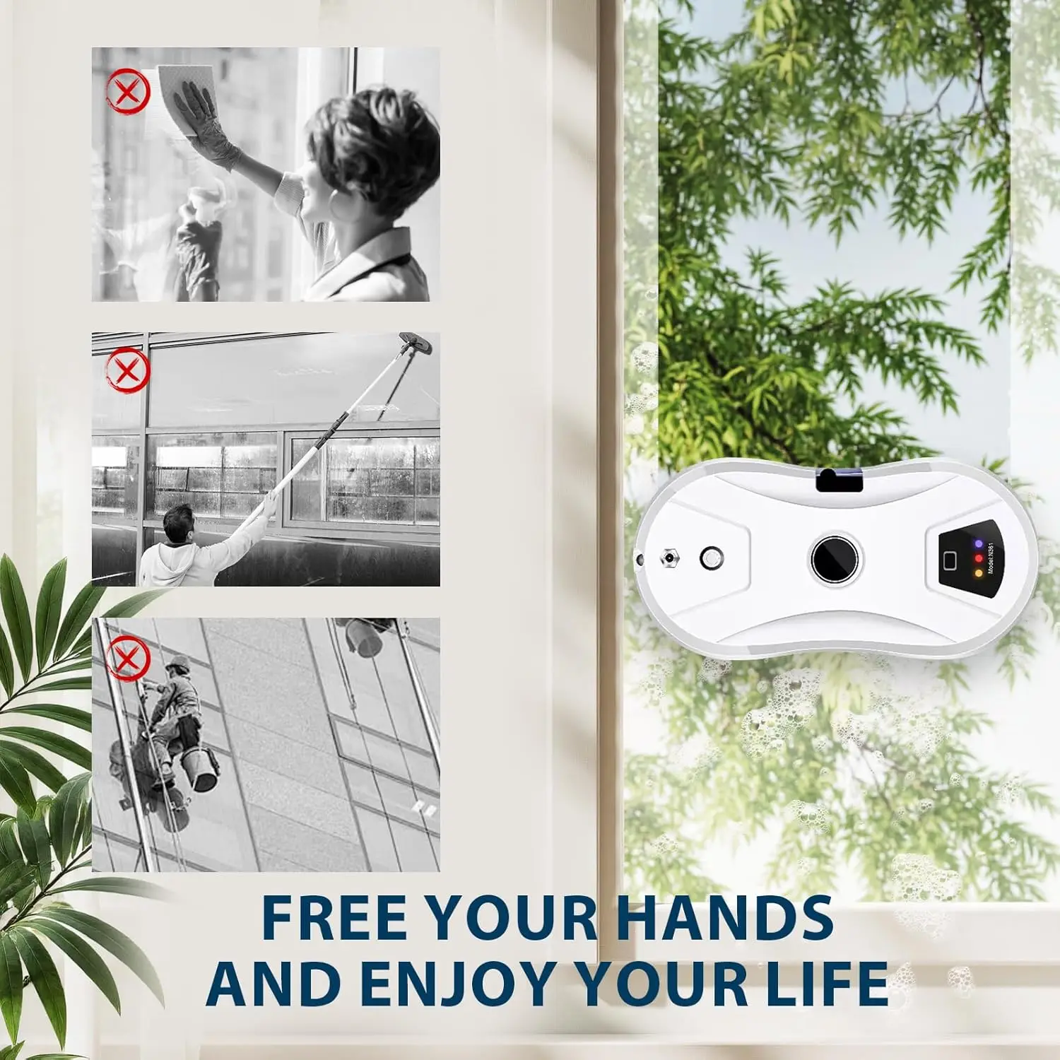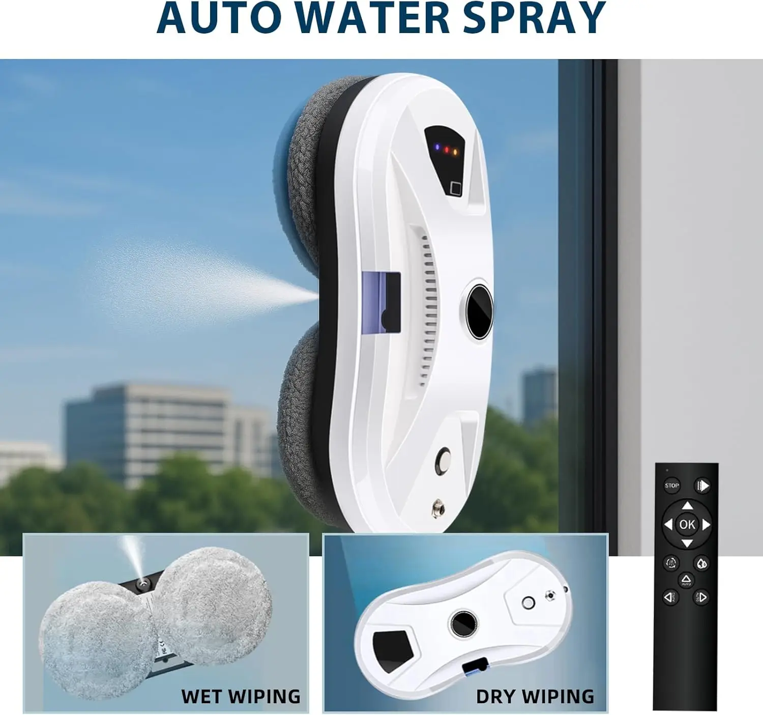 - Automatic water spraying glass window cleaner:The window cleaning robot has a built-in dual water tank automatic water spraying system,a two-way nozzle design,fan-shaped water spraying,both sides,can quickly dissolves stains.It can be cleaned with one wipe and multi-path planning is efficient in window cleaning,which is beautiful and practical,but also truly liberates your hands.
