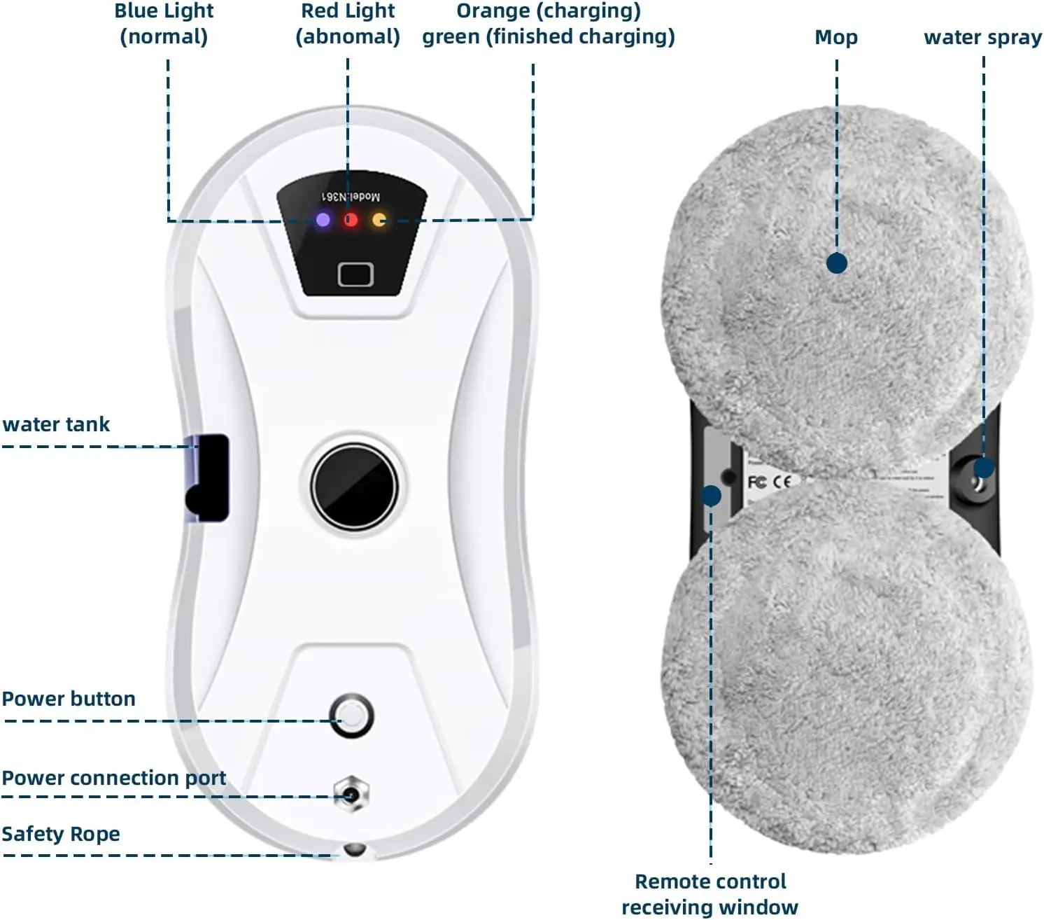 - Efficient cleaning: The window cleaner robot intelligently identifies stains and cleans with one click. It uses one-piece special yarn, upgraded fiber customized cleaning cloth, not easy to stick wrong, good sealing, and stronger water lock. It is very simple to operate and is suitable for smooth vertical surfaces such as glass, tiles, mirrors, walls, marble countertops etc.Note: The cleaning robot window must be connected to the power supply during operation.