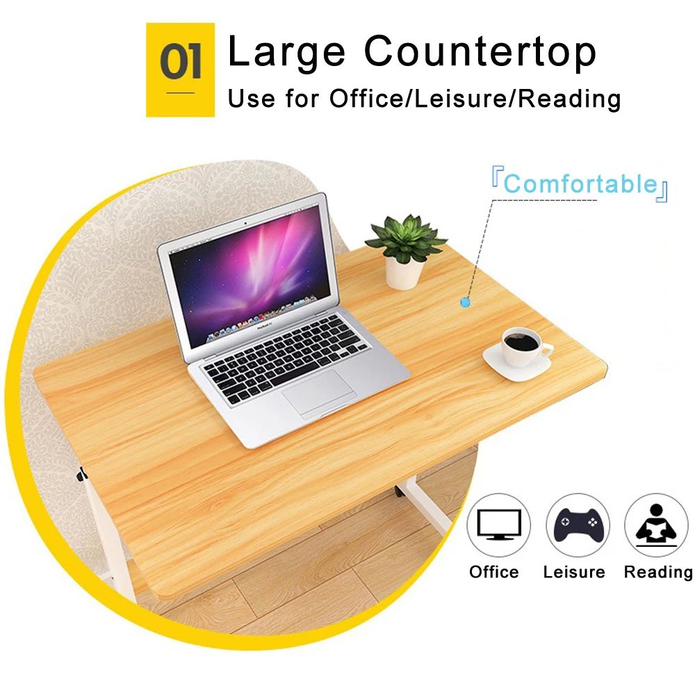Height Adjustable Desk: Desktop 80x 40cm. The height can be adjusted from 66 to 90cm. It can adapt to beds and sofas of different heights, meet your personal needs, and you can find the most comfortable position.