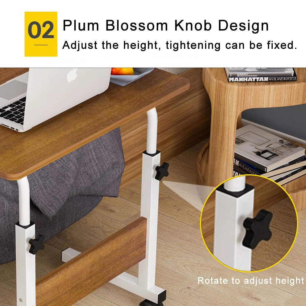 Adjustable Home Office Desk 80x40cm PC Notebook Standing Laptop Cart End Side Table with Wheels for Study Room Bedroom Living Room
