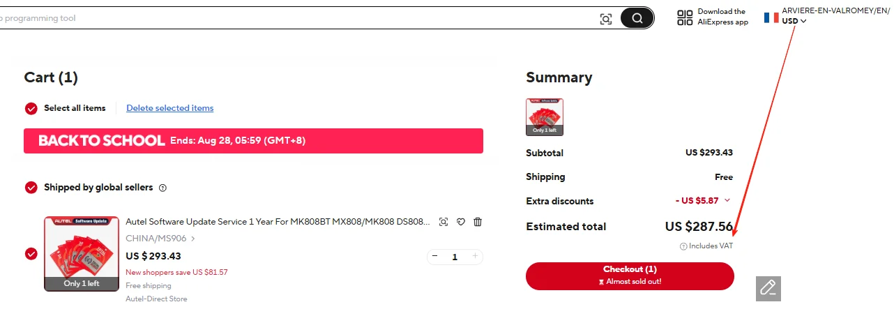 1.Change your receive country to Asia without VAT
