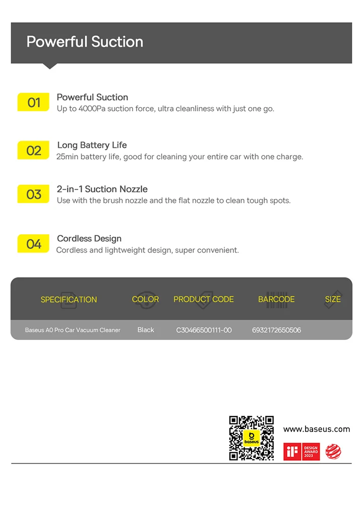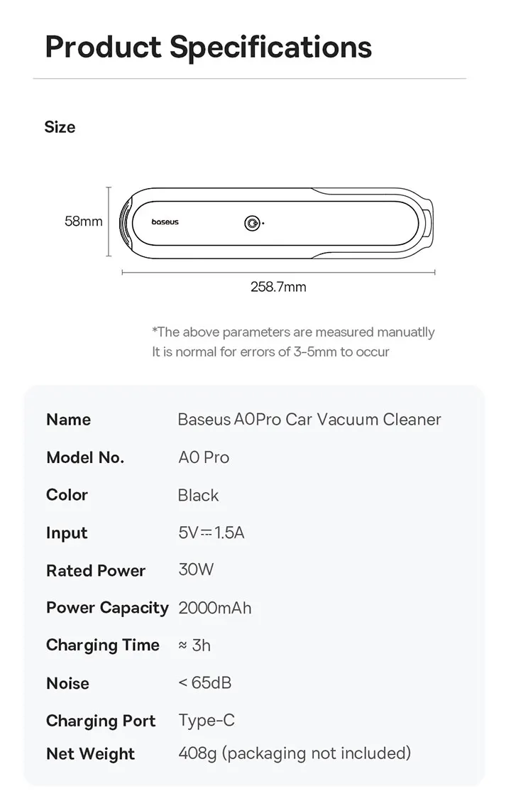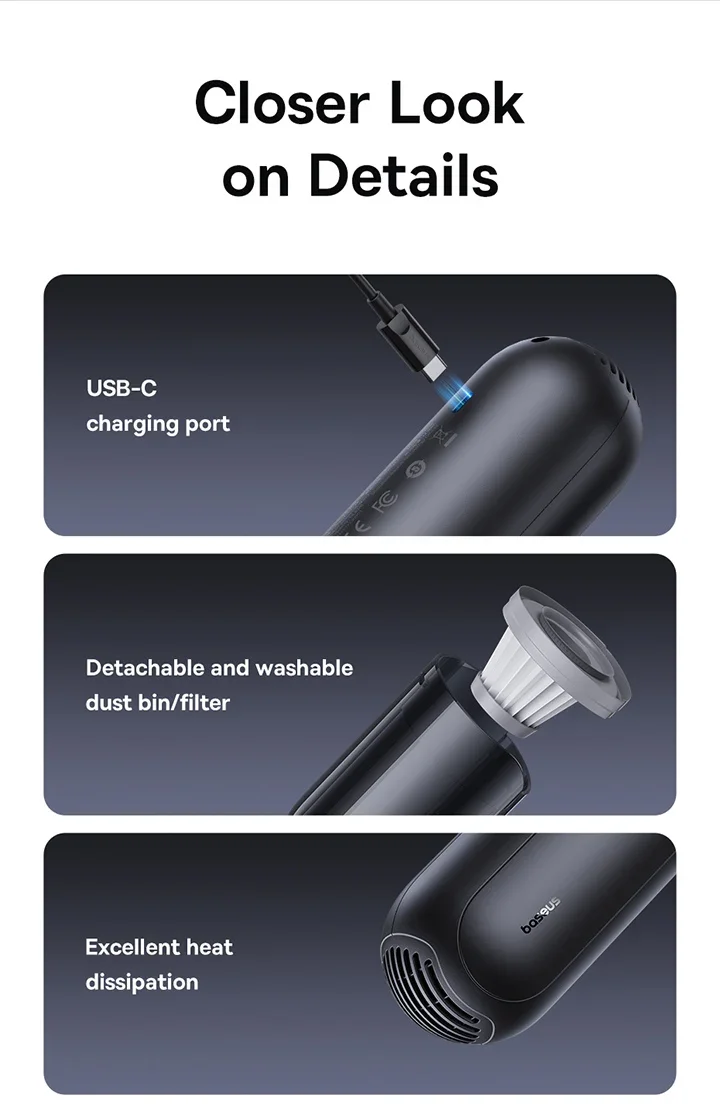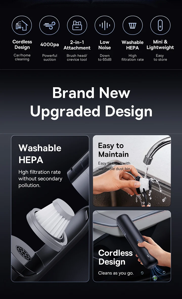 Baseus A0 Pro Car Vacuum Cleaner 4000Pa Portable Wireless 2 in 1 Vacuum Cleaner For Car Laptop Home Strong Suction Auto Cleaning