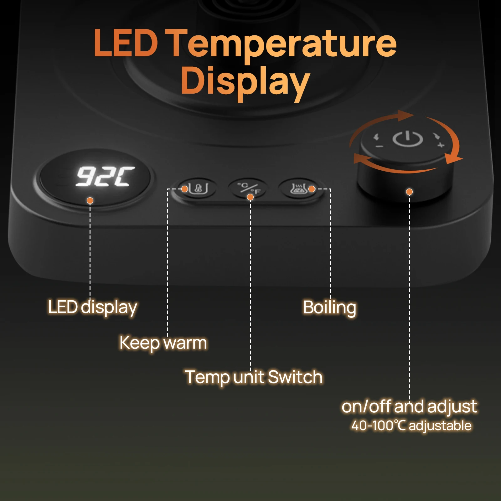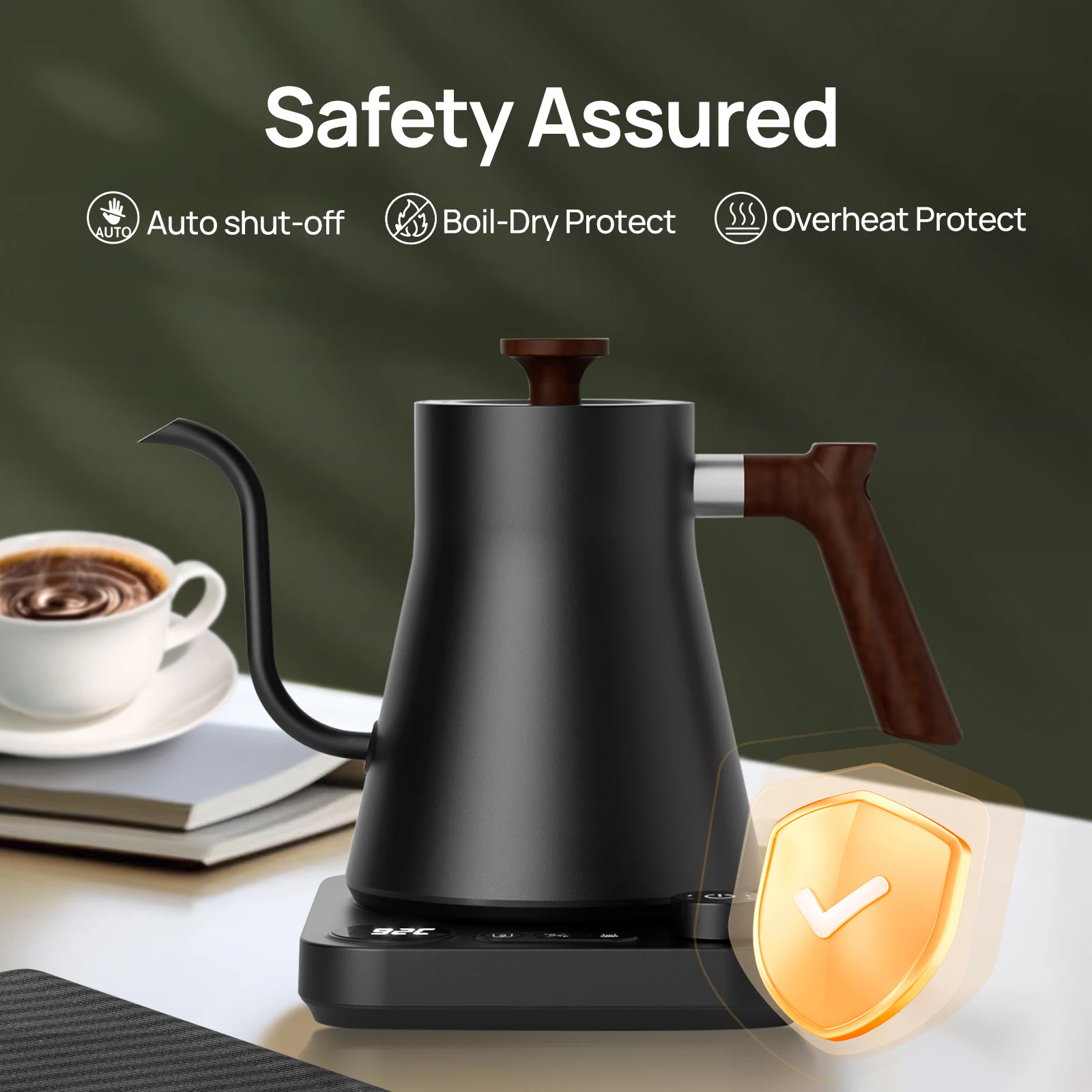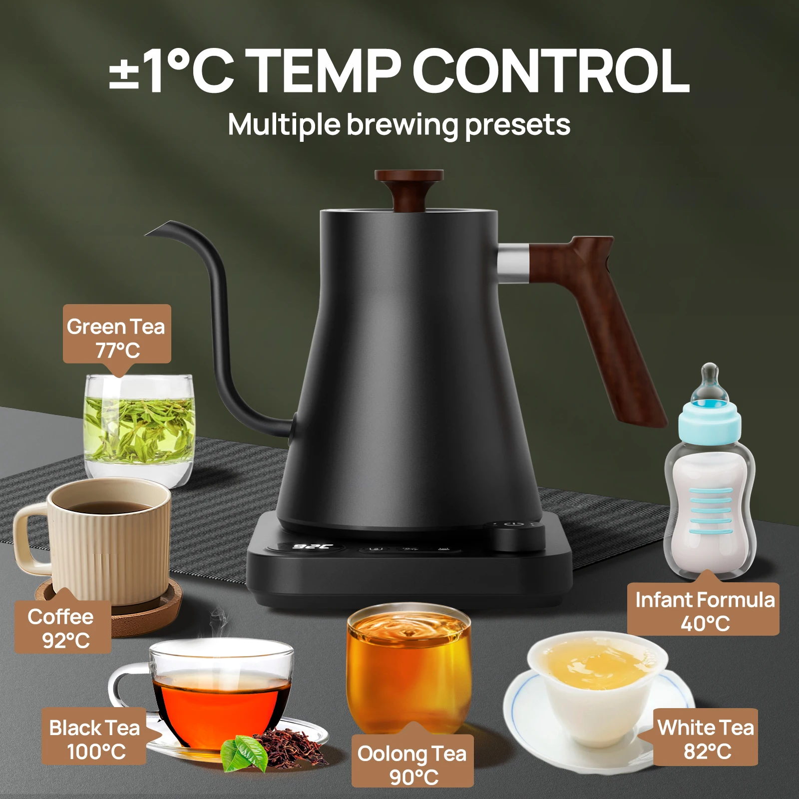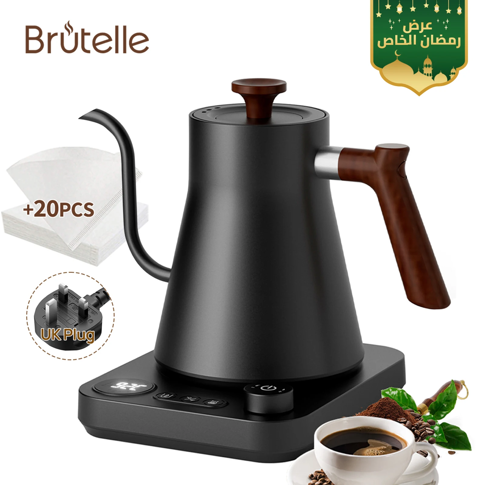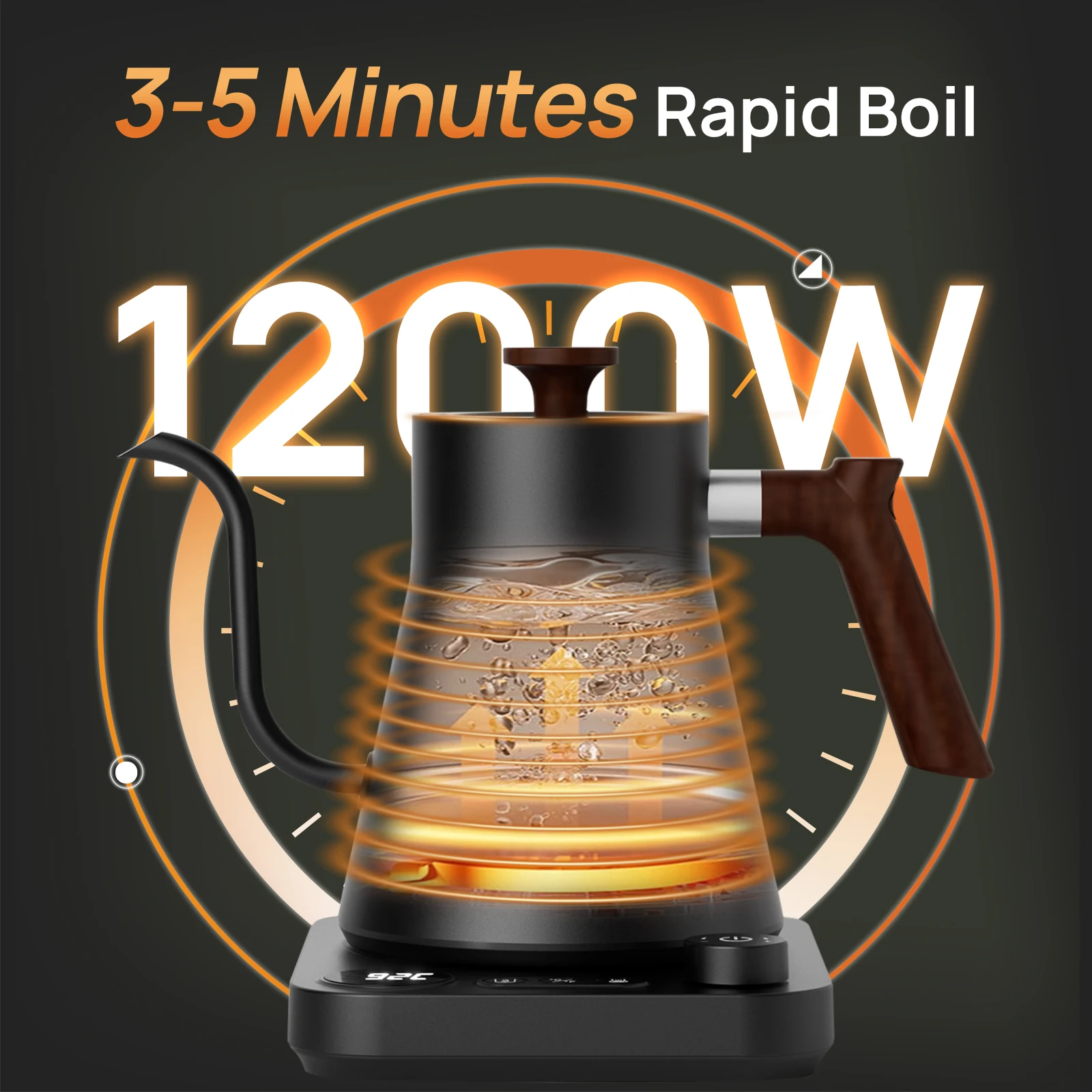 Brutelle Gooseneck Kettle 900ML Coffee Kettle 1200W Knob Temperature Digital Display 24H Keep Warm for Home Office Apartment