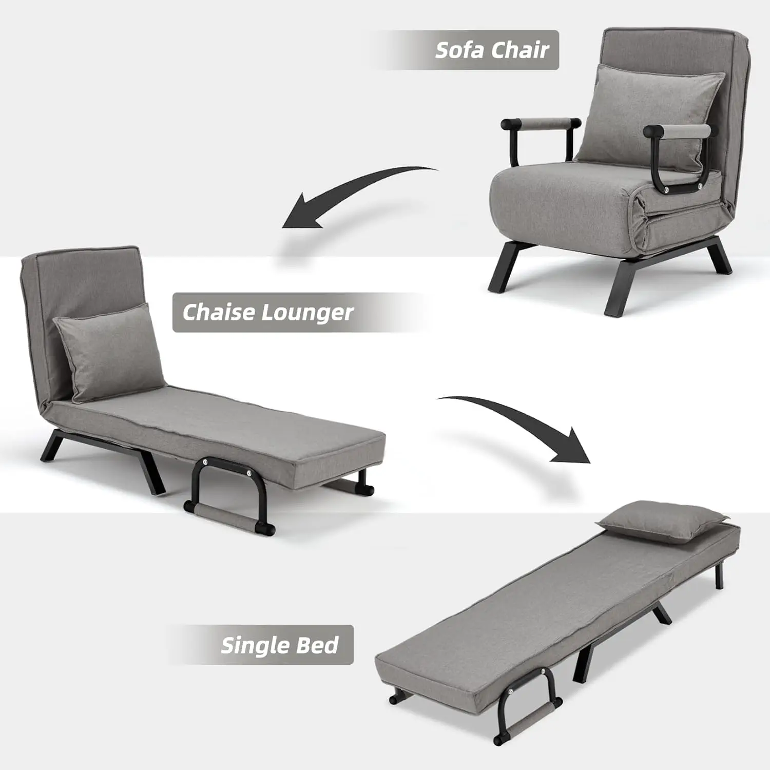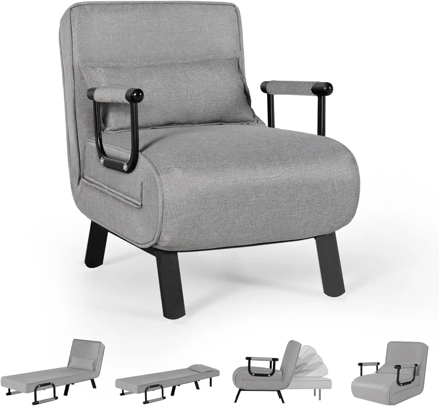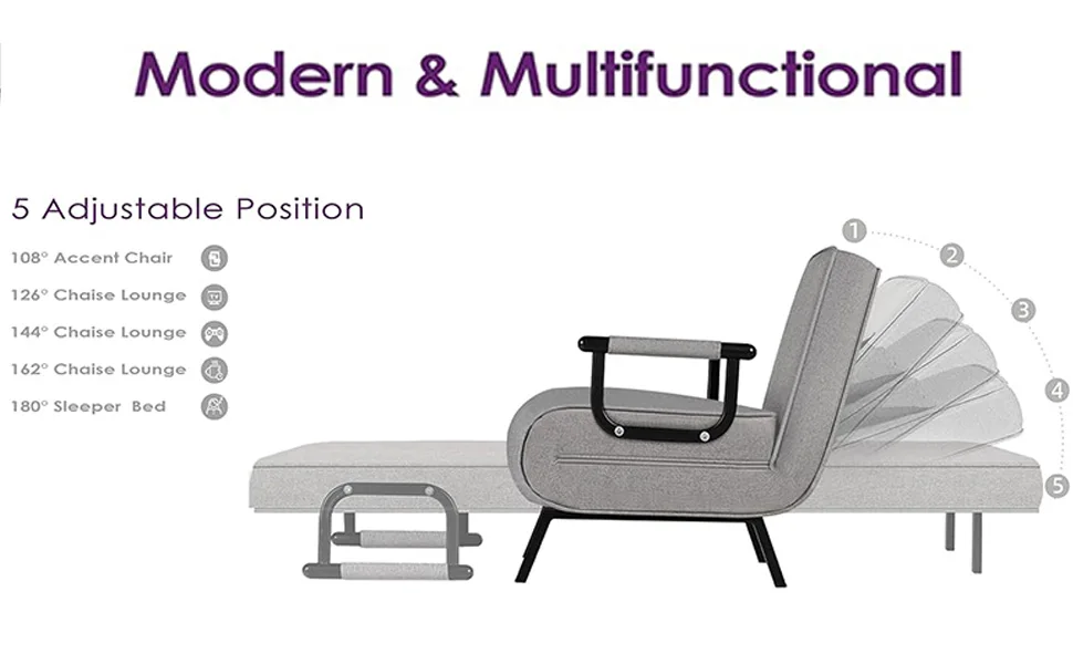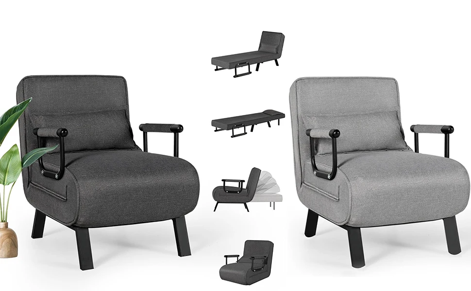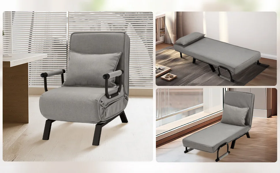 Chair Bed, Tri-fold Upholstered Armchair Sleeper, Chaise Lounge Couch, Convertible Sofa Sleeper Chair Bed with 5-Position Adjust