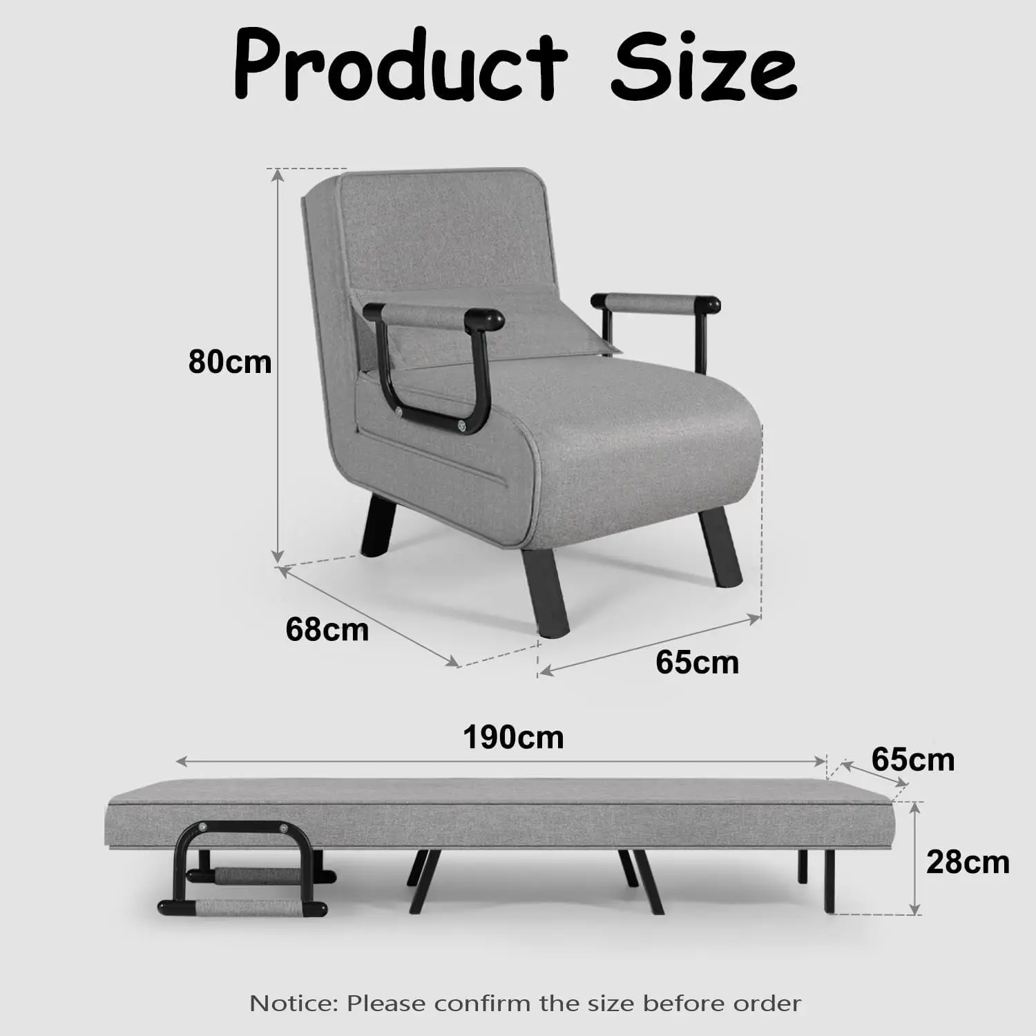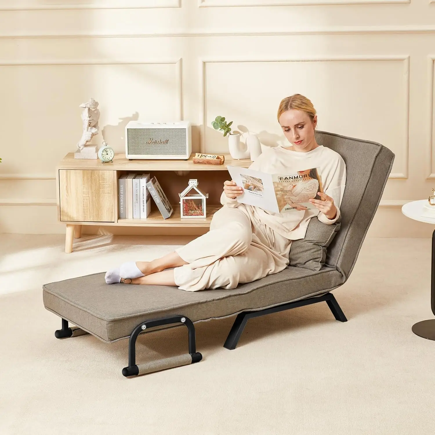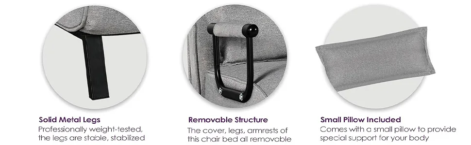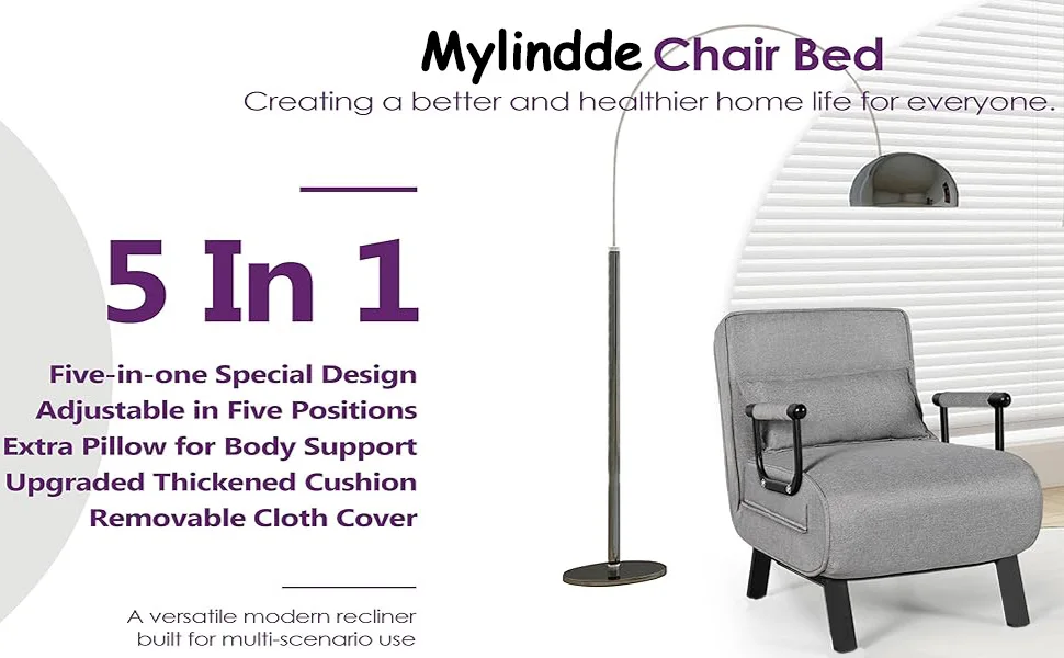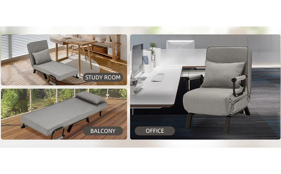Chair Bed, Tri-fold Upholstered Armchair Sleeper, Chaise Lounge Couch, Convertible Sofa Sleeper Chair Bed with 5-Position Adjust