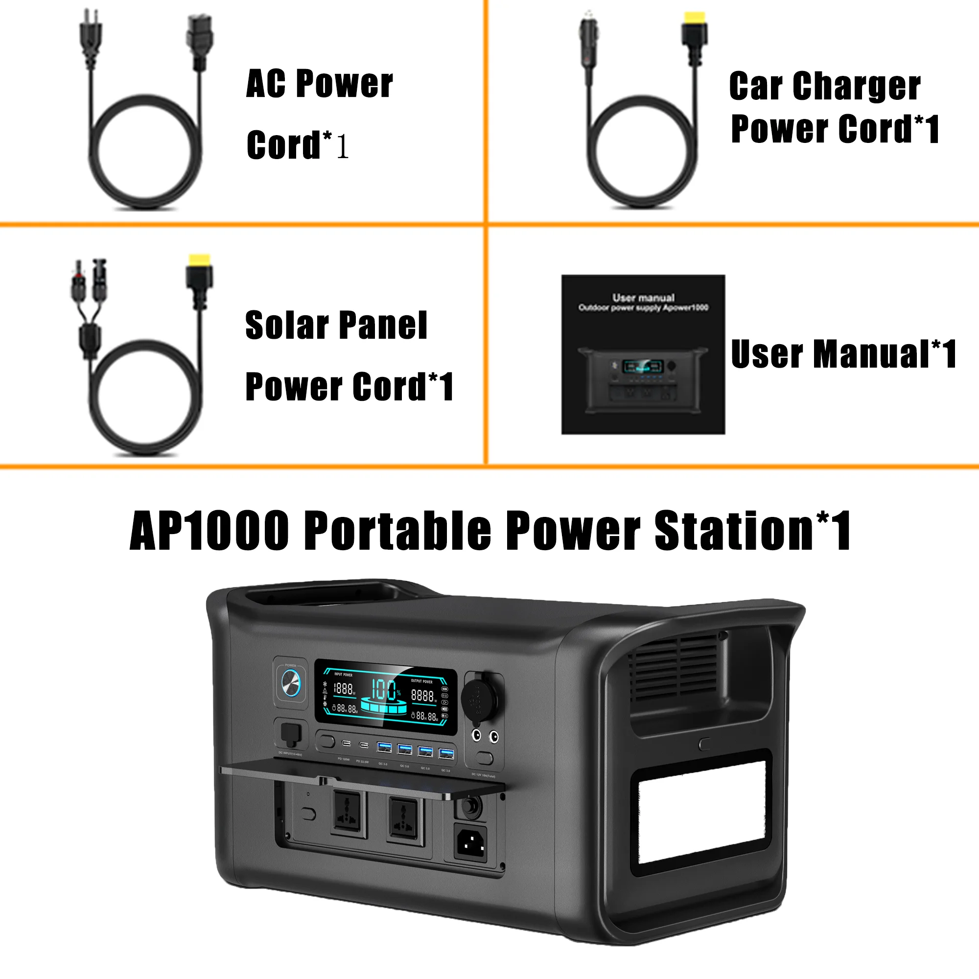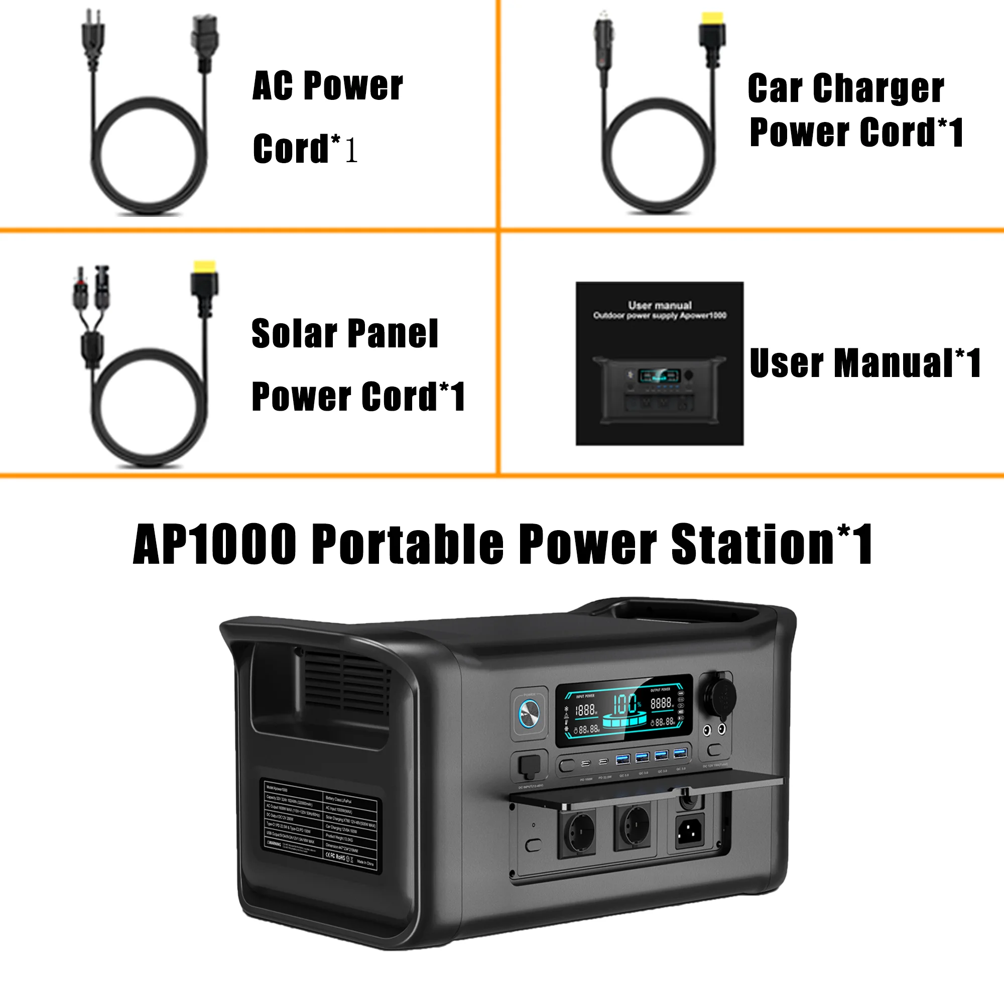 CTOLITY AP1000 1800W 1024WH Solar Generator Estacion de Energía Portátil 110V Pila Portátil Bateria Externa Central Eléctrica Portátil Portable Power Station