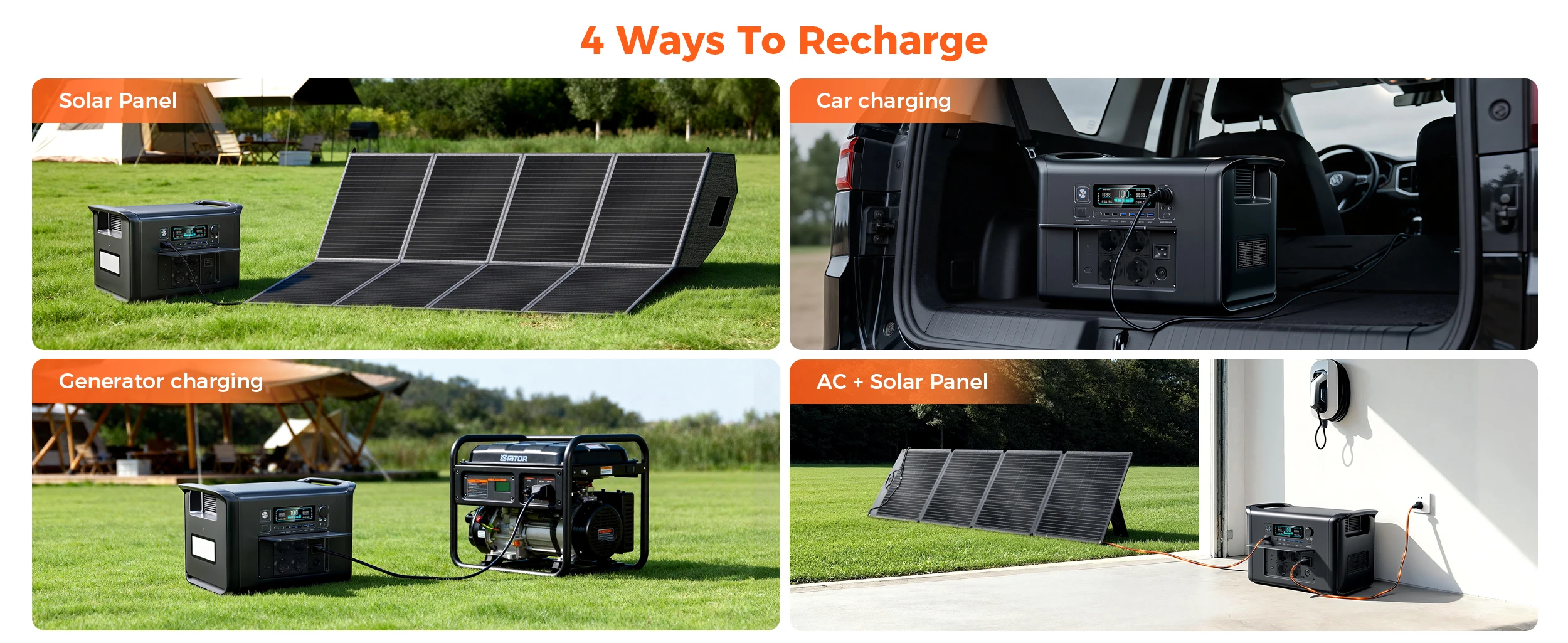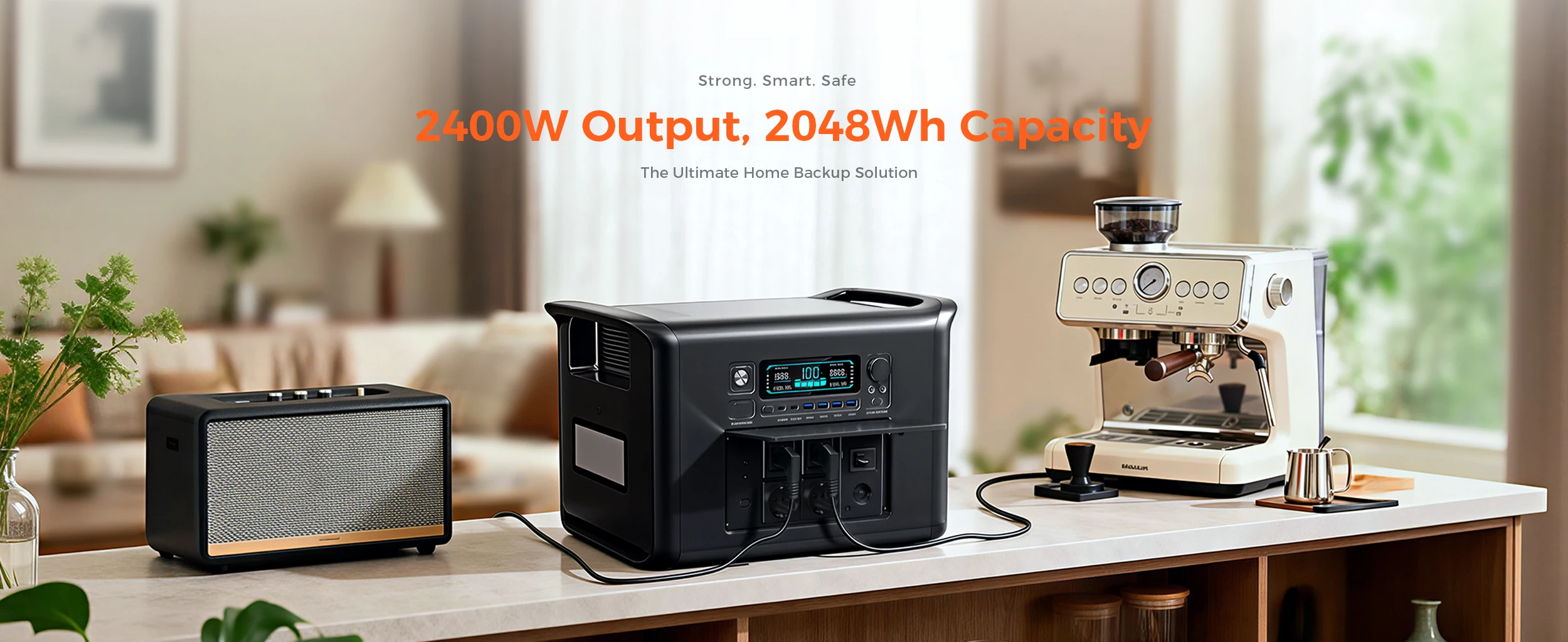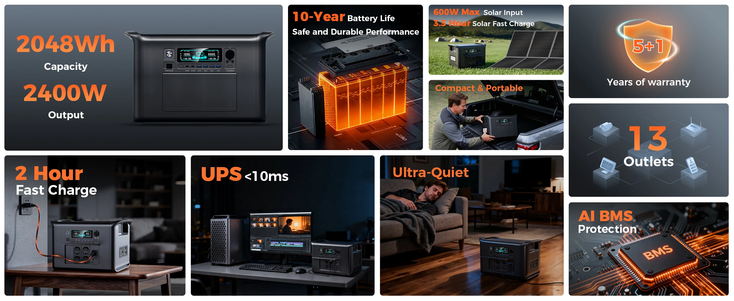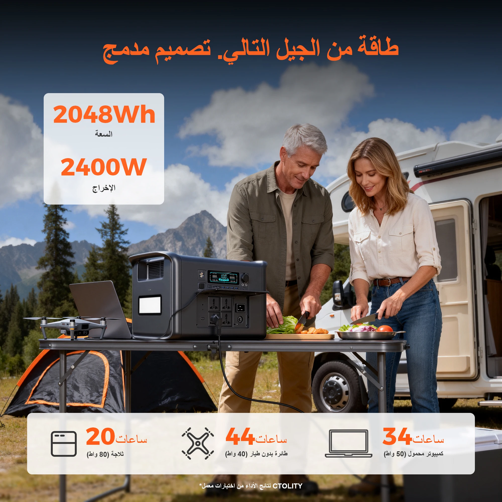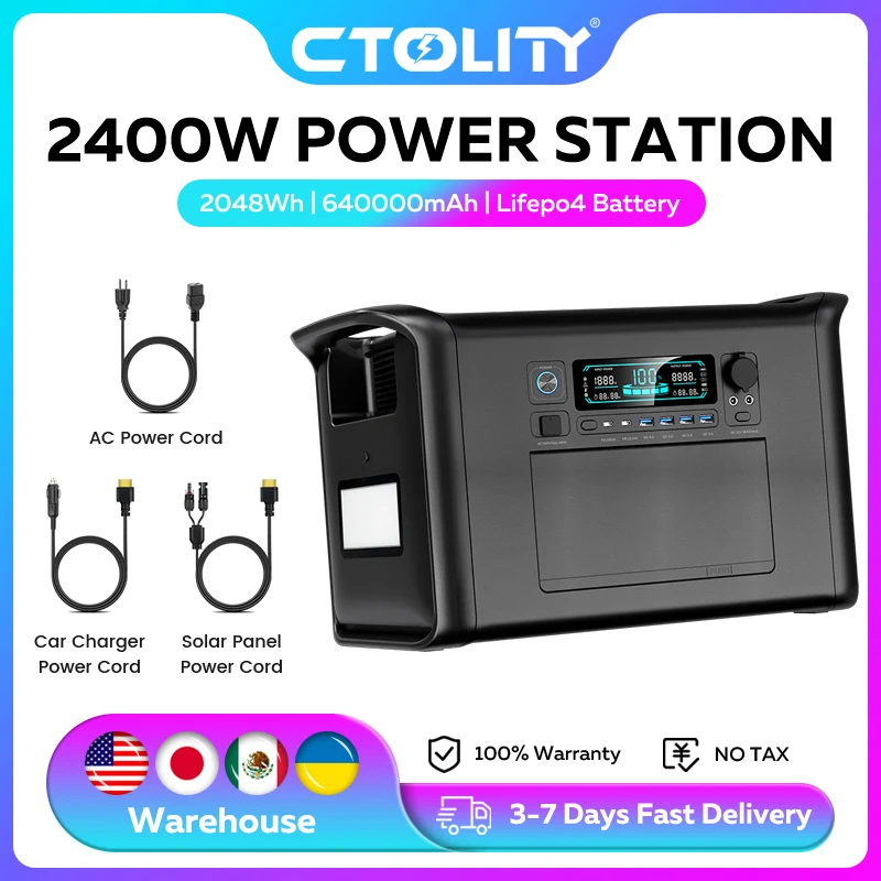 CTOLITY Portable Power Station Solar Generator 2400W 2048Wh Lifepo4 Battery 220V AC Output Pure Sinve Wave Camping Equipment
