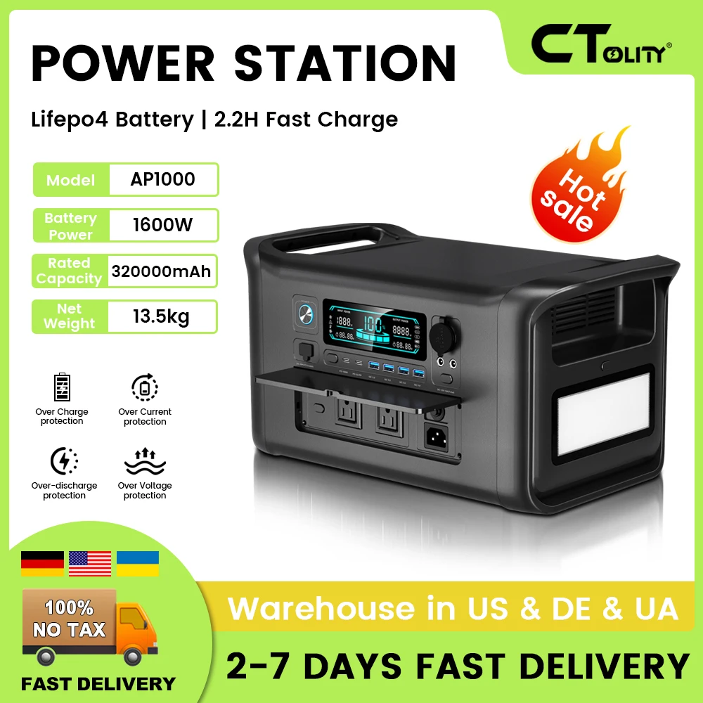 CTOLITY UA Warehouse 1024Wh 2048WH Camping Portable Power Station 2400W 1000W Solar Generator Lifepo4 Batteries Emergency PowerProduct Introduction:AP1000Product Introduction:AP2000Product Introduction:AP400