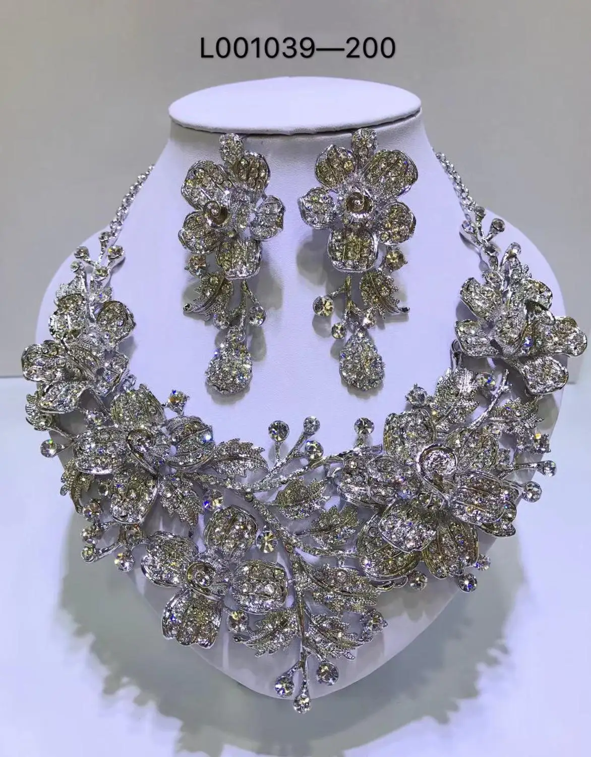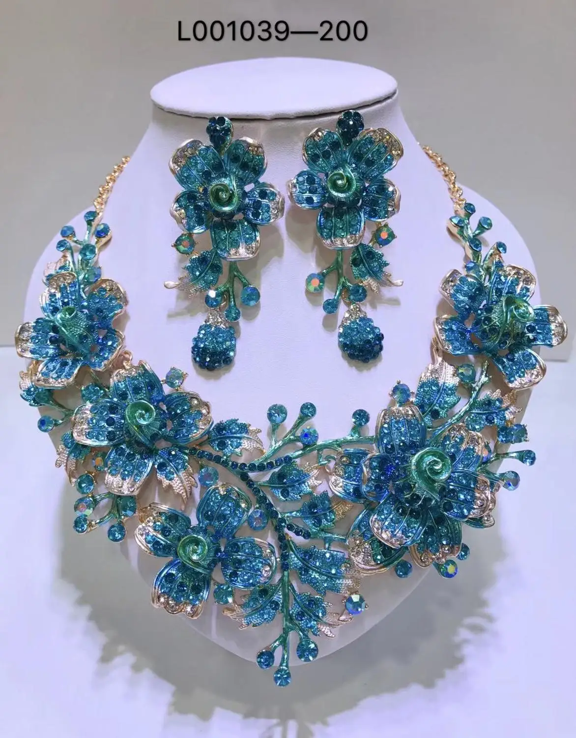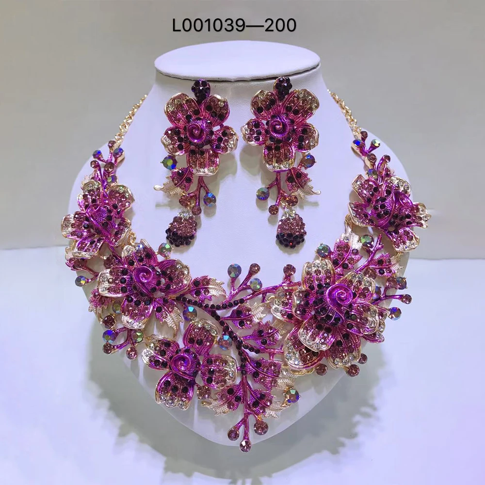 Elegant Flowers Bridal Jewelry Sets Wedding Costume Necklace & Earrings Sets Shining Crystal Gold Color Jewellery For Brides