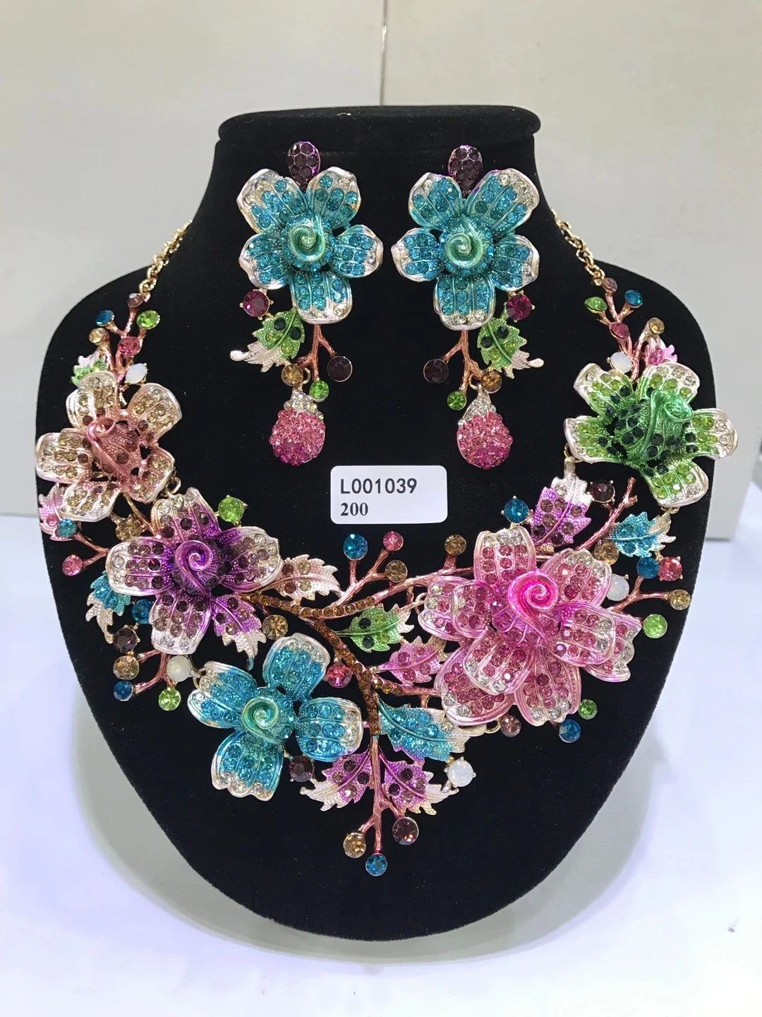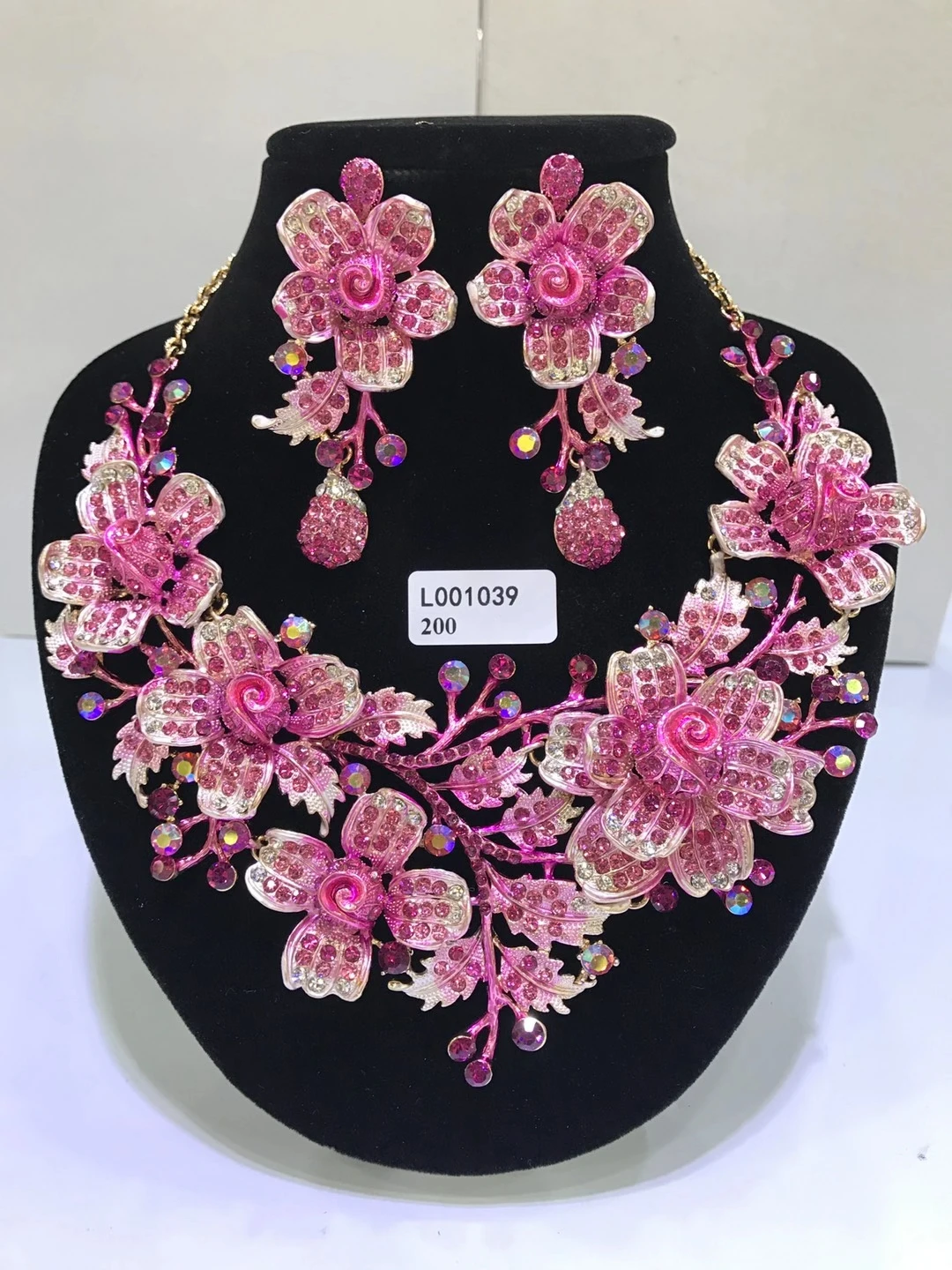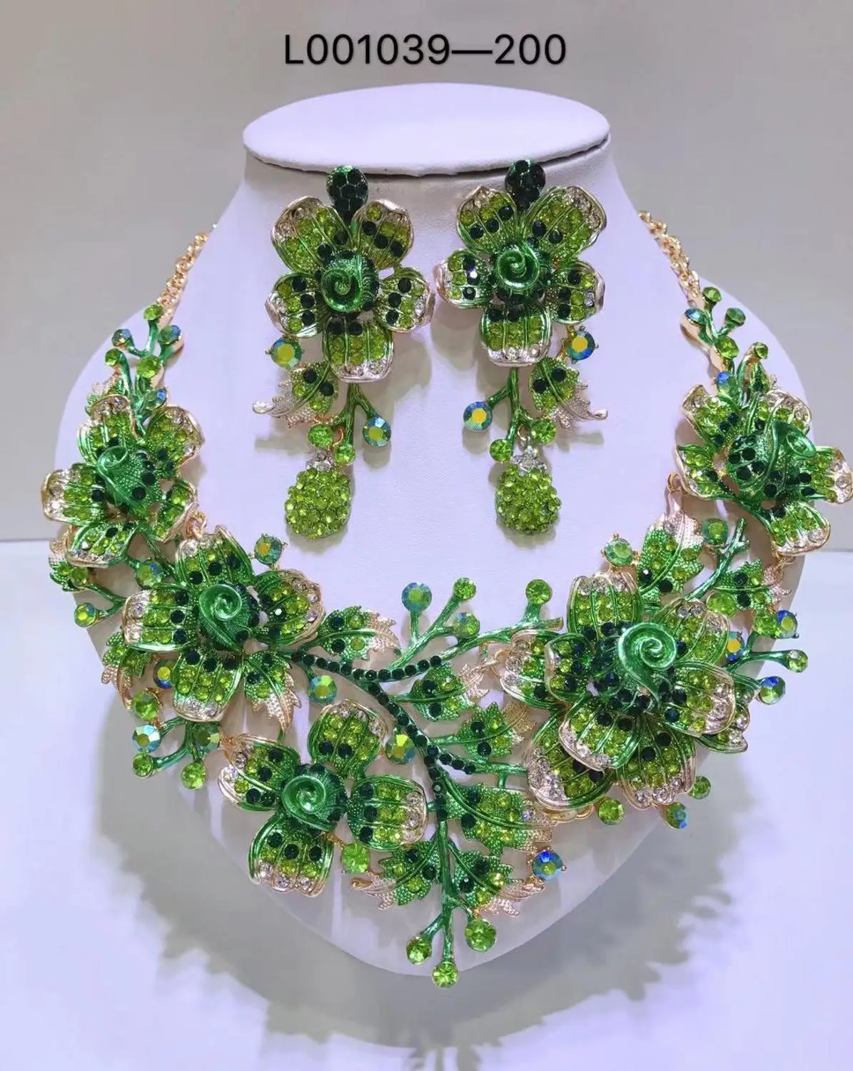 Elegant Flowers Bridal Jewelry Sets Wedding Costume Necklace & Earrings Sets Shining Crystal Gold Color Jewellery For Brides