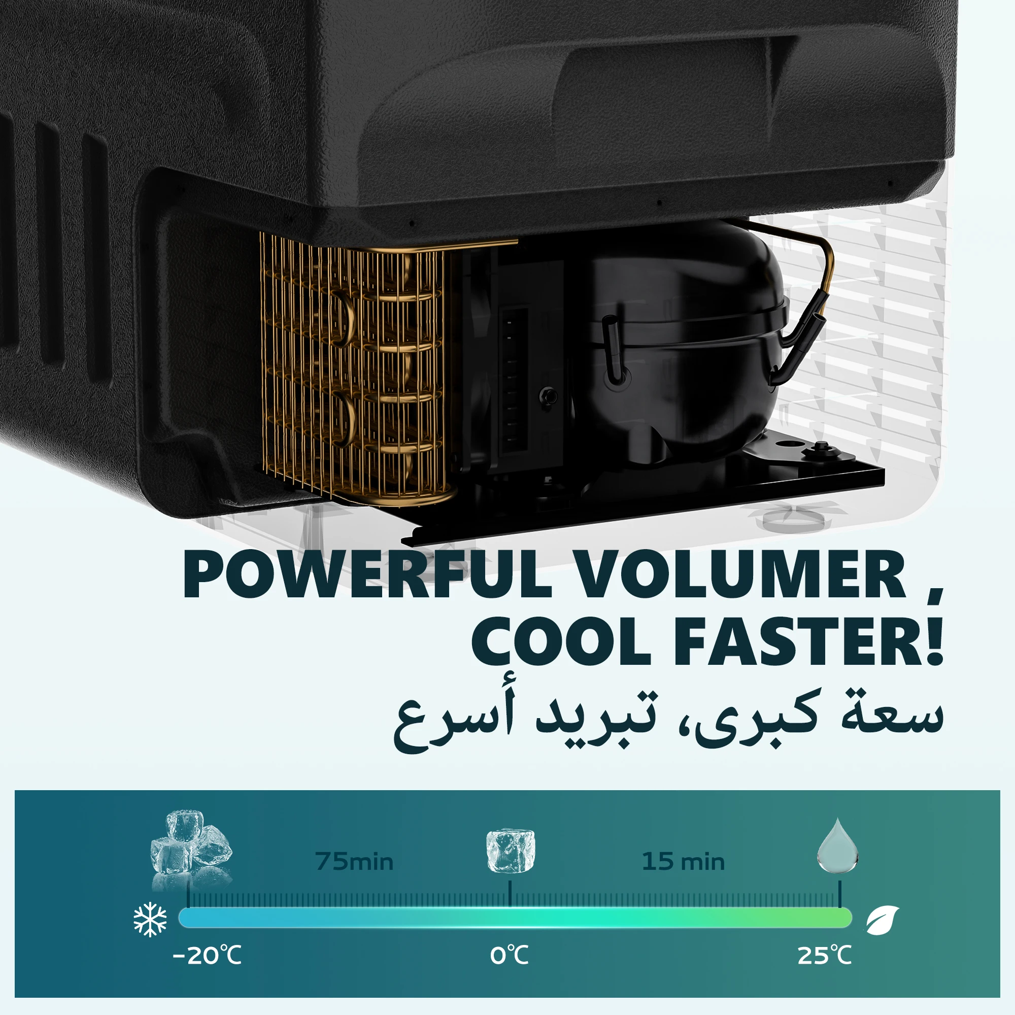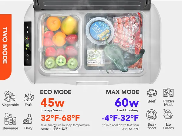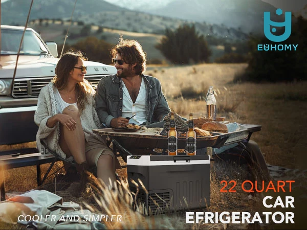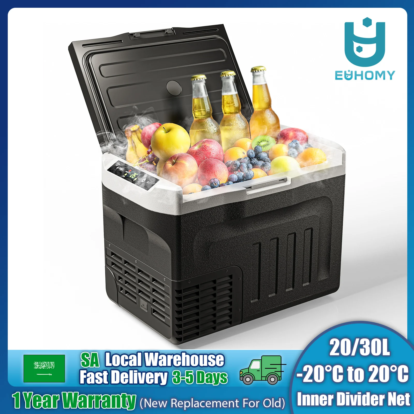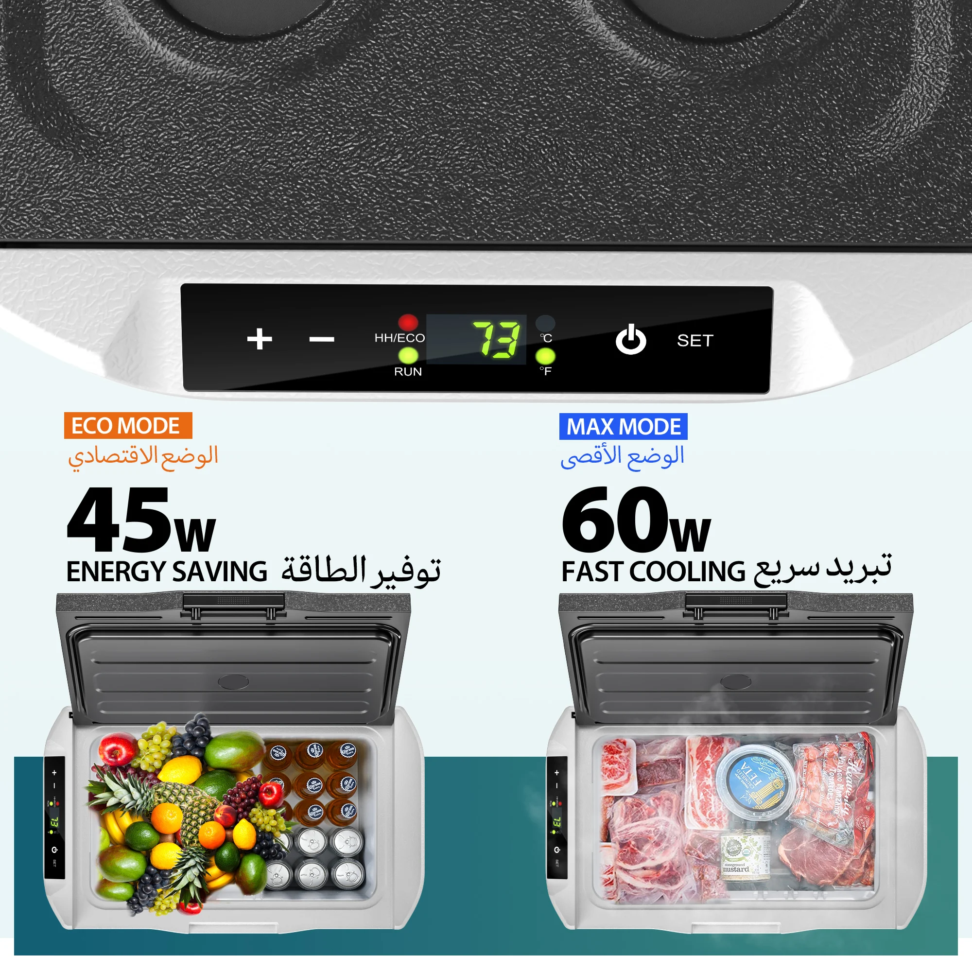 This car refrigerator offers a 20L/30L capacity, ideal for storing food and drinks during travel, ensuring items remain fresh and cool.