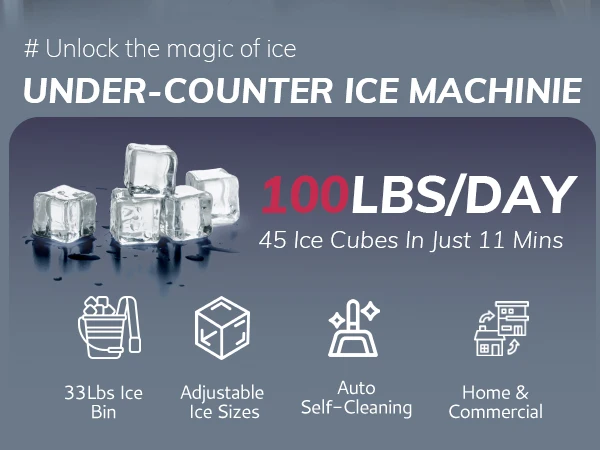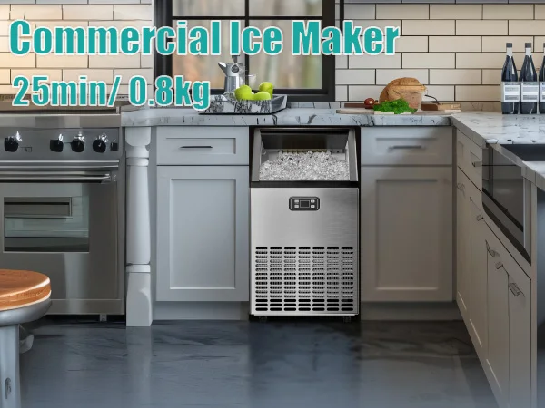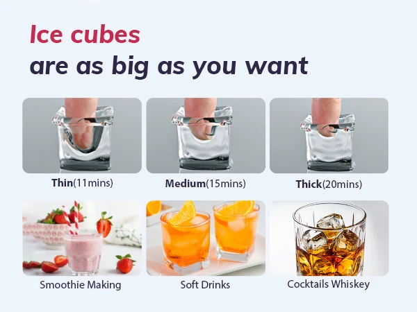 Producing 0.8kg in 25min per round, Shaped with Cube Ice, with the portraits of fast cooling, moderate melting, enhance the taste of drinks.