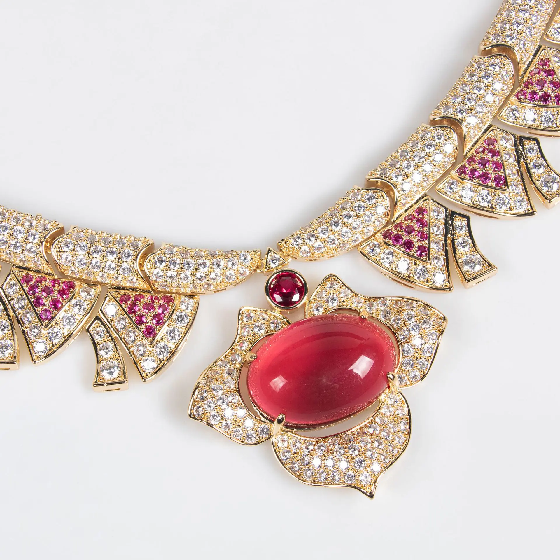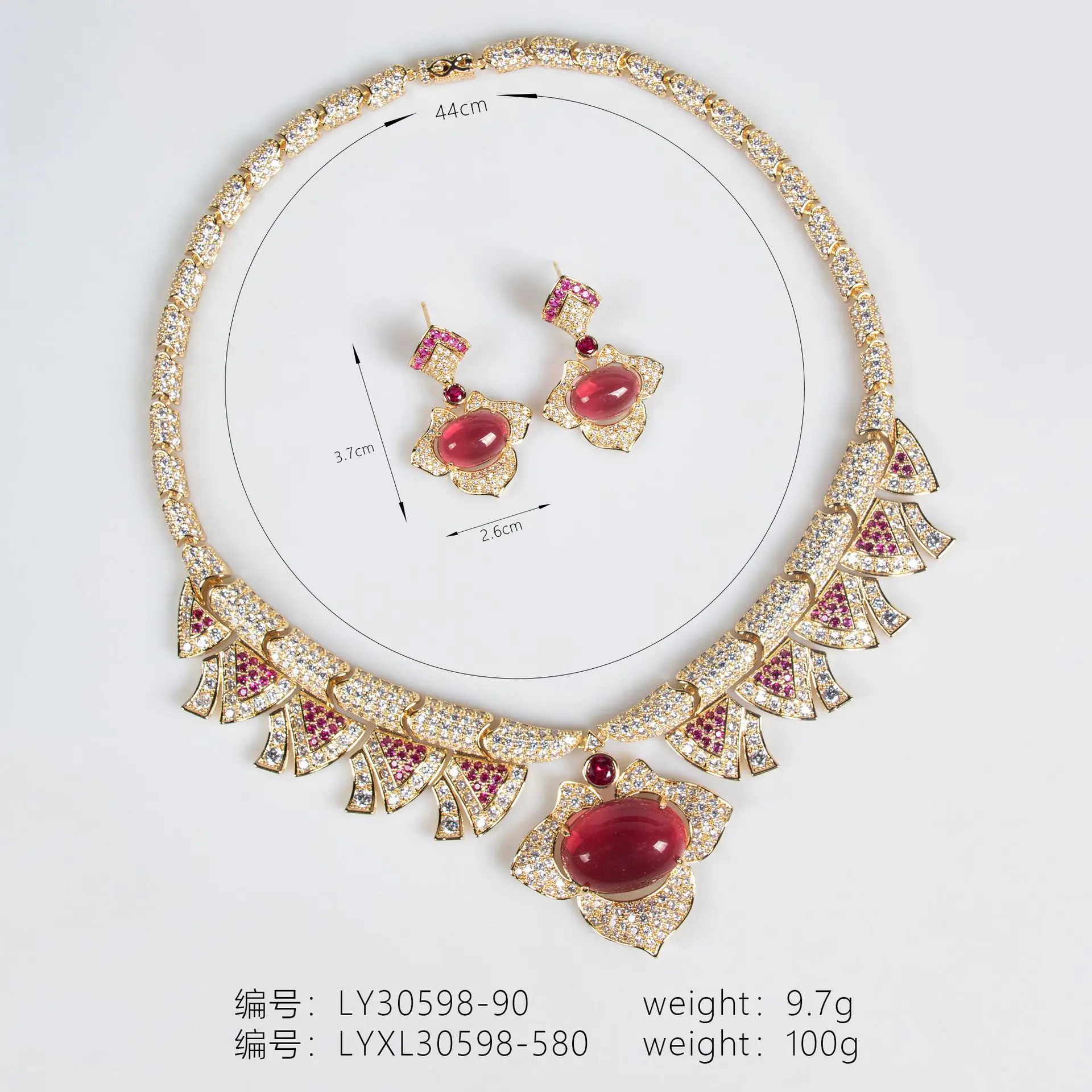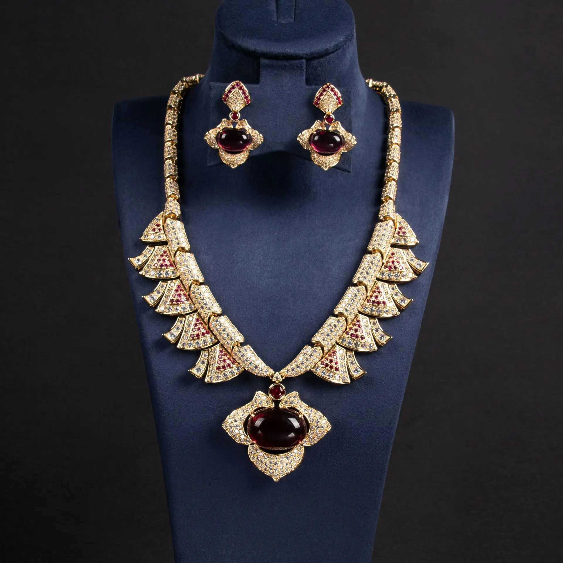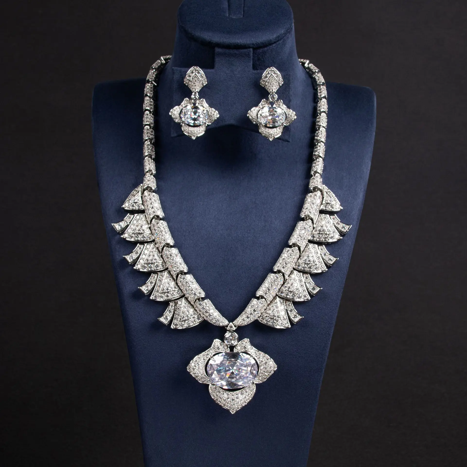 European and American fashion fan-shaped necklace, zircon inlaid copper gold-plated stud earrings, luxurious jewelry for women
