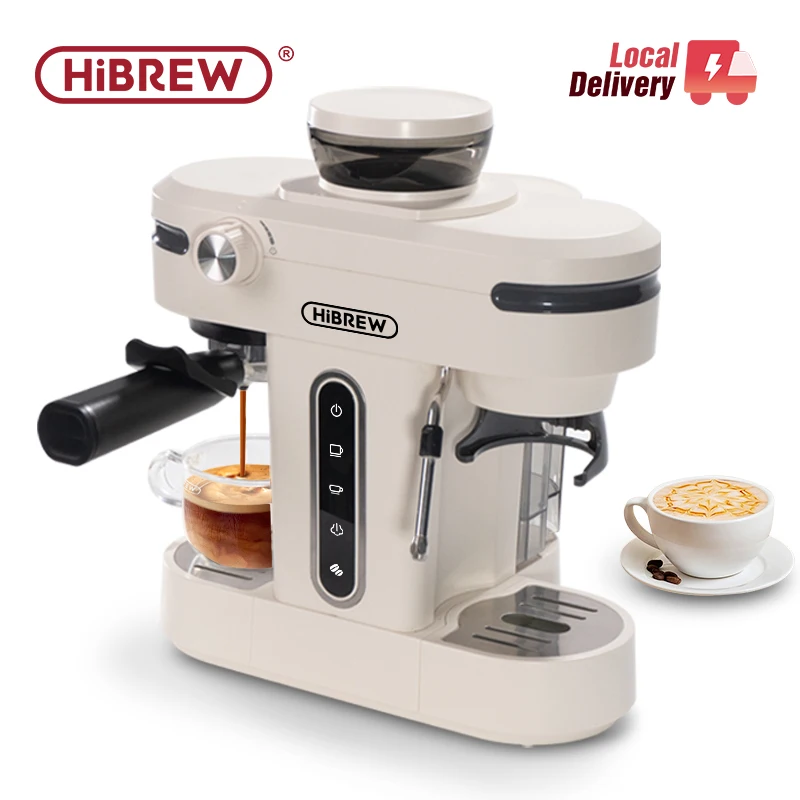 HiBREW 20 Bar Semi Automatic Espresso Coffee Maker With Grinder Bean For Cappuccino and Latte Milk Frothing System Machine H14