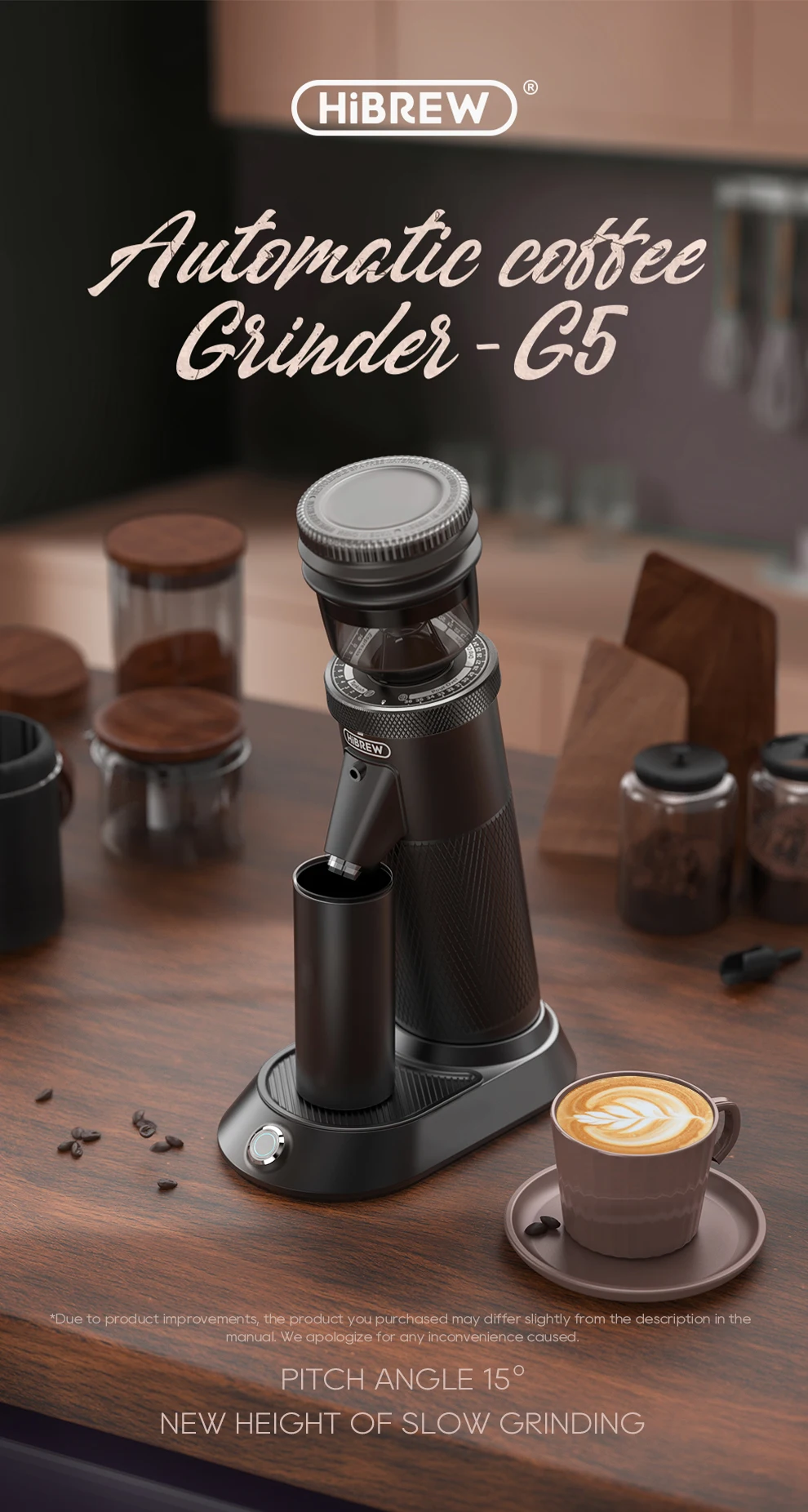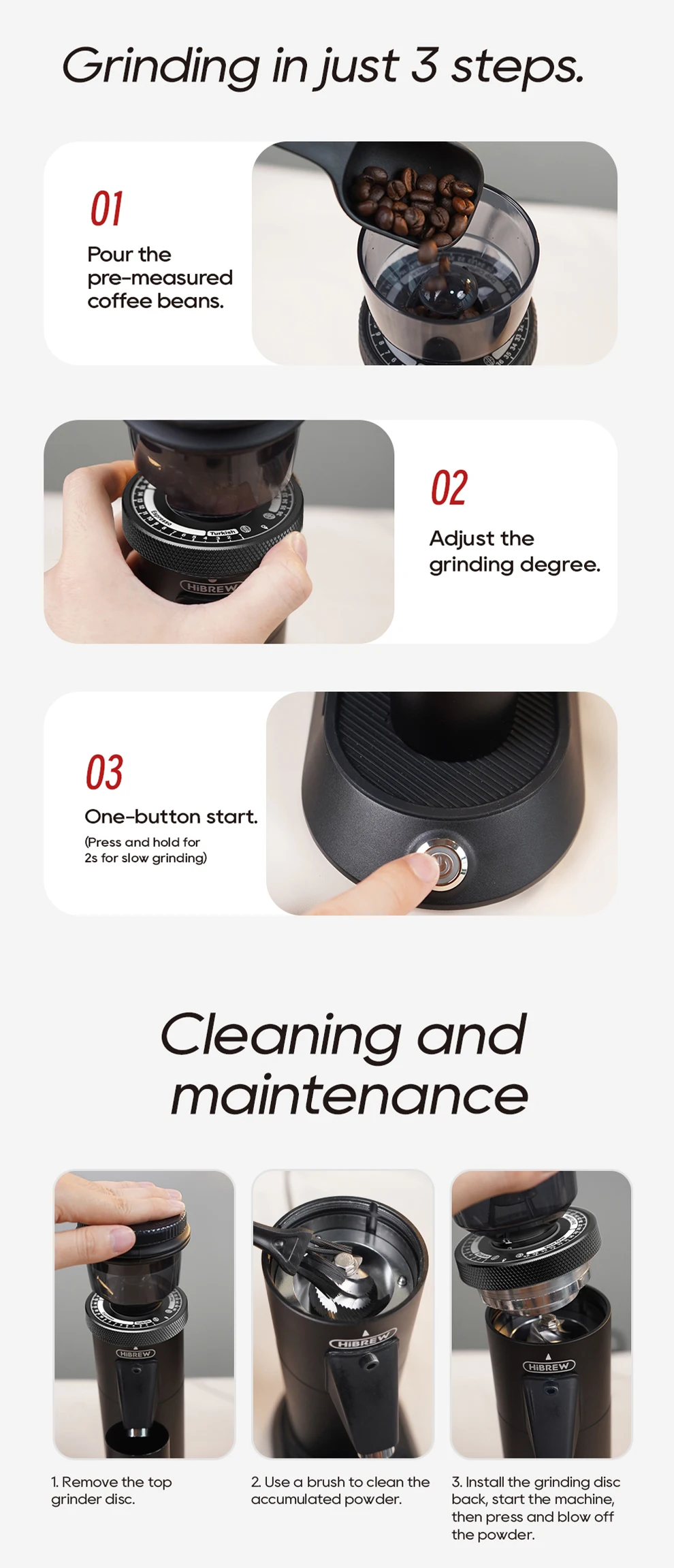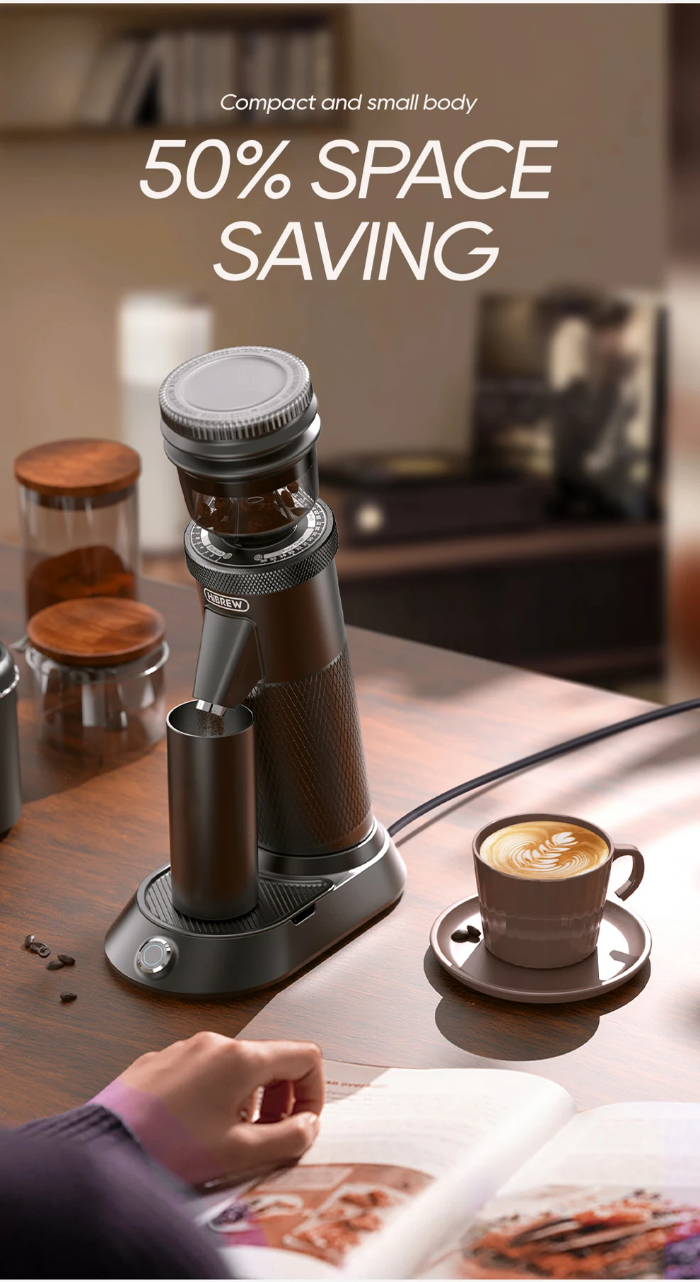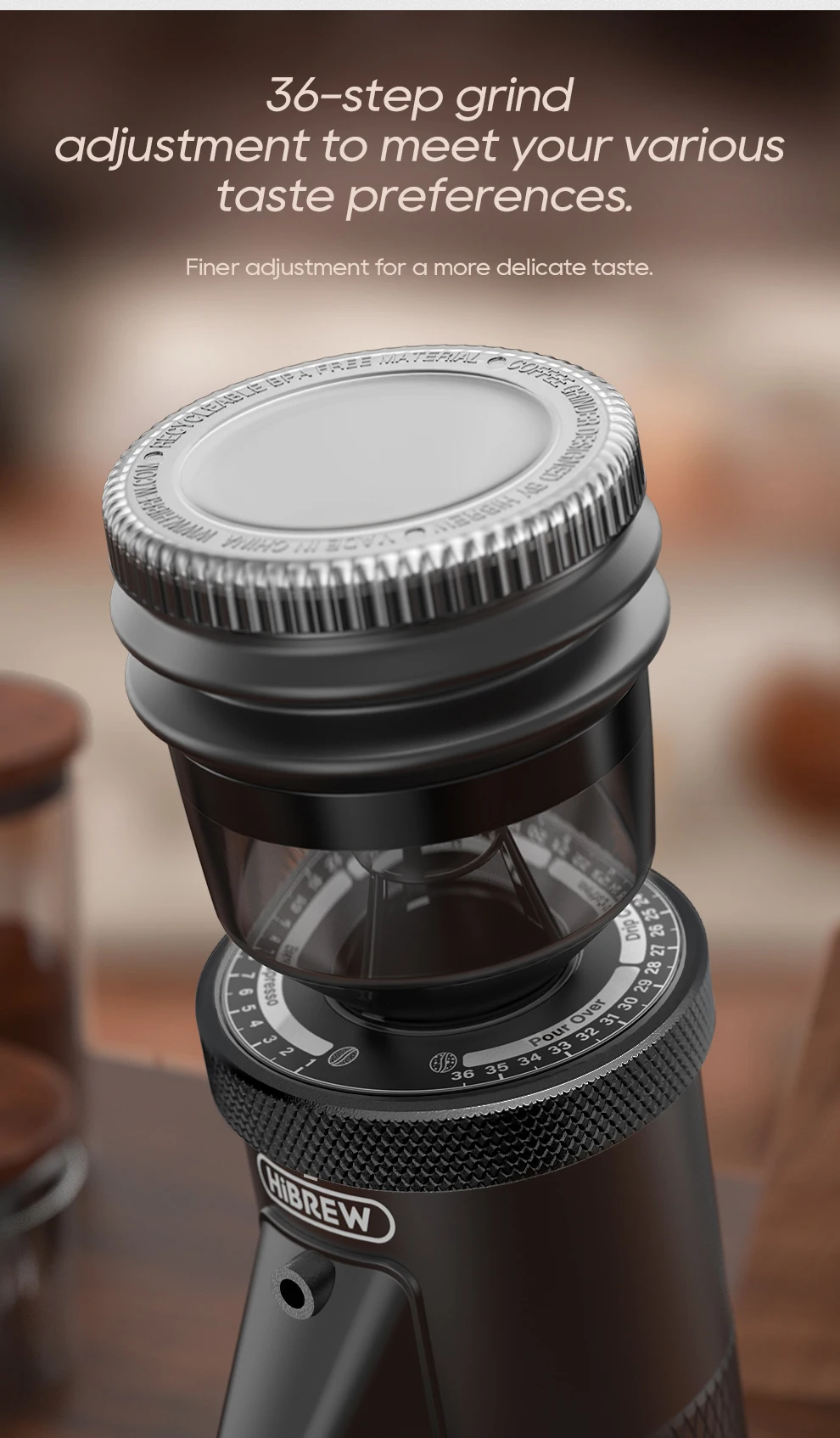 HiBREW Conical Burr Electric Coffee Grinder Compact Portable Coffee Bean Mill Kitchen for Espresso Turkish Coffee G5