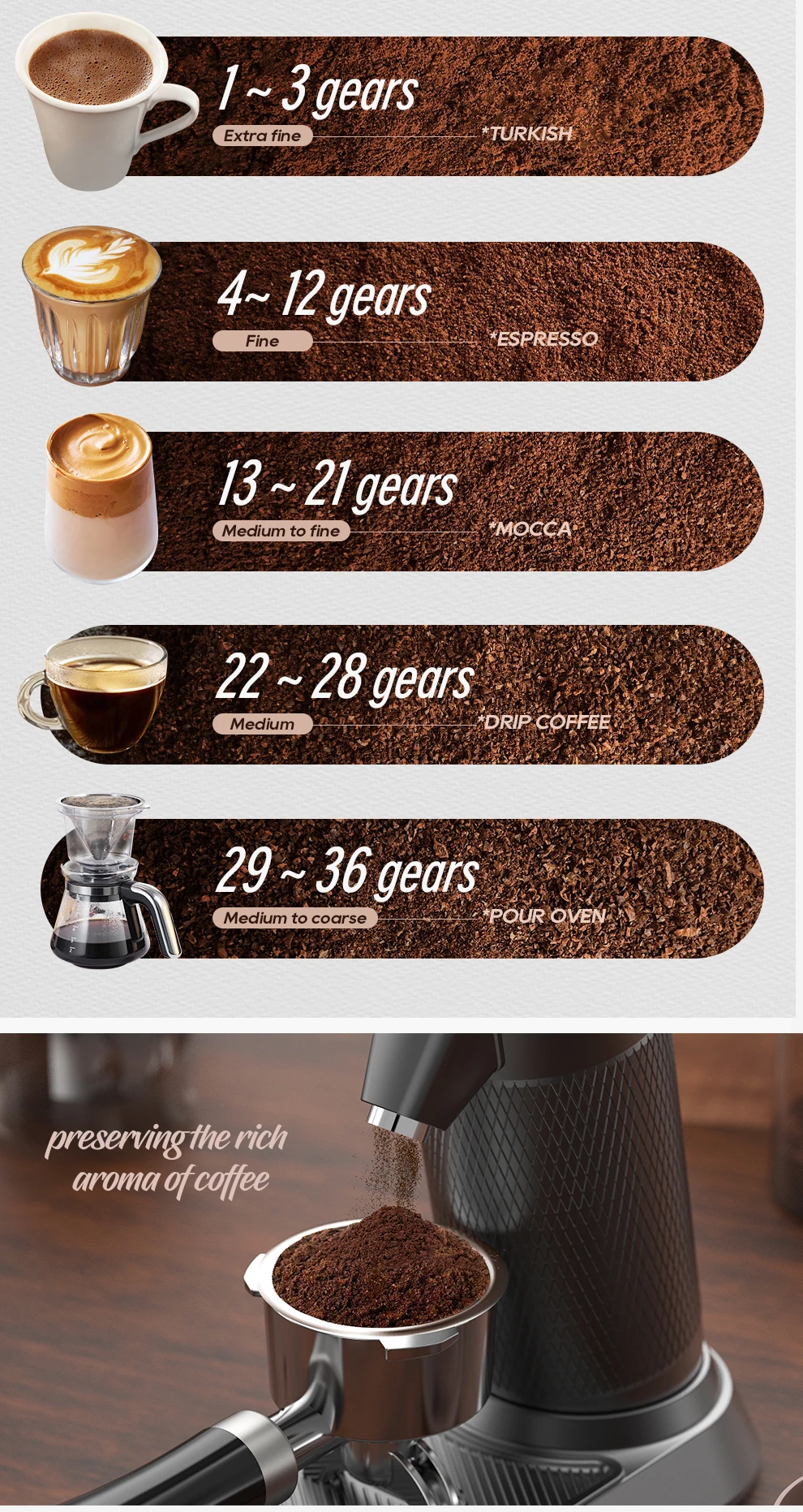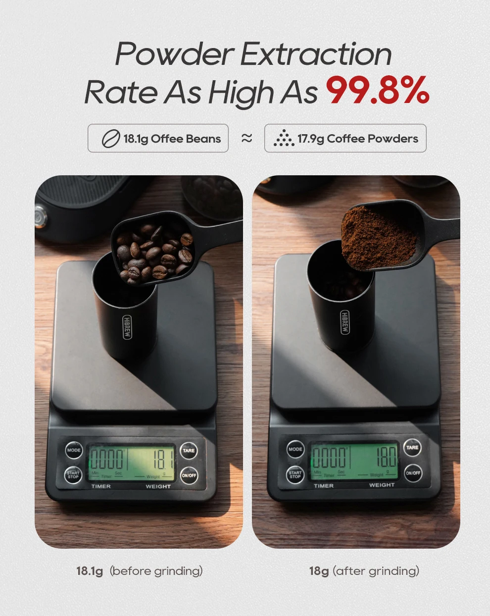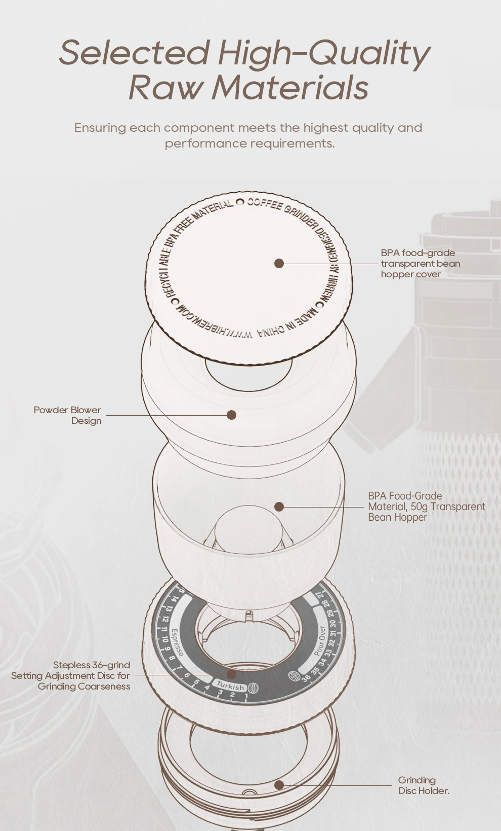 HiBREW Conical Burr Electric Coffee Grinder Compact Portable Coffee Bean Mill Kitchen for Espresso Turkish Coffee G5