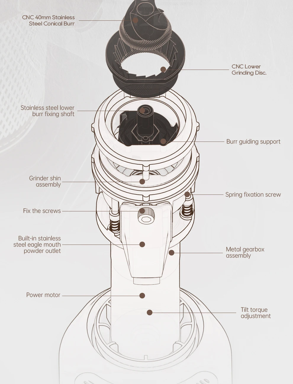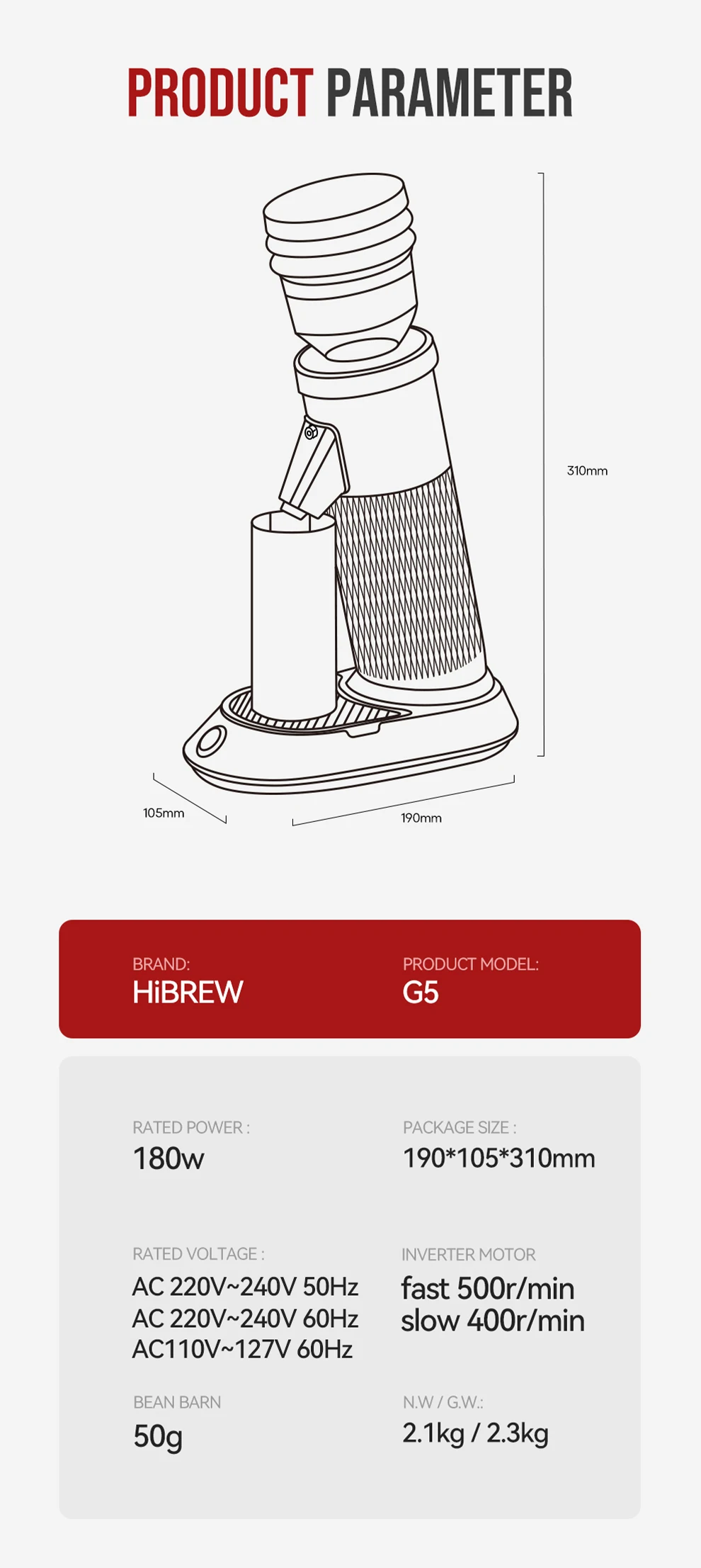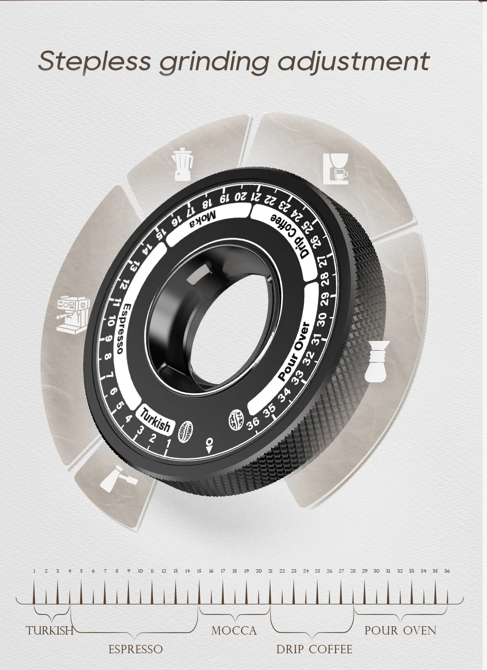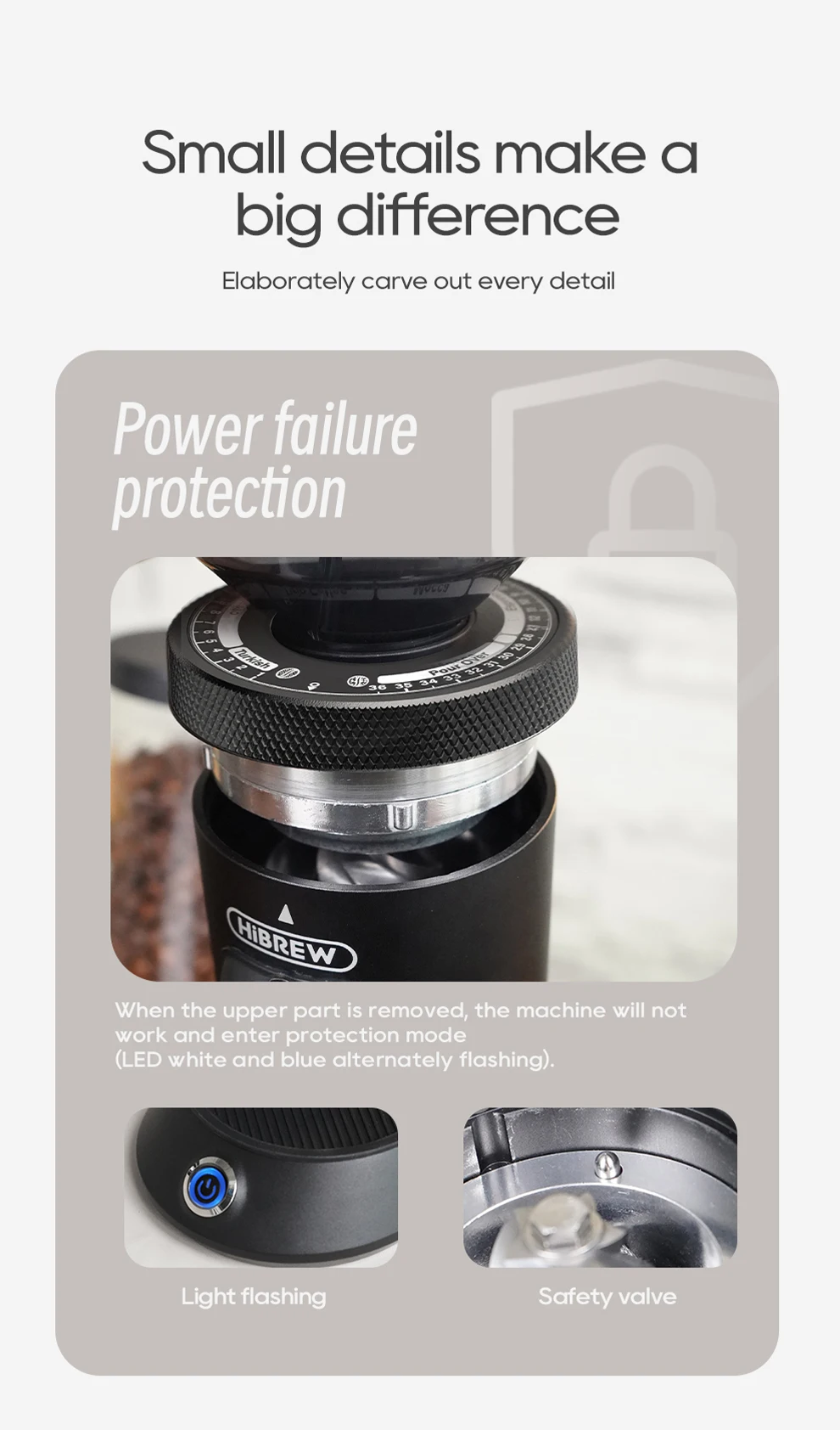 HiBREW Conical Burr Electric Coffee Grinder Compact Portable Coffee Bean Mill Kitchen for Espresso Turkish Coffee G5