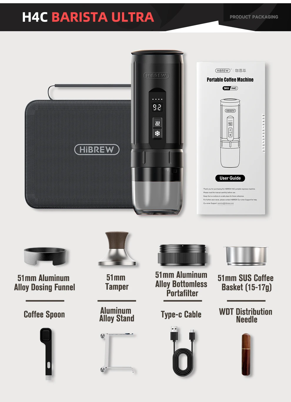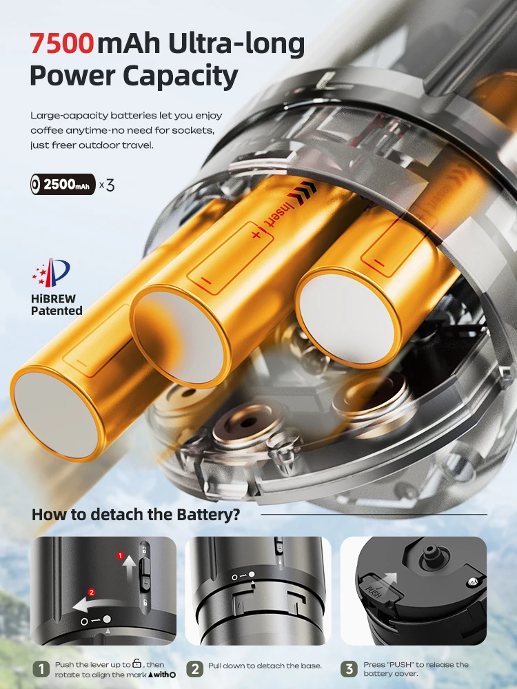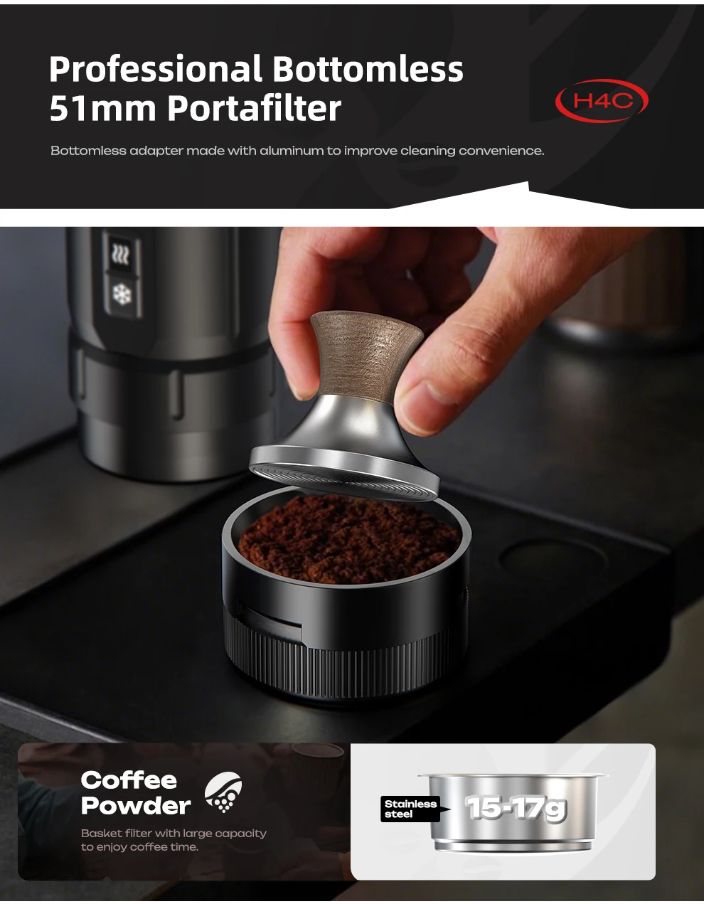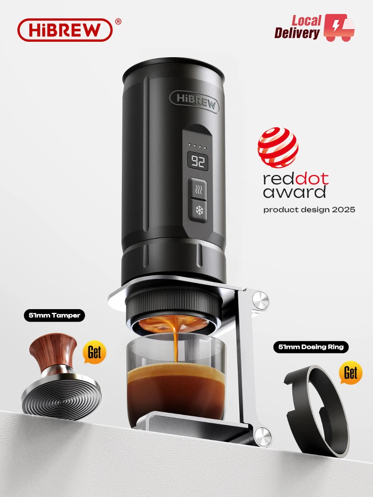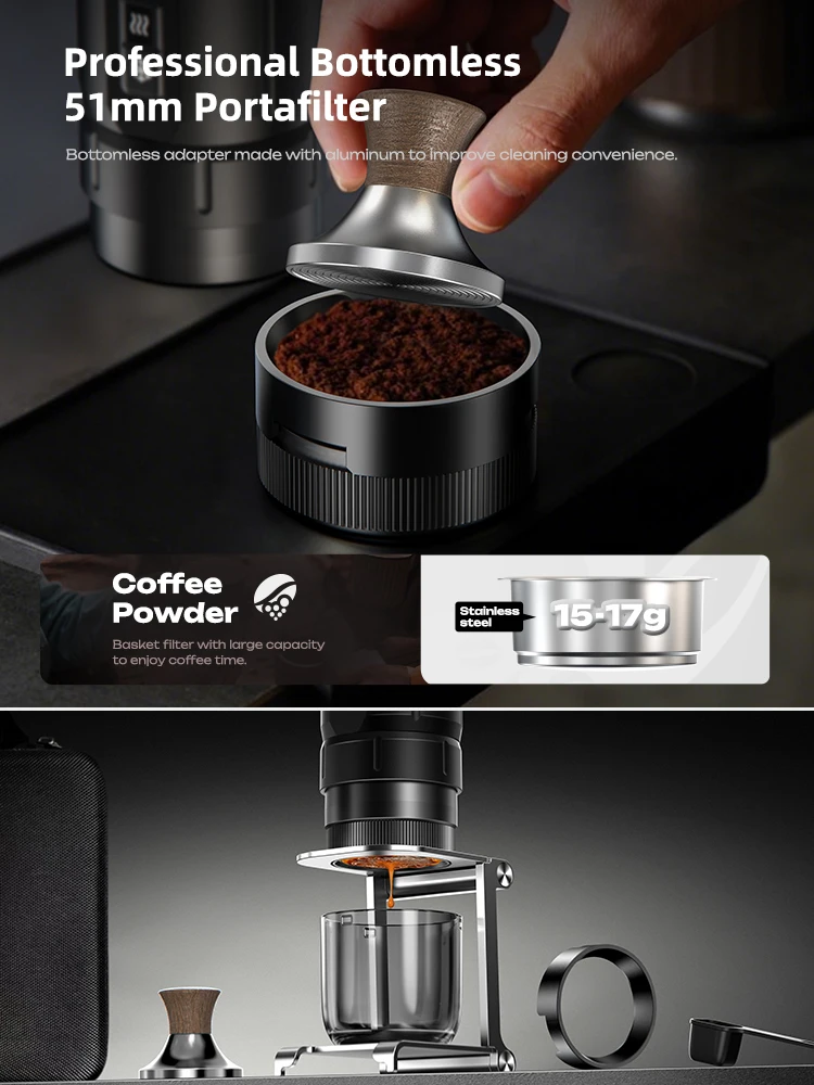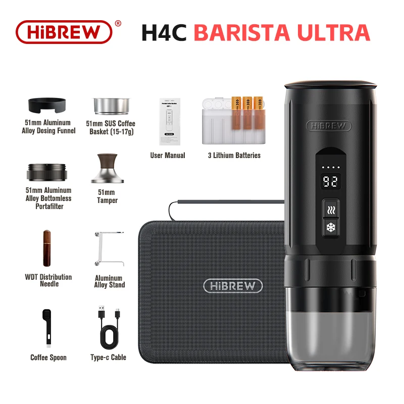 HiBREW H4C Portable Espresso Coffee Machine Wireless Heating Removable Battery Barista Ground Coffee Bottomless Extraction