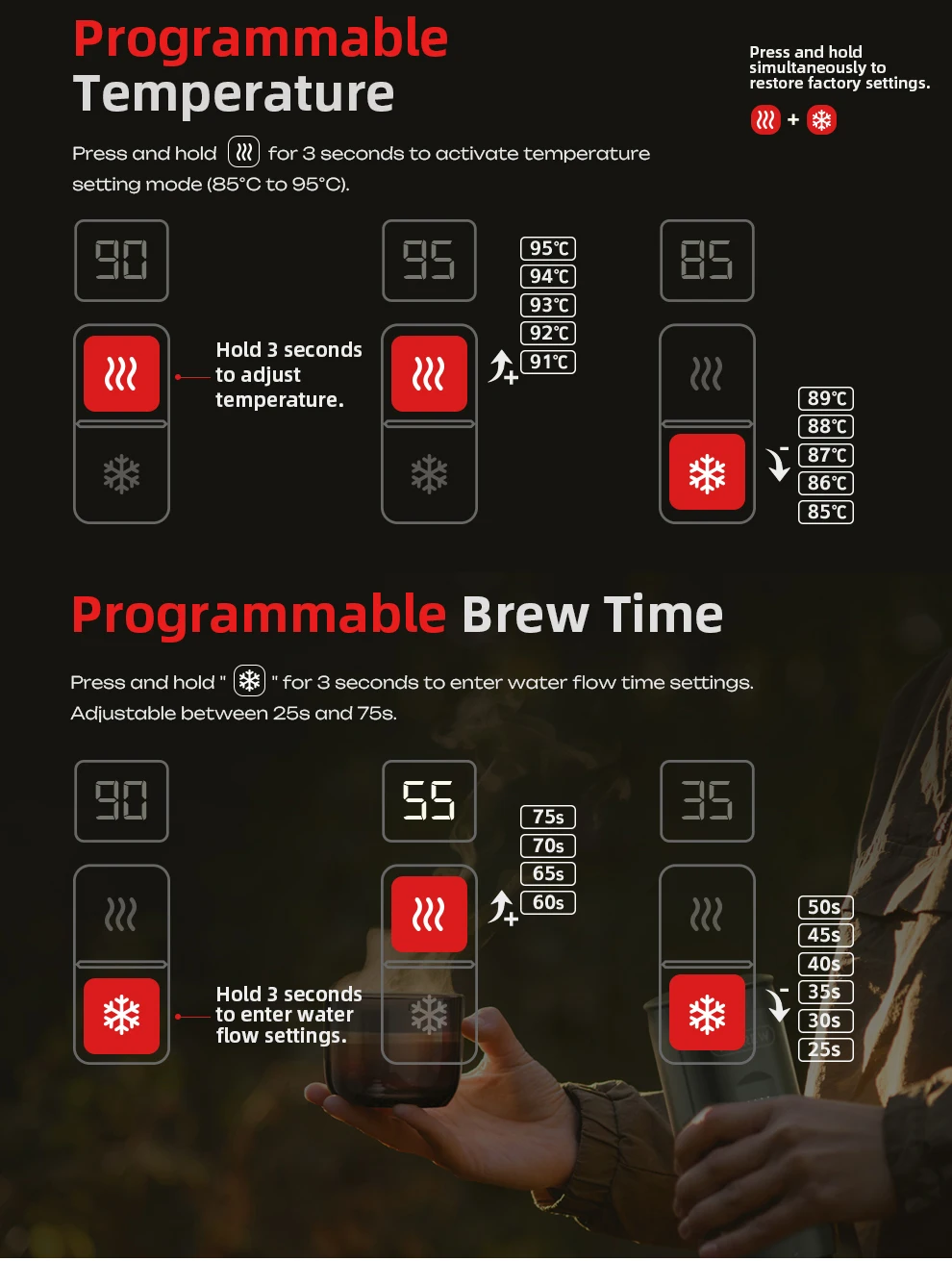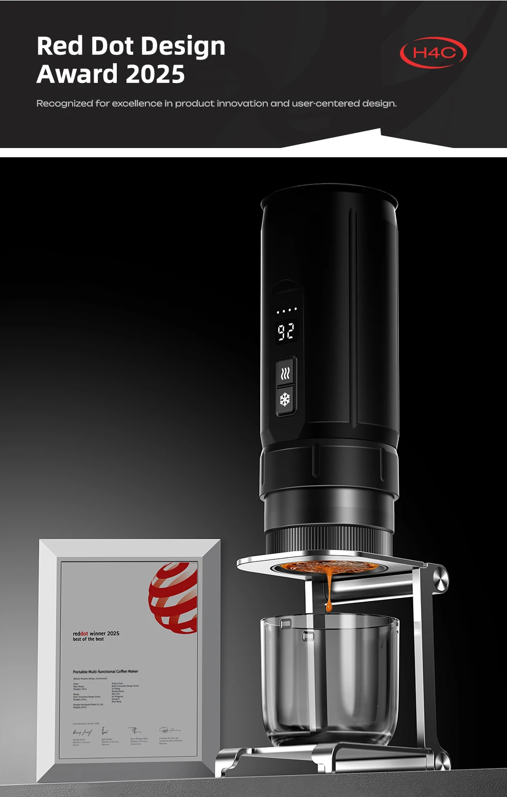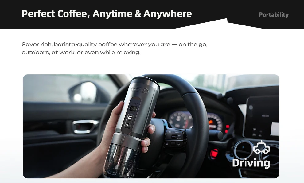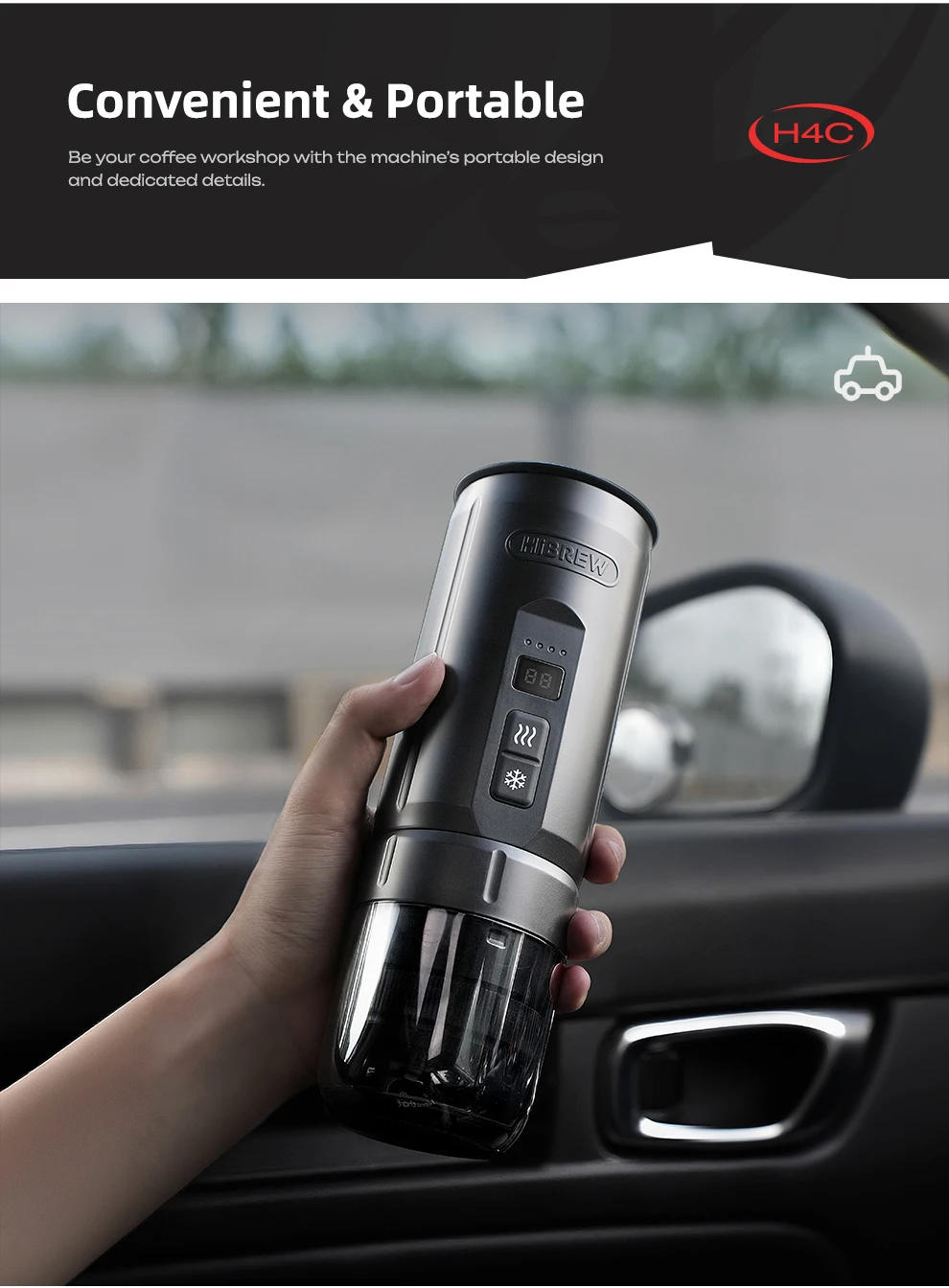 HiBREW H4C Portable Espresso Coffee Machine Wireless Heating Removable Battery Barista Ground Coffee Bottomless Extraction
