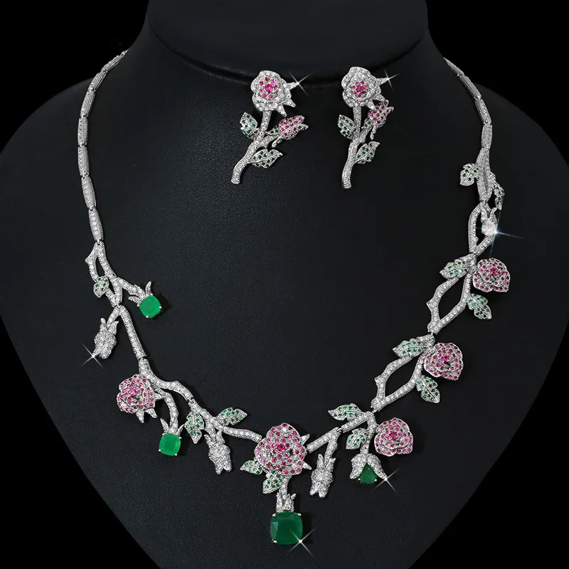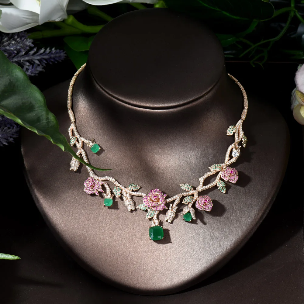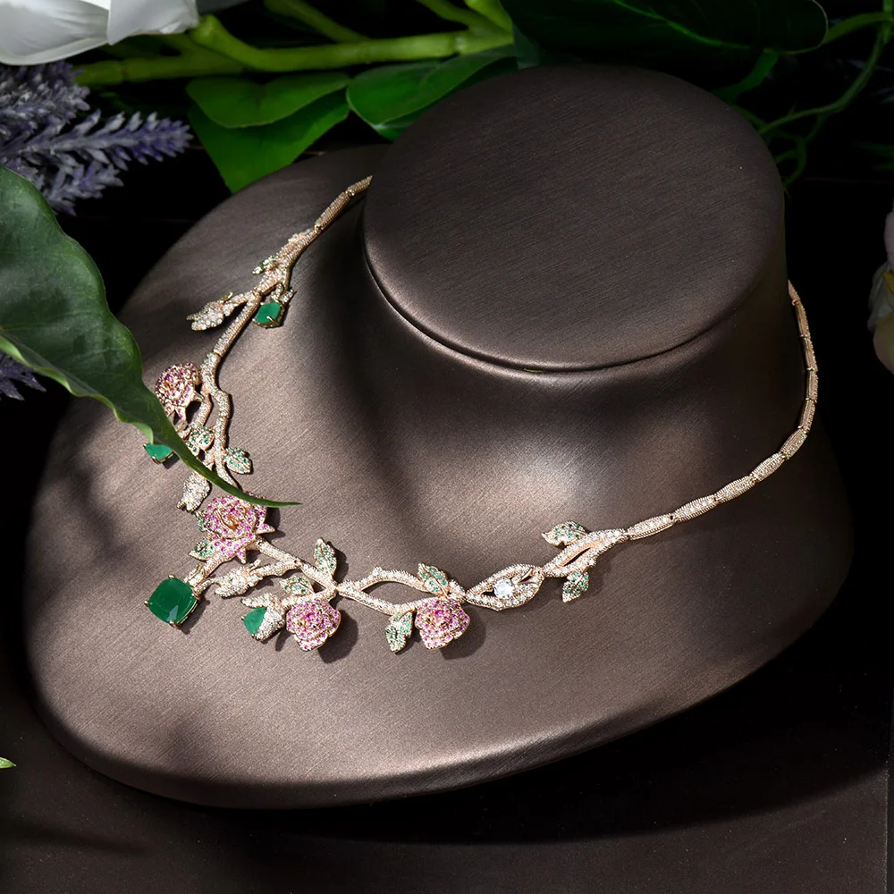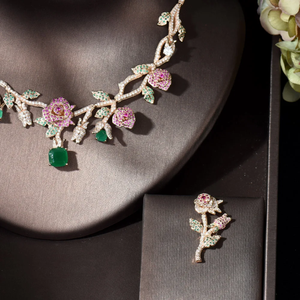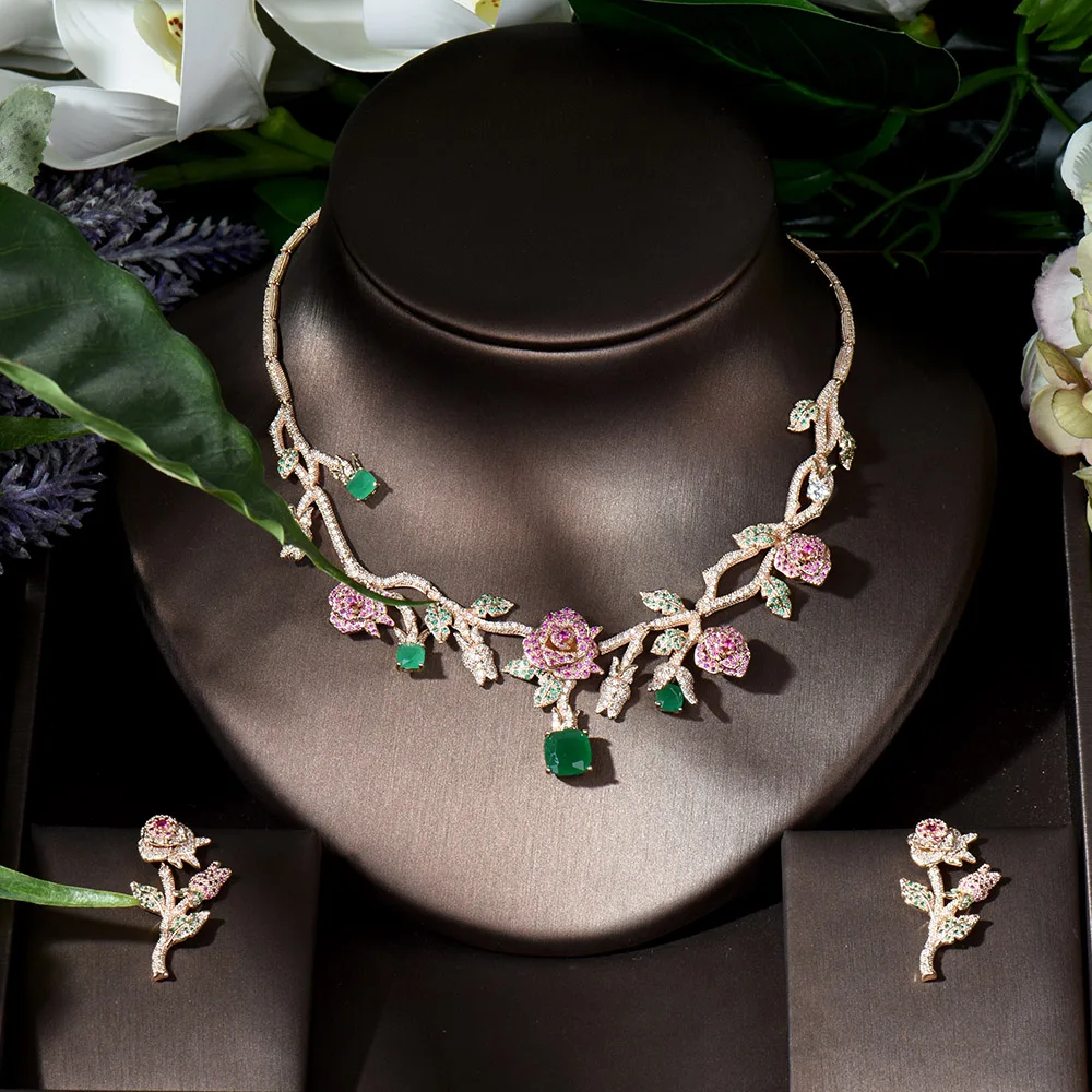 ︎♥︎Item Type:Gold Color Rose Flower Bridal Necklace Jewelry Sets