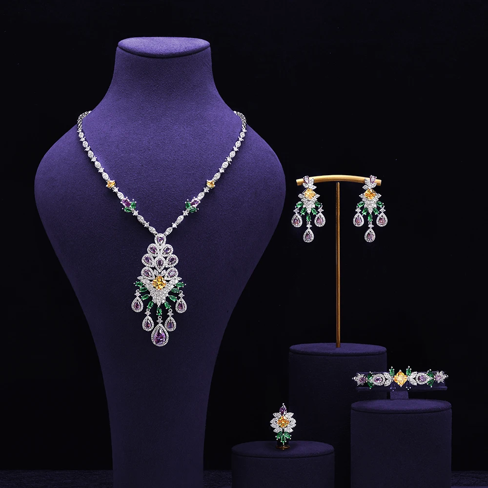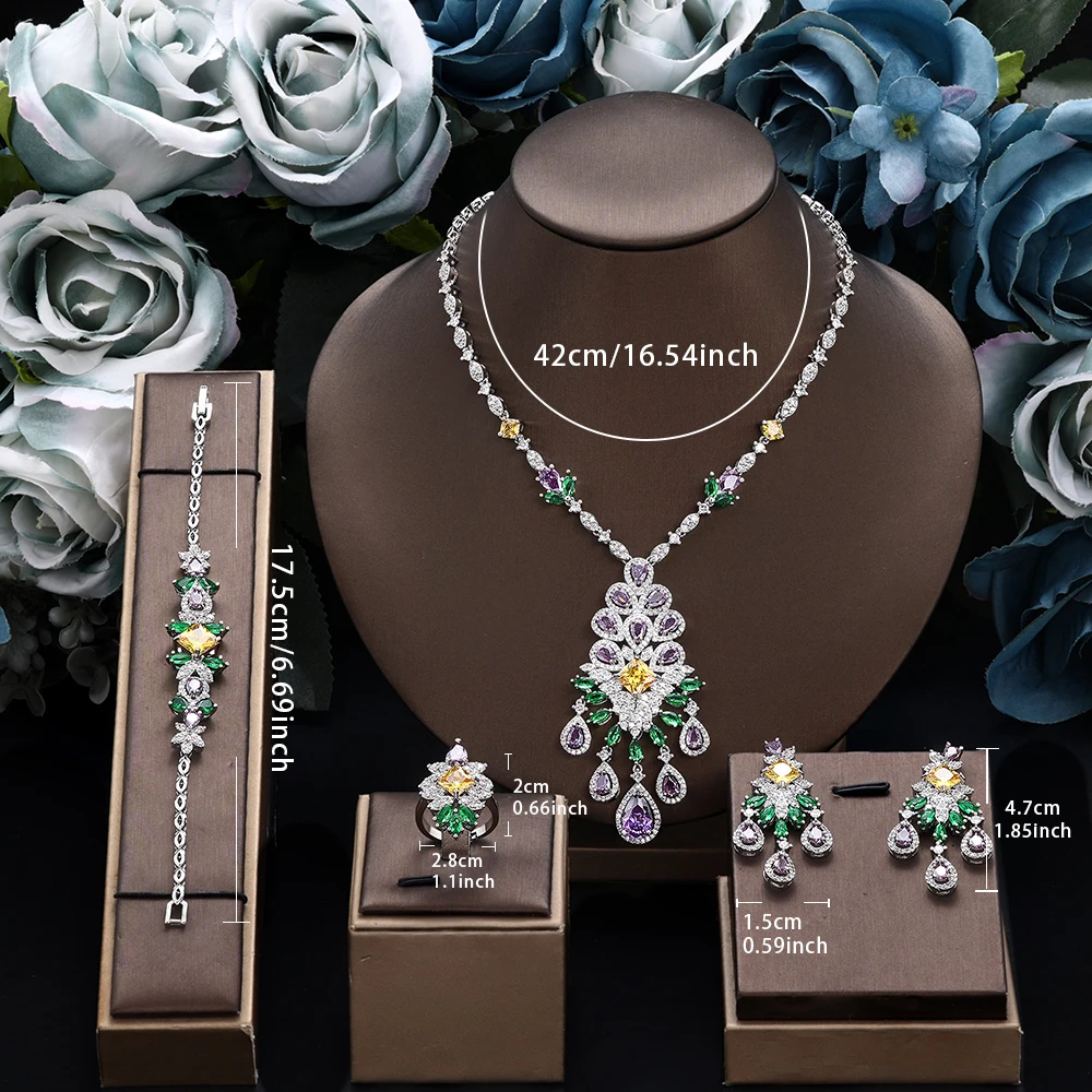 ︎♥︎Item Type:Necklace Earrings Bracelet 4 Piece Jewelry Set Suitable for Nigerian Women Wedding Event Gift