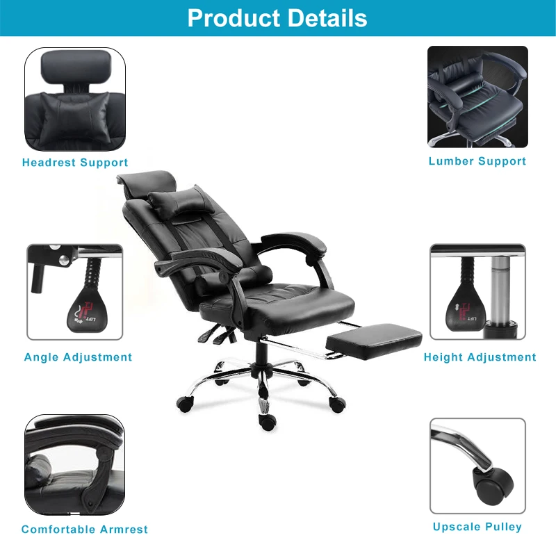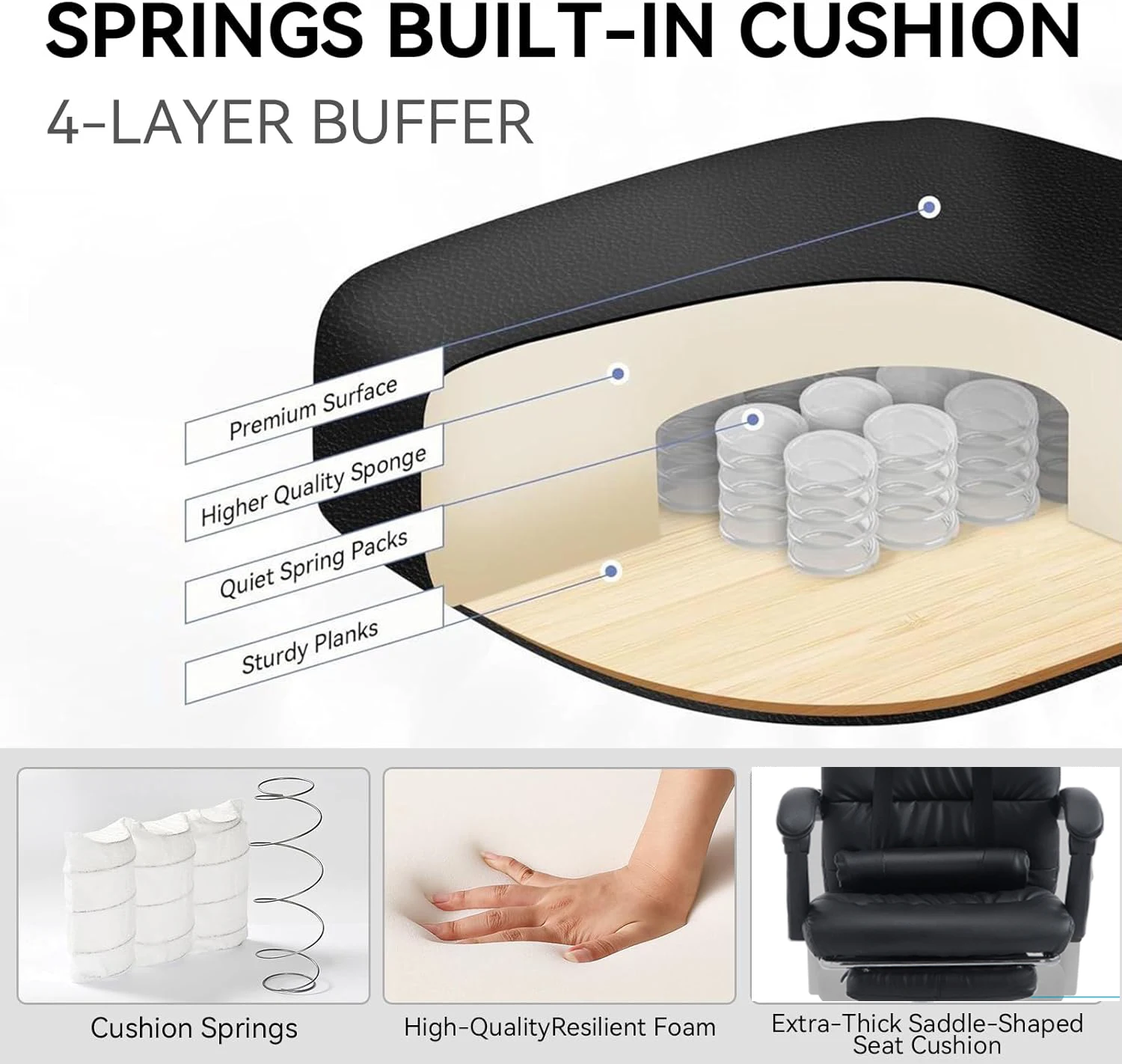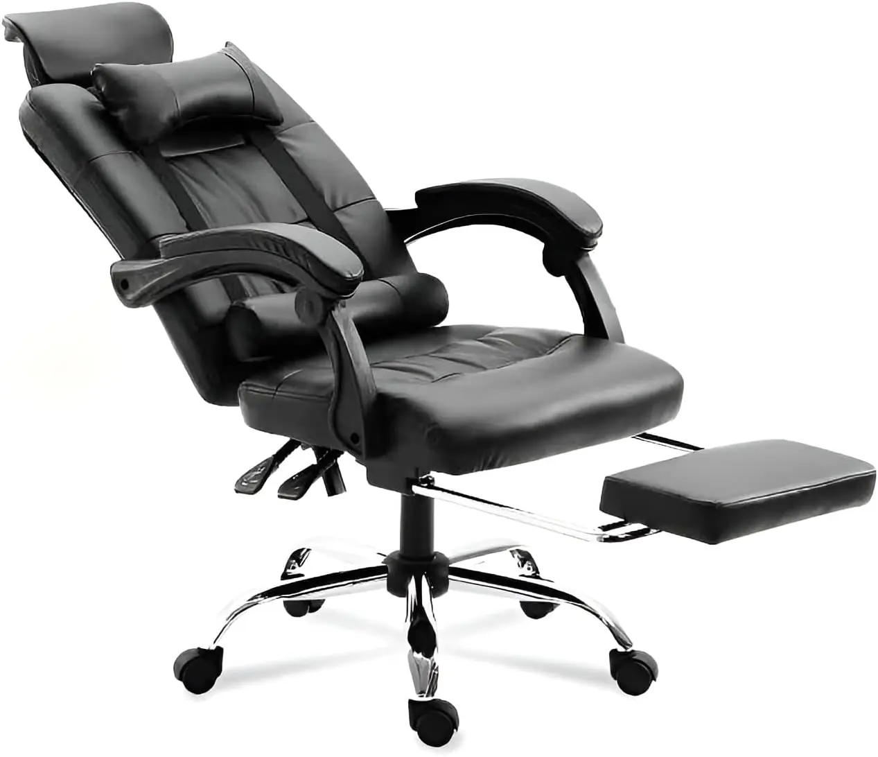 YJGET Home Office Chair Ergonomic Executive Office Chair PU Leather Swivel Desk Chairs,Adjustable Height Reclining Chair with Lumbar Armrest Support and Footrest