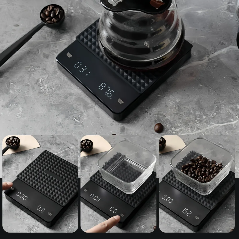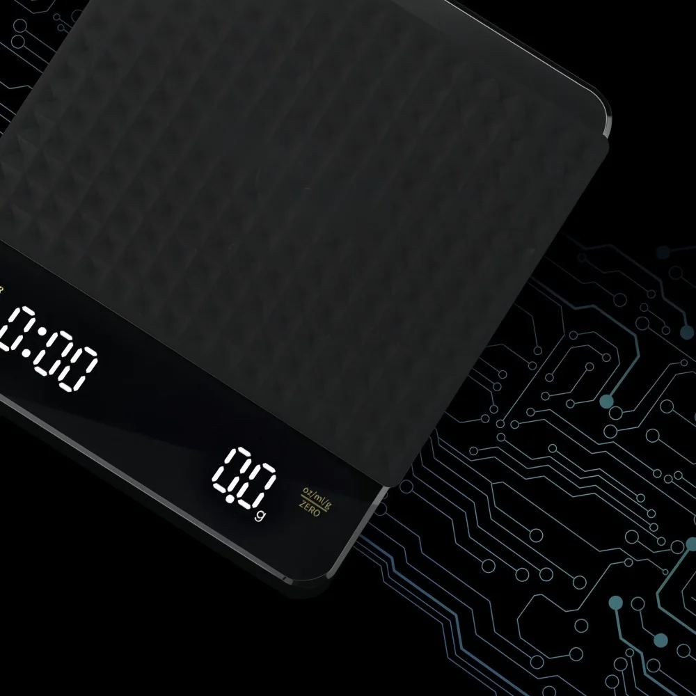 1. This high-precision electronic coffee scale uses advanced sensor technology to ensure a measurement accuracy of up to 0.1 grams. Whether it is precise coffee powder amount control or subtle ingredient adjustment, it can easily handle it, providing impeccable control for your coffee making. Accuracy.