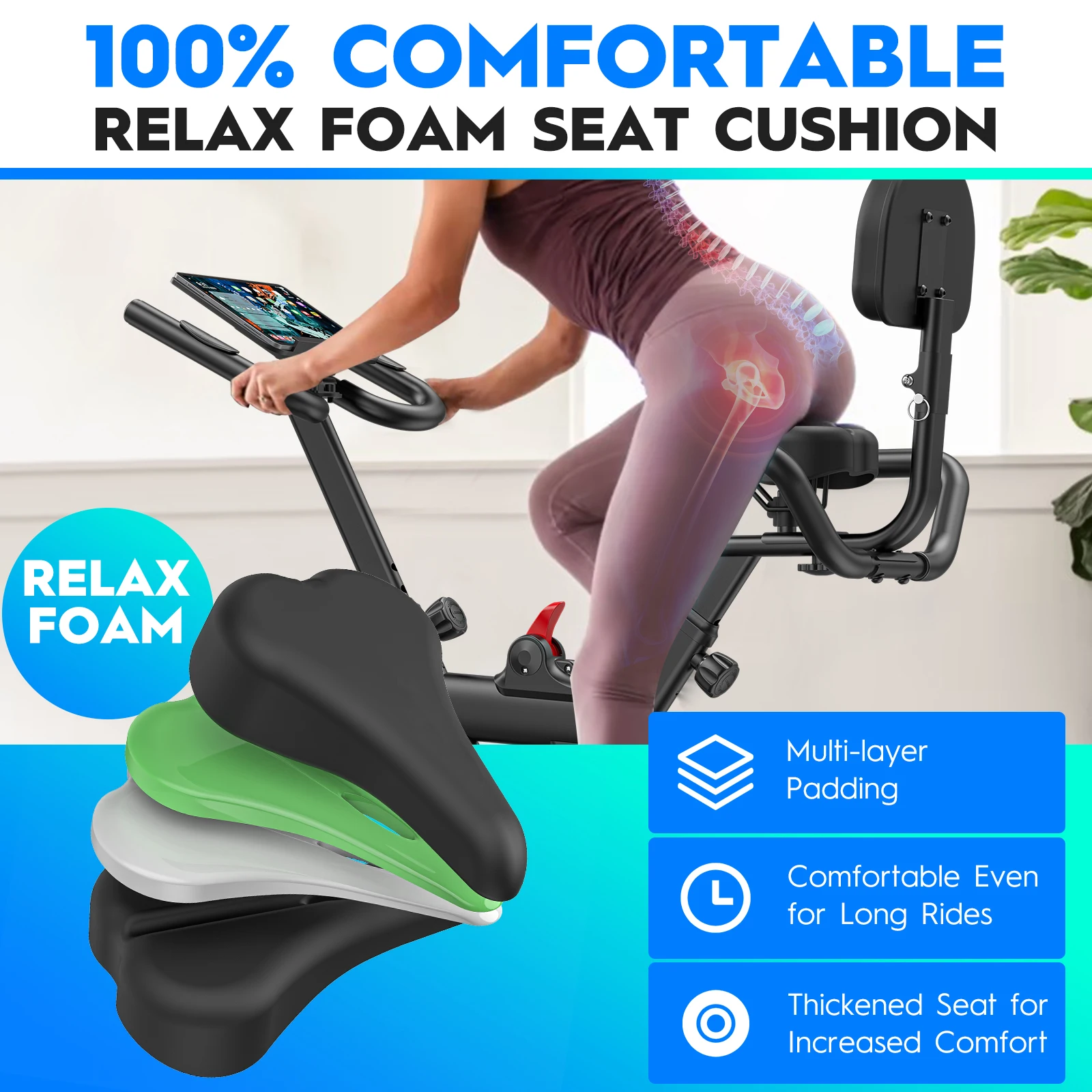 The multi-layer padded RelaxFoam seat and flexible adjustable handles allow ergonomic training for different user sizes. Multiple family members can use the device comfortably and back-friendly - even during longer sessions.