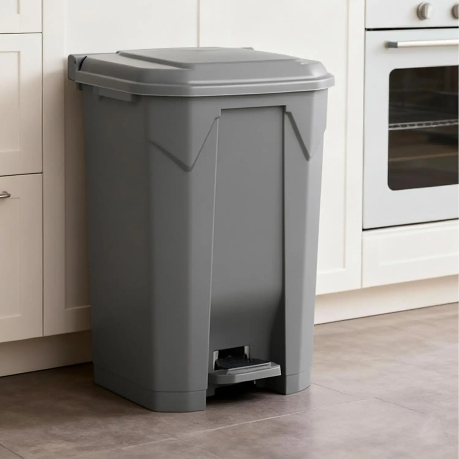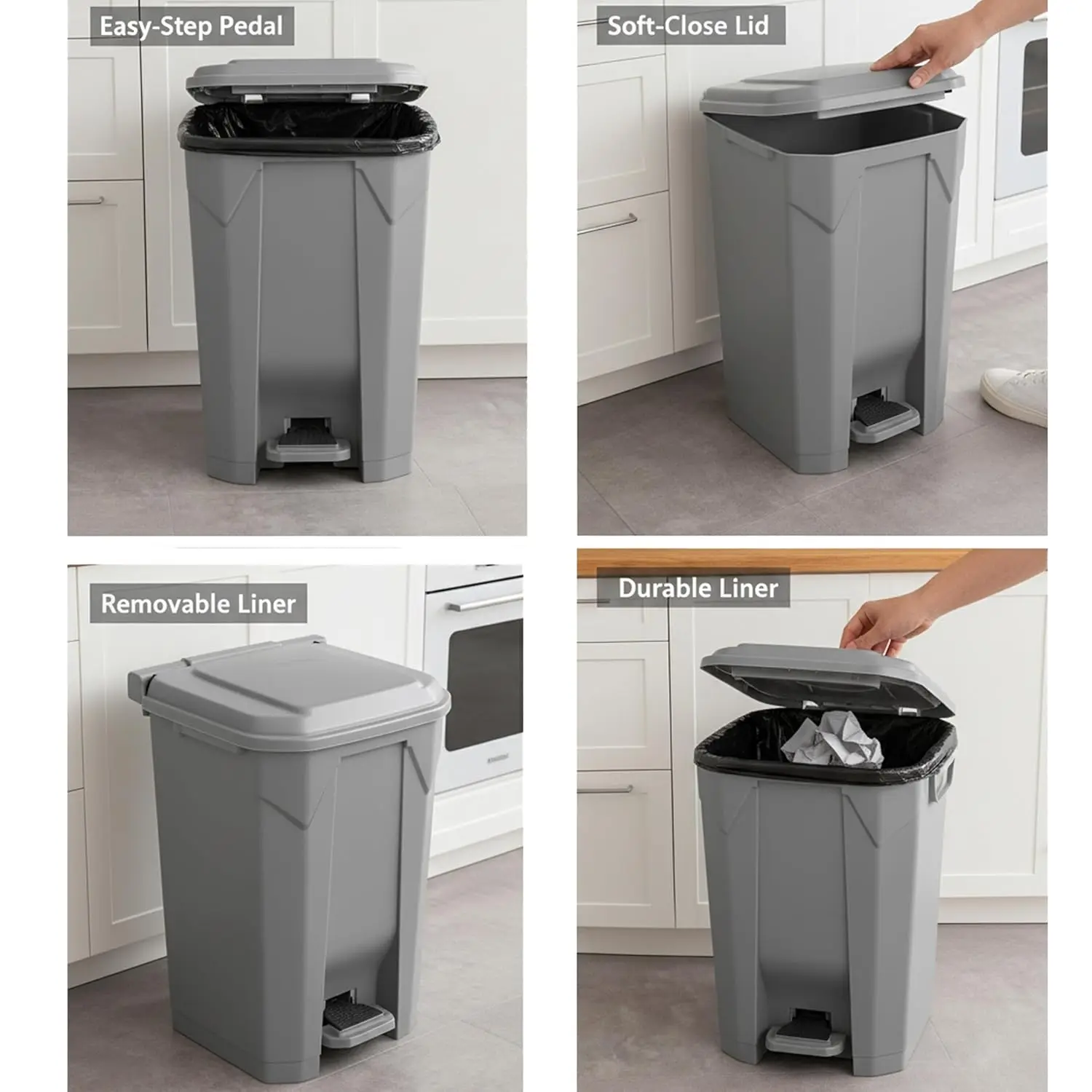 Concept Home, 30 Liter Outdoor, Indoor Garbage Bin With Attached Snap Lock Lid And Heavy-Duty Handles, Black, Heavy-Duty Construction, Perfect For Backyard, Deck, Or Garage Trash Can - Grey