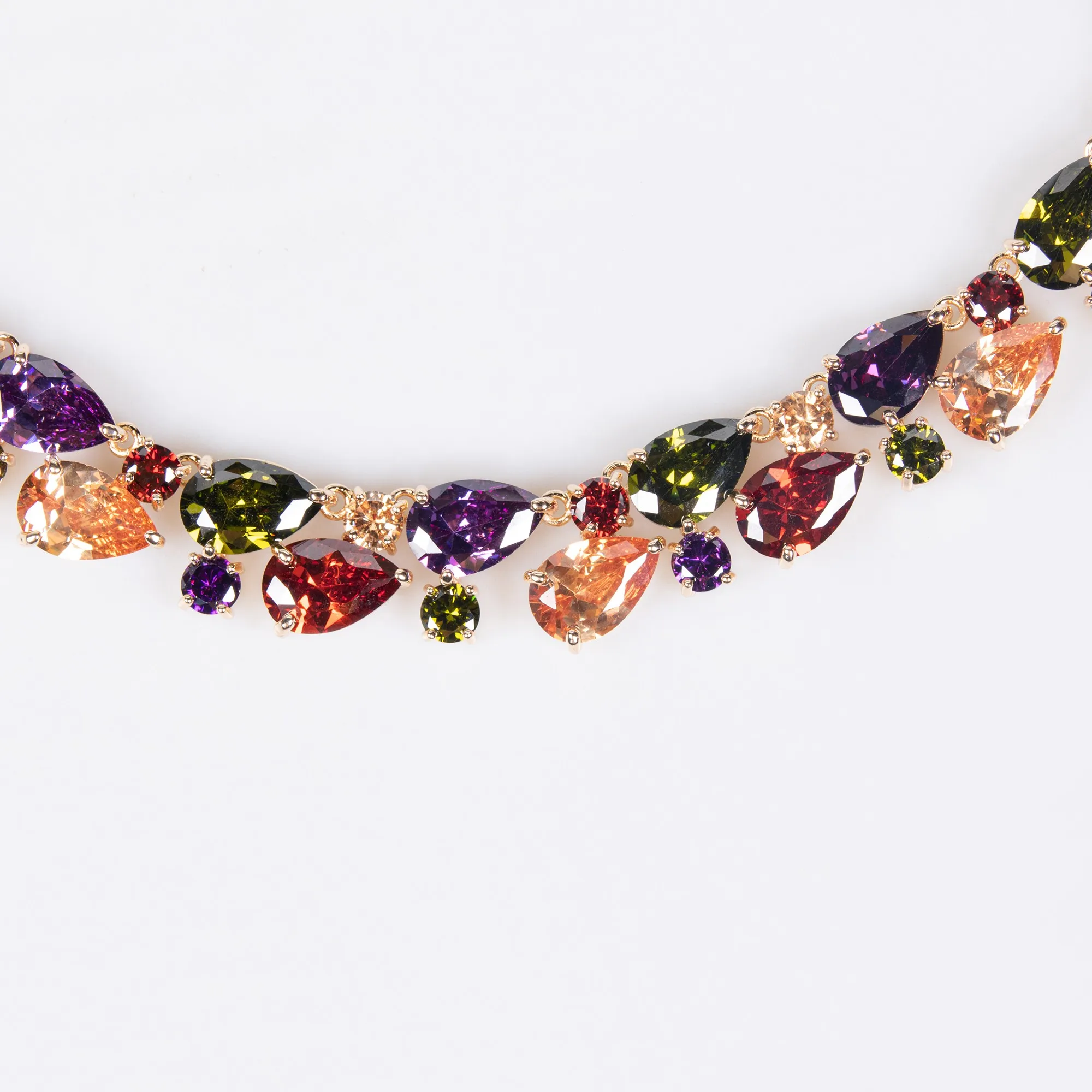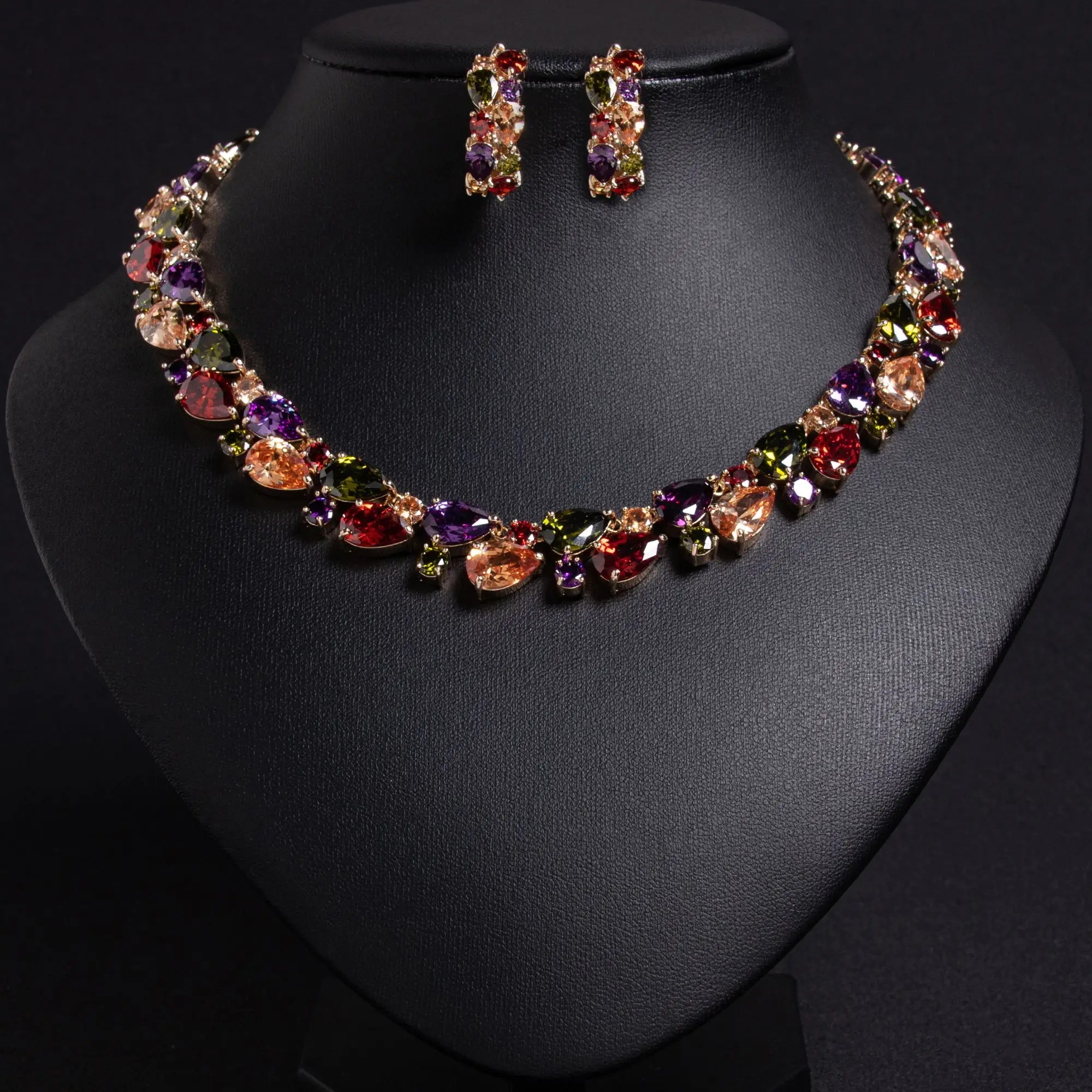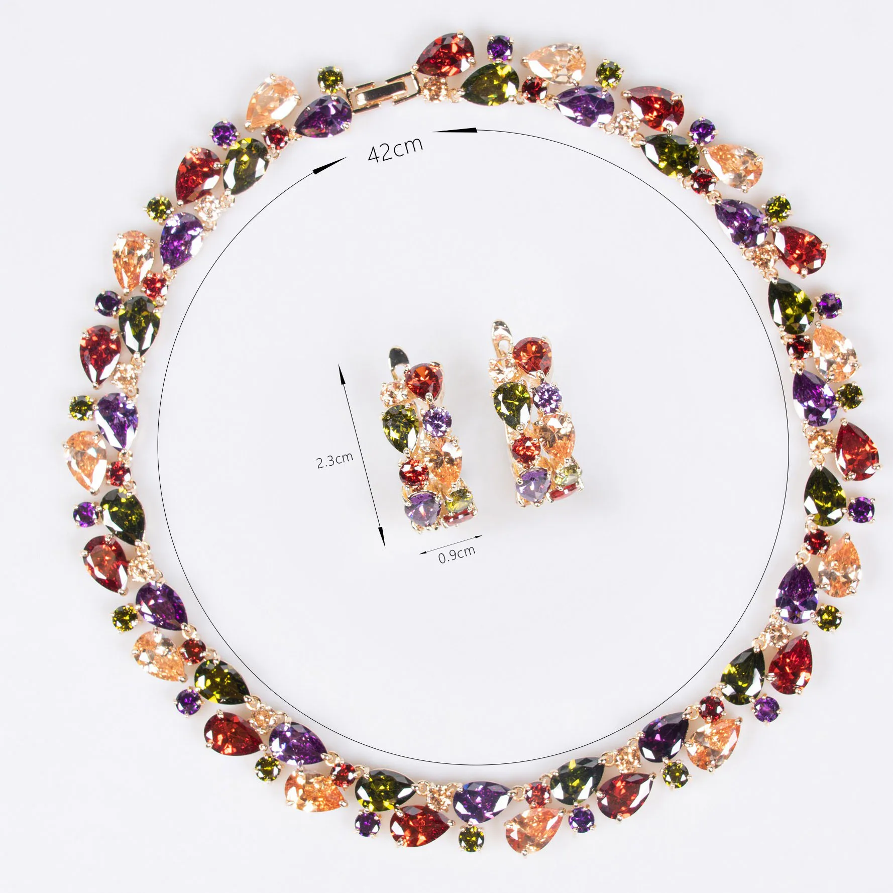 ︎♥︎Item Type:Luxury Summer Graduation Translucent Women's Multicolour Jewellery Necklace Earrings Zirconia Set Accessories