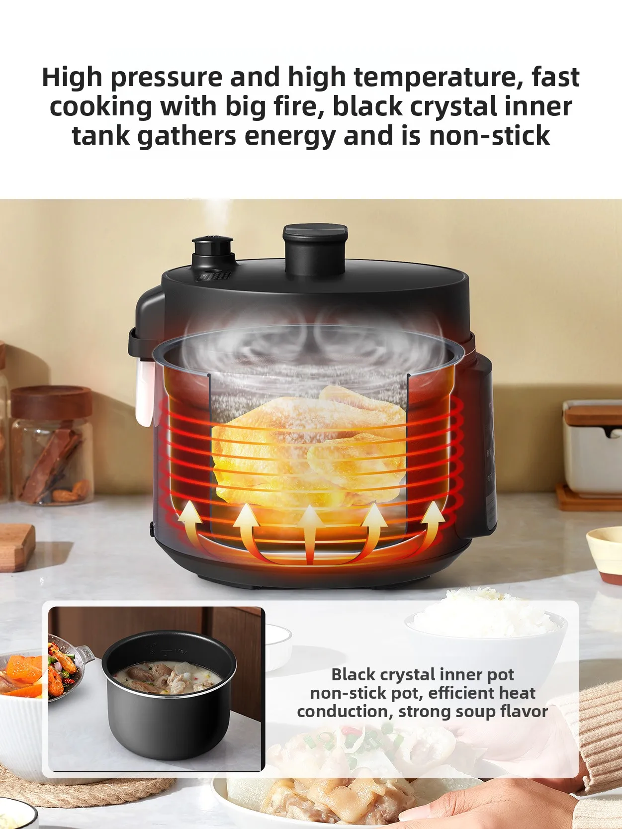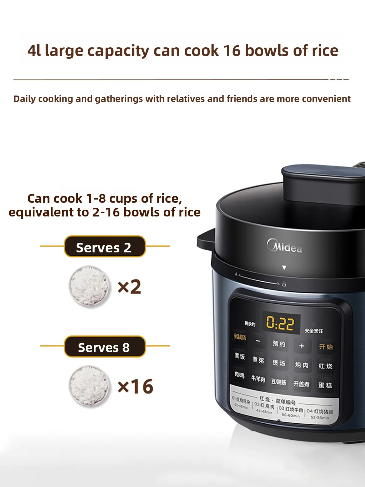 Mini electric pressure cooker, small household appliance, 3-4 person capacity, 4L high-pressure rice cooker all in one