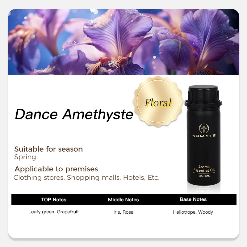 “Dance Amethyste is a delicate floral fragrance with a subtle profile. Top notes of green leaves and pink grapefruit offer a fresh, invigorating start, like a spring morning. Iris and rose in the heart add luxury and femininity, while heliotrope and woody base notes provide warmth. Perfect for those who love a light, elegant scent, it's ideal for everyday and special occasions.”