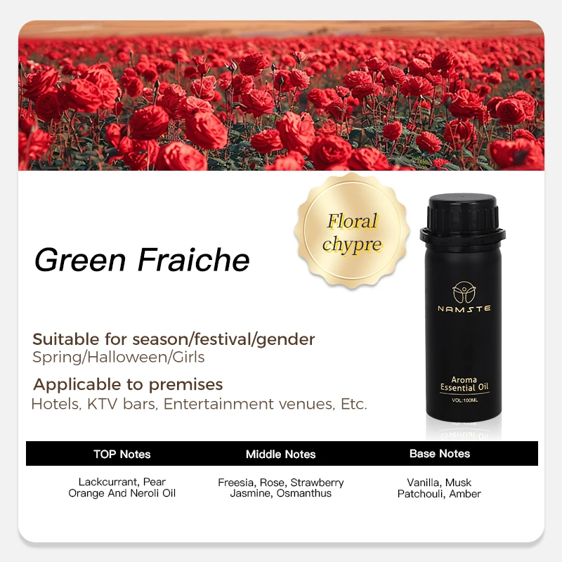 “Green Fraiche is a refreshing floral-woody fragrance. It starts with a zesty top note of blackcurrant, pear, orange, and neroli oil, offering a vibrant and invigorating start. The heart features freesia, rose, strawberry, jasmine, and osmanthus for floral elegance. The base notes of vanilla, musk, patchouli, and amber provide a warm and comforting finish. Perfect for those who appreciate a light yet sophisticated scent, it's ideal for everyday wear and special occasions. Experience the freshness and sophistication of Green Fraiche.”