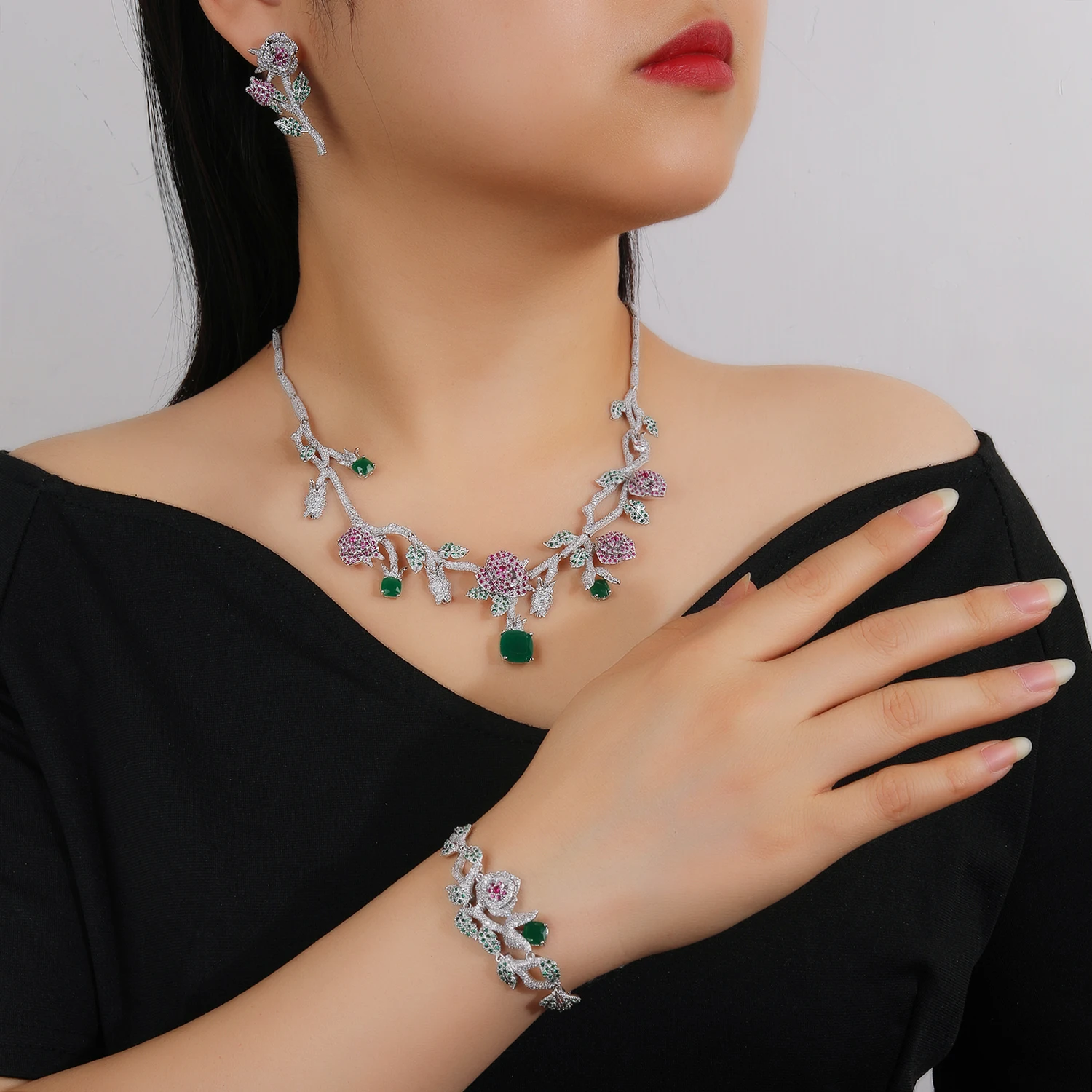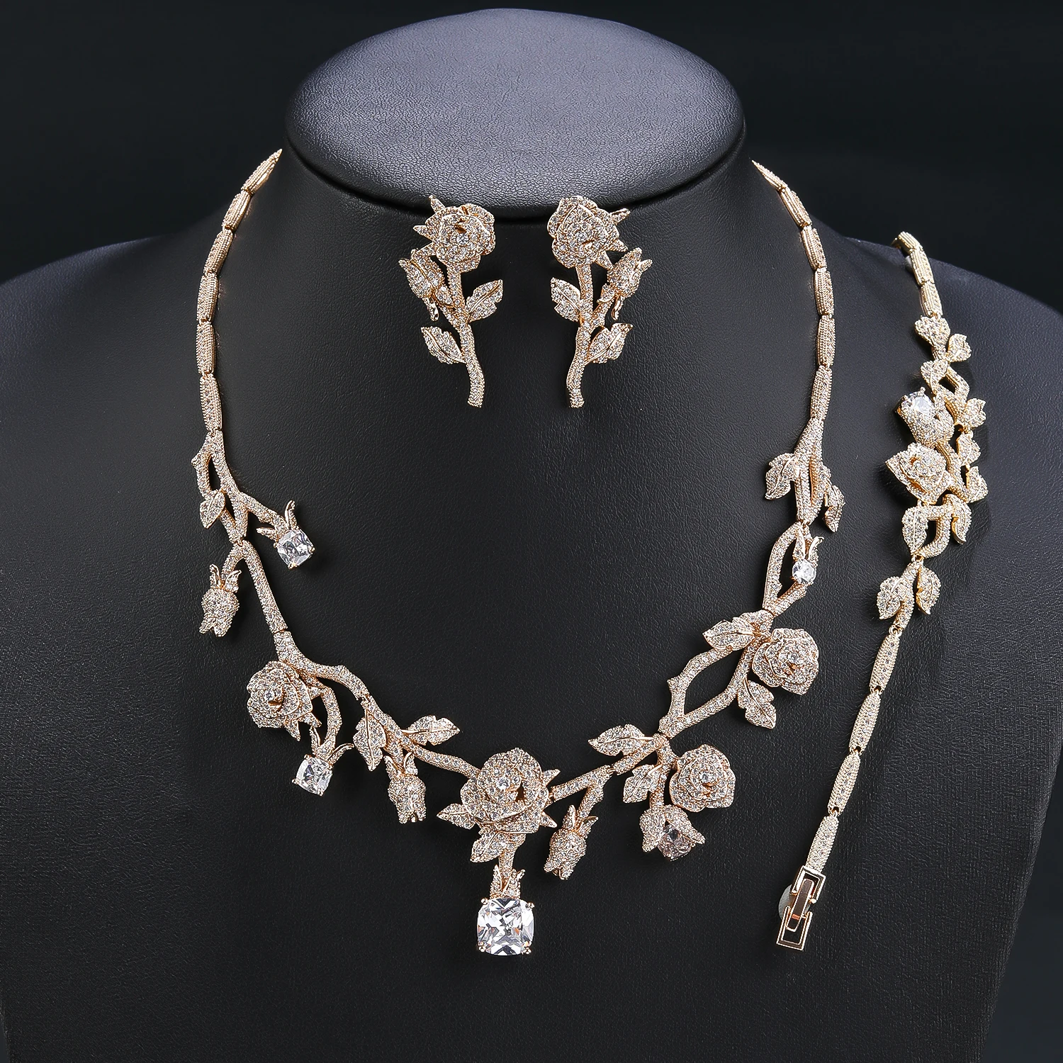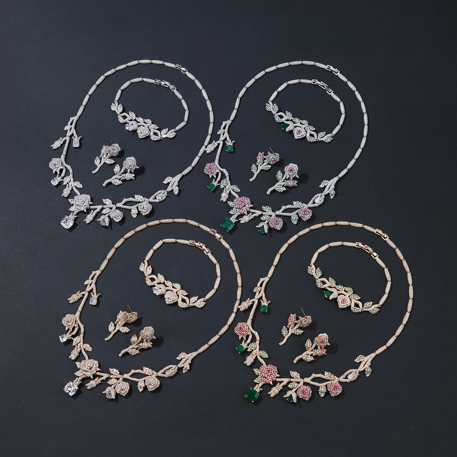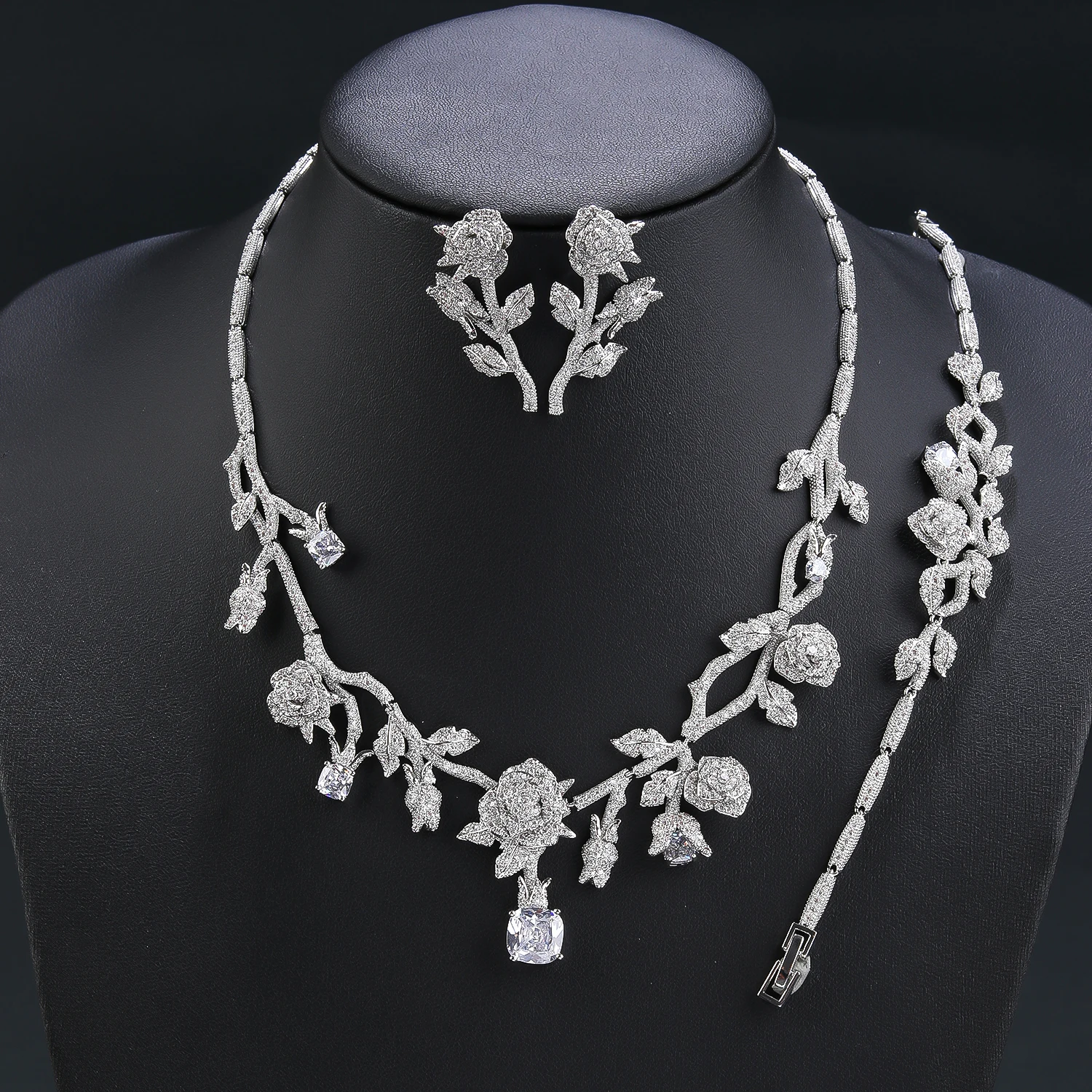 High Quality CZ necklace and earring sets,,Made by Micro-Pave-Setting and plated with real platinum, made with 3A small cubic zirconias.