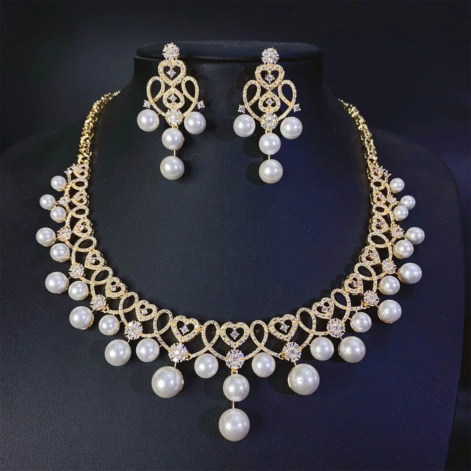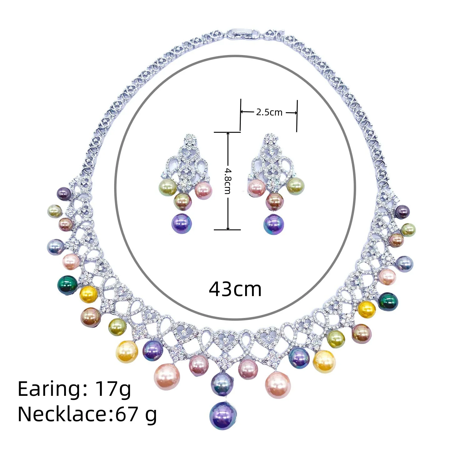︎♥︎Item Type:Love Heart Multicolor Pearl Necklace Earrings Women's Jewelry Suitable for Marriage in Nigeri