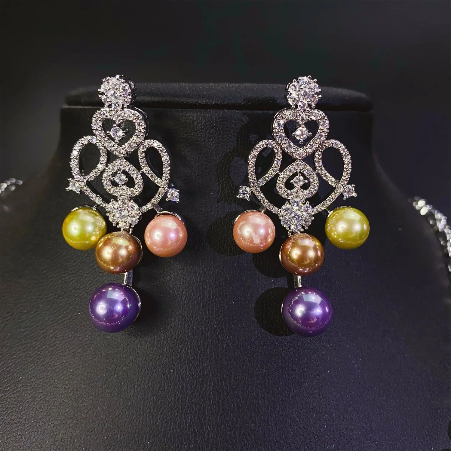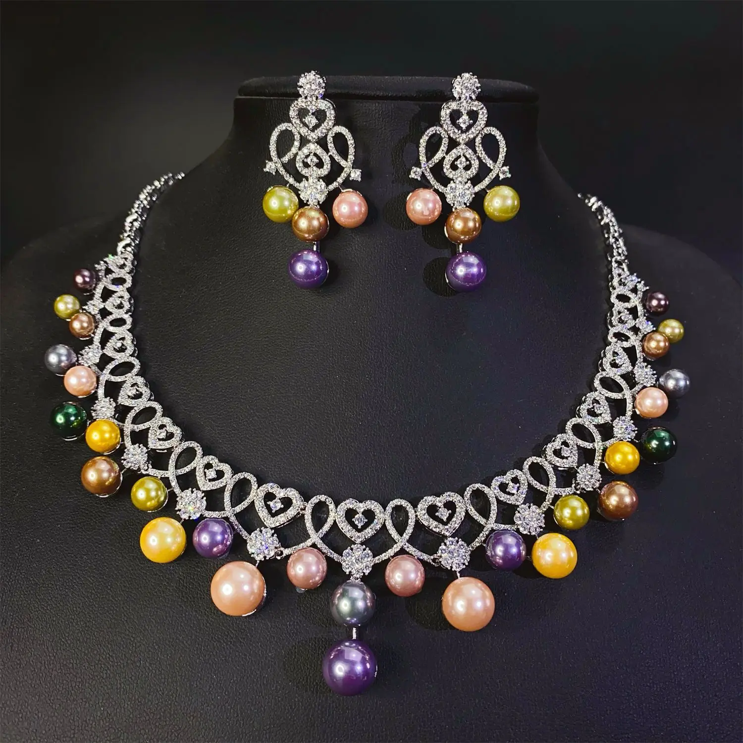 New Romantic Love Heart Multicolor Pearl Necklace Earrings Women's Jewelry Suitable for Nigerian Wedding Holiday Gifts M-772
