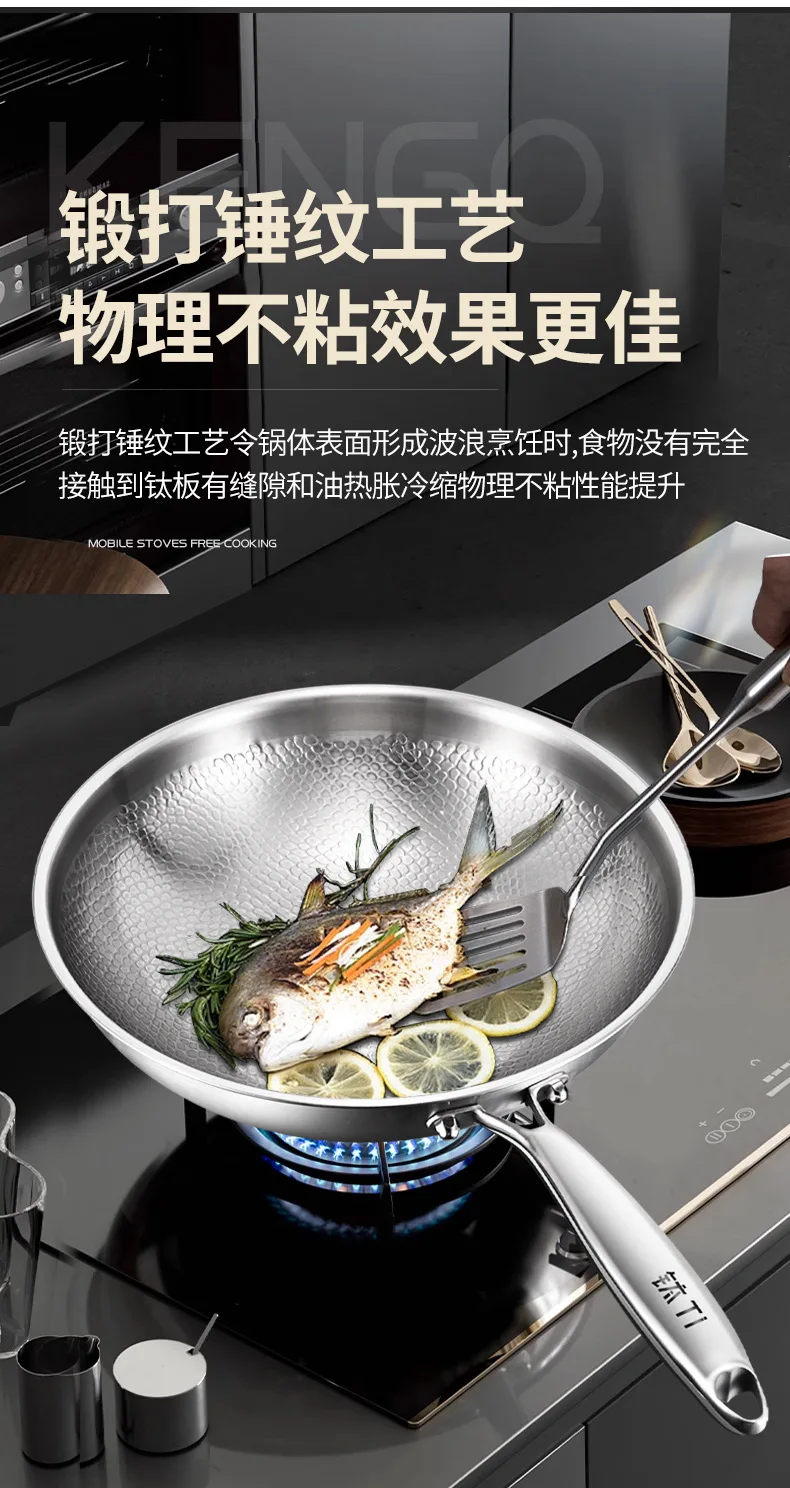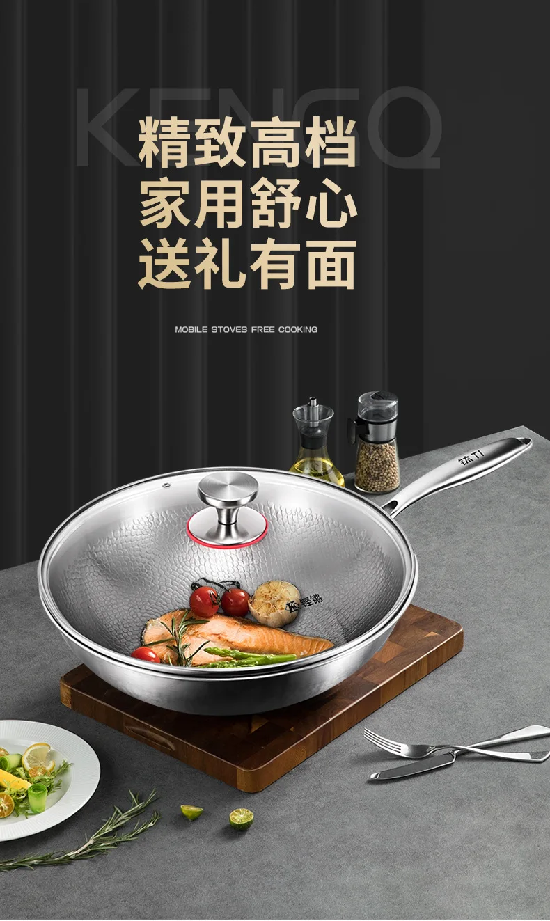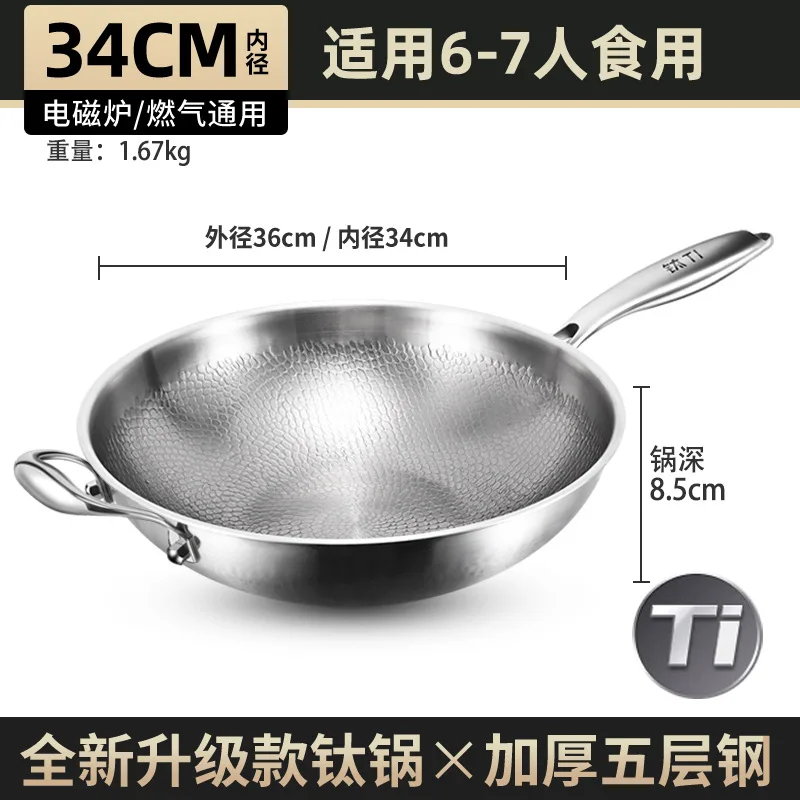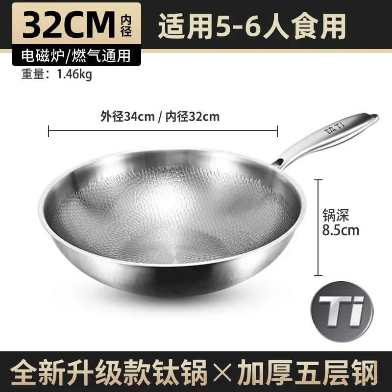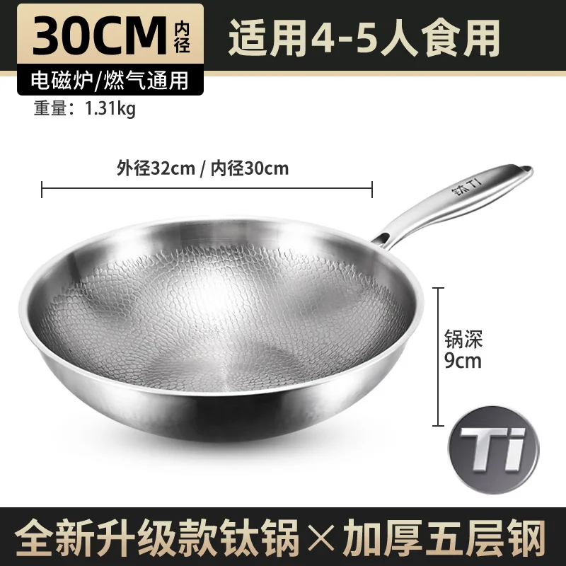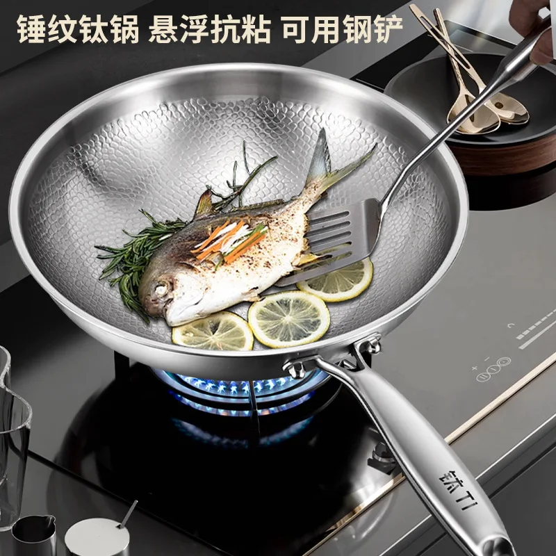 Pure titanium fryer, uncoated, household vegetable fryer, non stick fryer, round bottom gas concave electromagnetic special