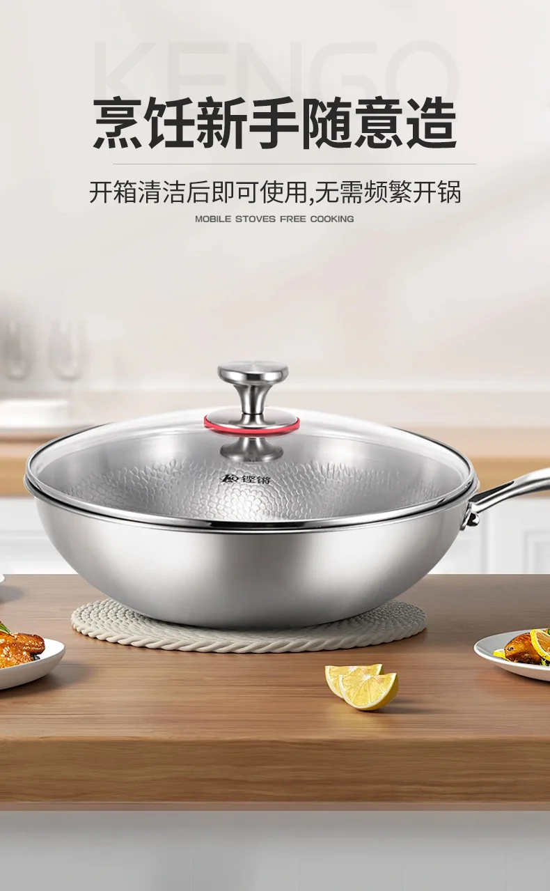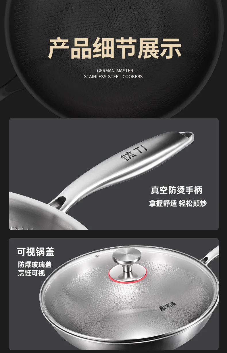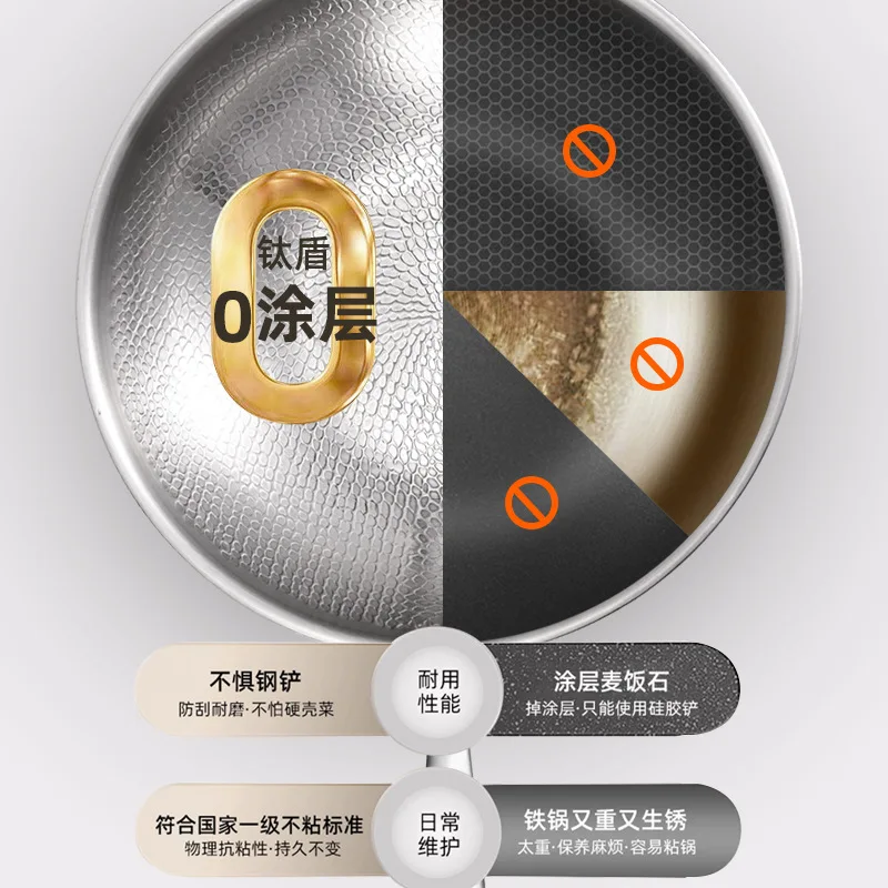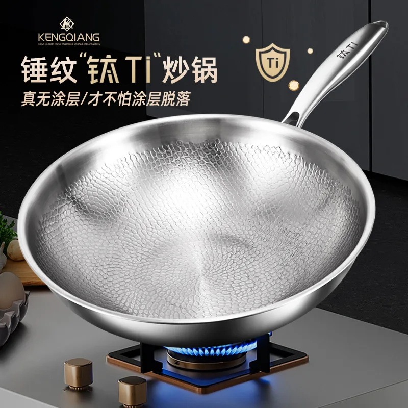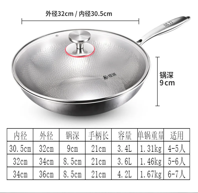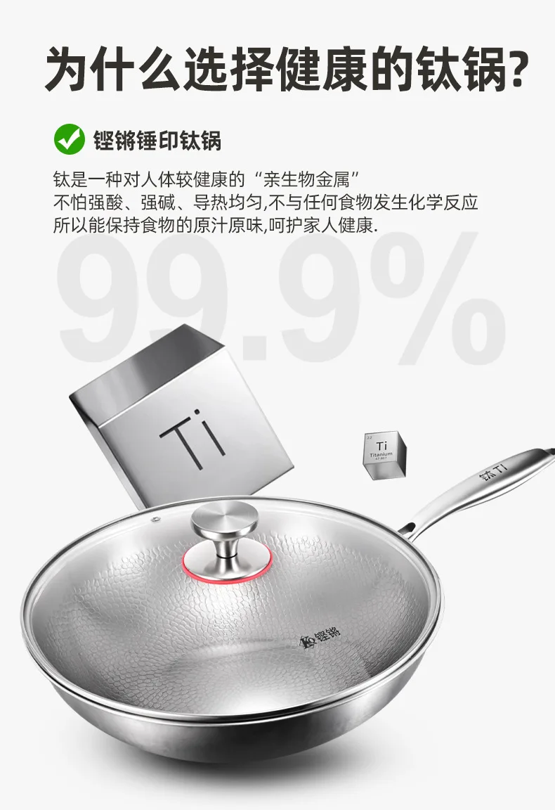 Pure titanium fryer, uncoated, household vegetable fryer, non stick fryer, round bottom gas concave electromagnetic special