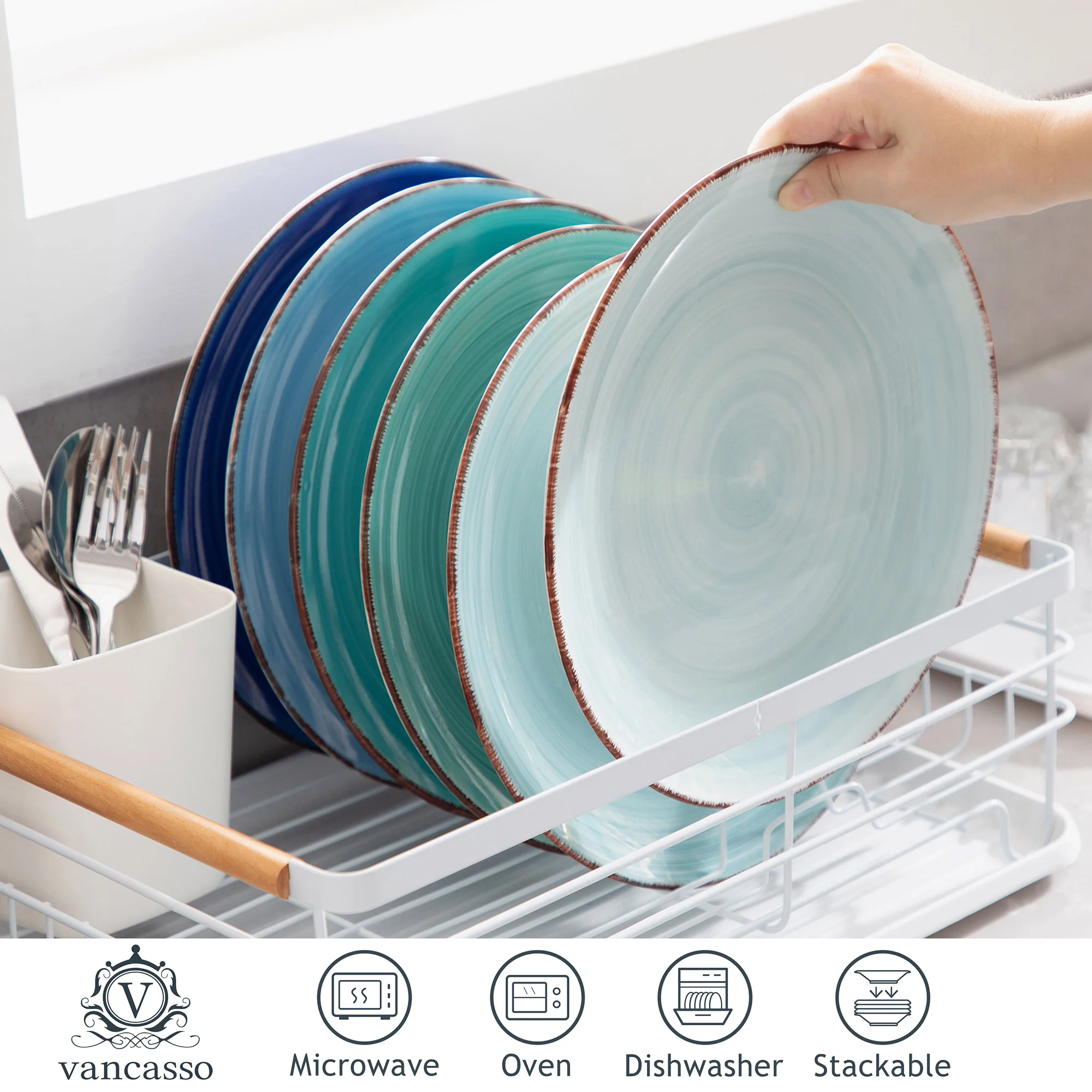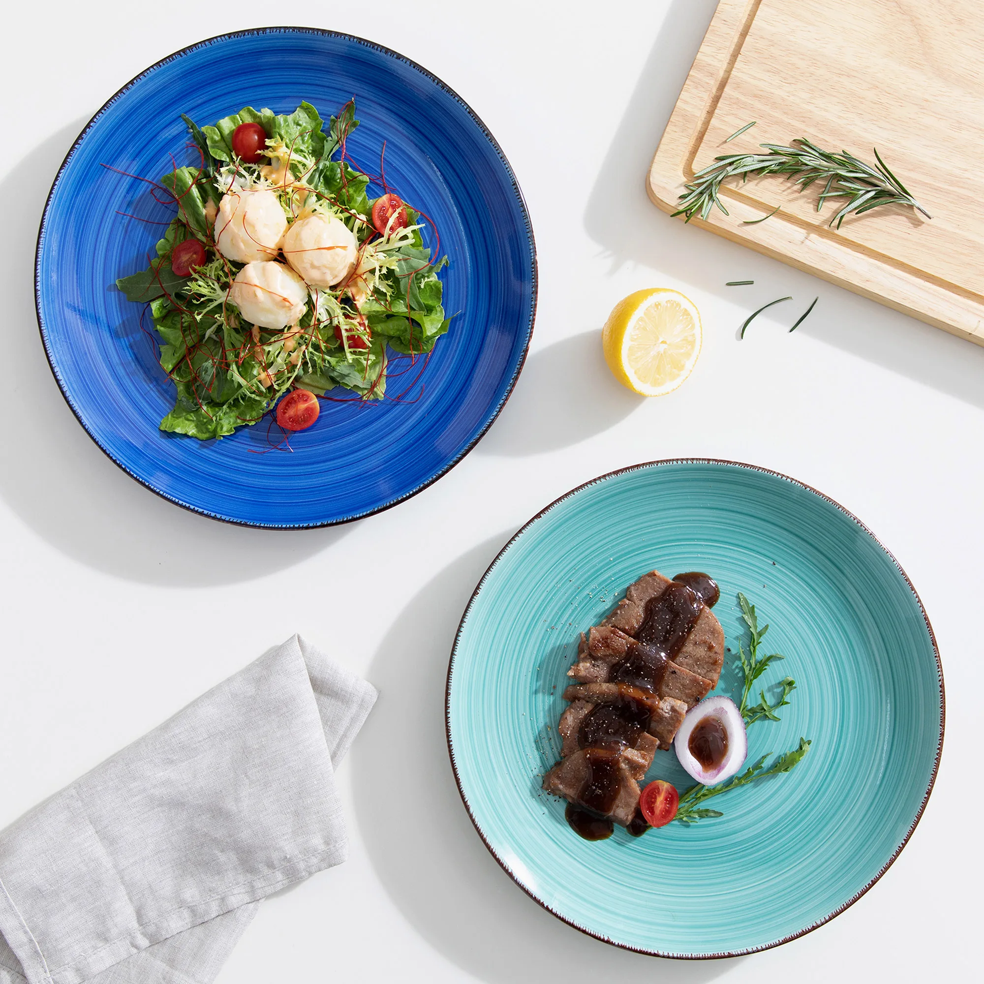 ►Vibrant Colour & No Fading:The 6 different pastel blues were glazed on both sides of plates, harmonious and beautiful. The colourful dinner set are coloured by inorganic pigments at high temperatures, no fading and long lasting.