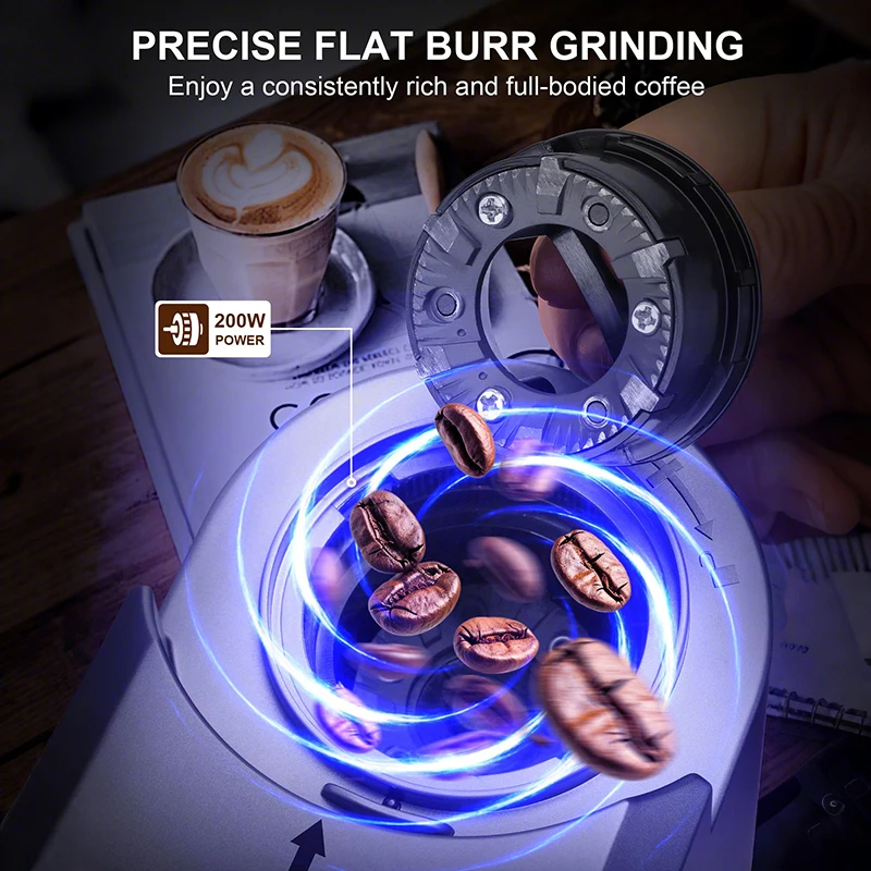 The flat grinding mechanism of Wancle Burr Coffee Grinder can make every grind uniformand consistent to preserve the original flavor and aroma of coffee beans.