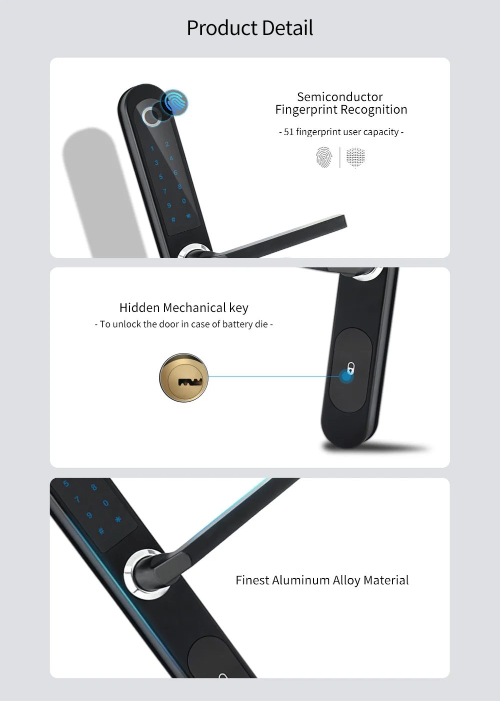 Unlock Mode - Tuya App, Fingerprint, Code, M1 Card, Mechanical Key