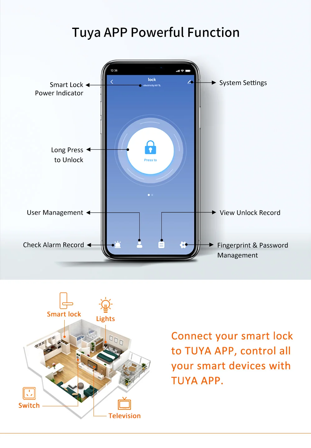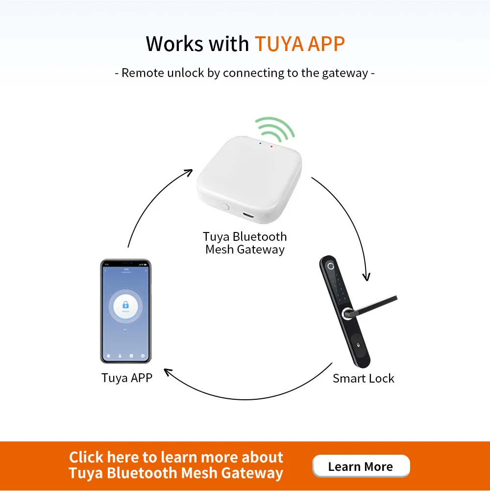 Work with gateway with home wifi network, you can mangage or unlock your lock anywhere.