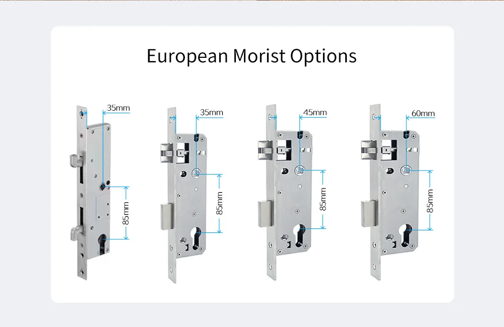 2. Measure your old door lock like the picture below, then choose the most suitable mortise size.