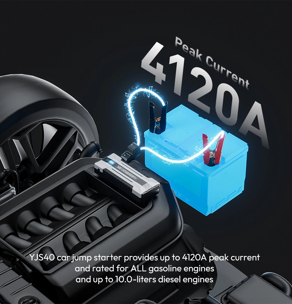 YESPER Car Jump Box 4120A PeakCurrent Jump Box Starter For Car Powerful 12V Jump Pack ALL Gas and Up to 10.0L Diesel Engine